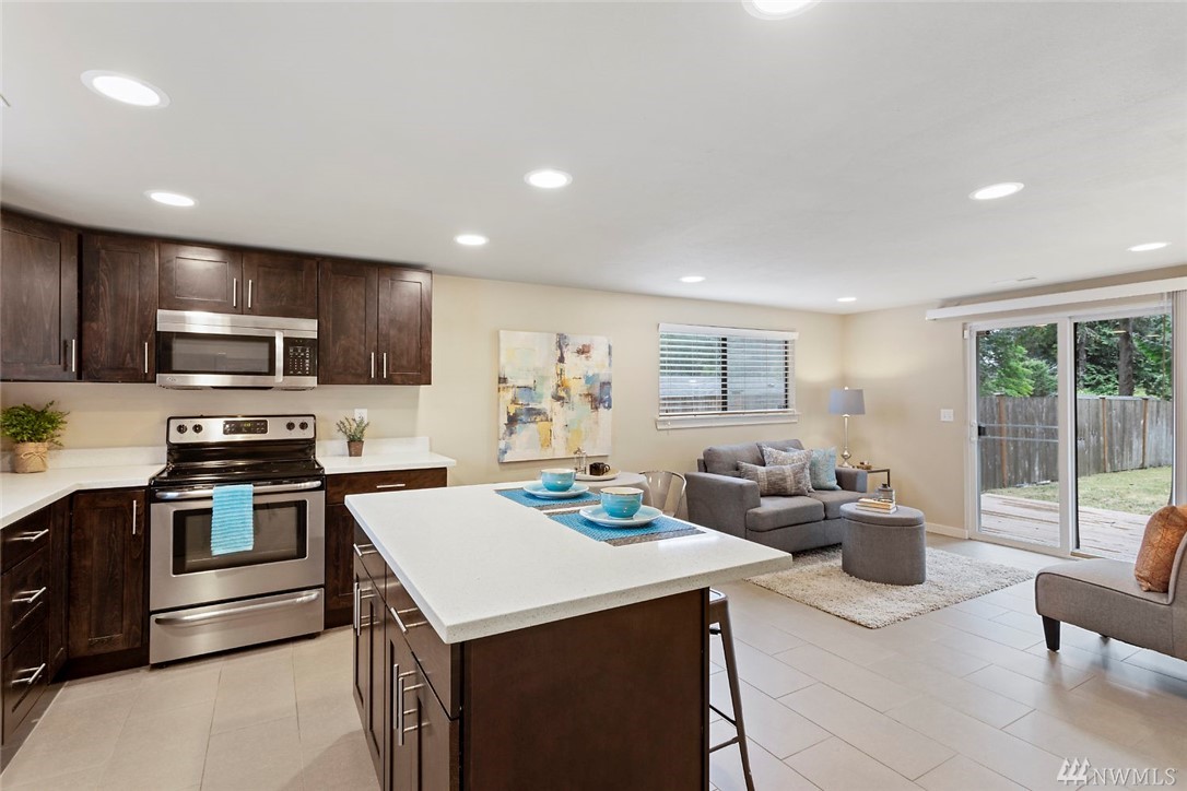 Gorgeous Wedgwood Rambler completely remodeled & impeccably maintained. Beautiful timeless finishes throughout this 1k SF home, boasting a light filled functional open floor plan that flows & maximizes space. The large Kitchen + Great Room overlooks the huge South-Facing Fully Fenced, Private (level) Backyard, including a detached shed. Boasting 3 large bedrooms, 2 full bathrooms – Completely ready for you to move in! Across the street from Wedgwood Elementary + easy access to main arterials!