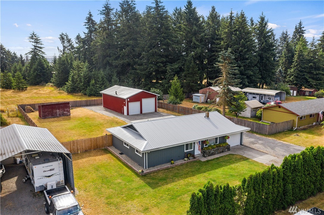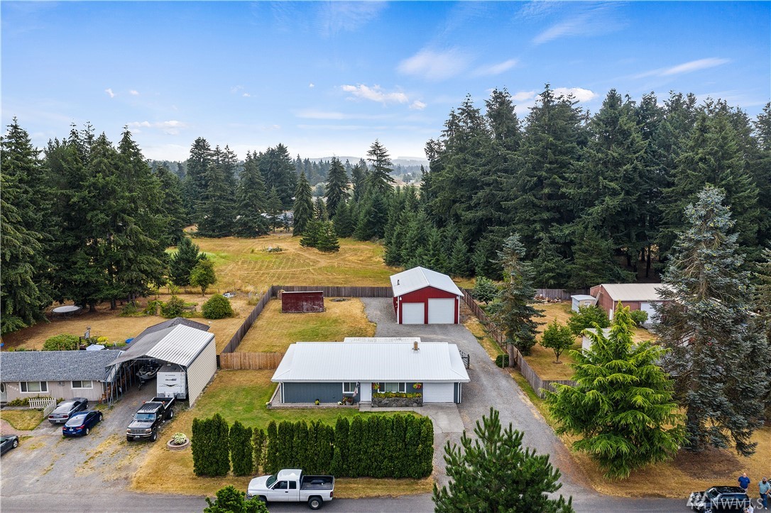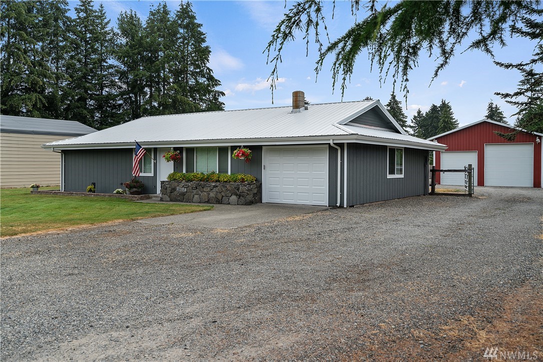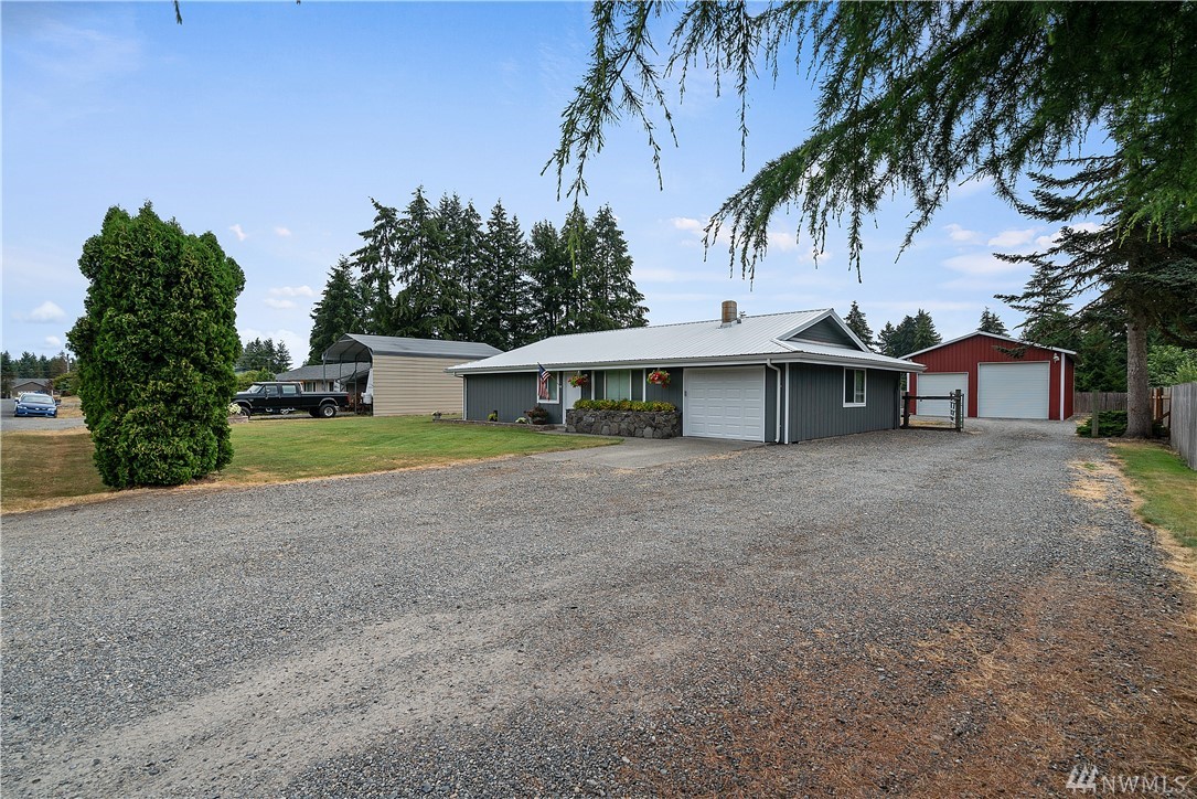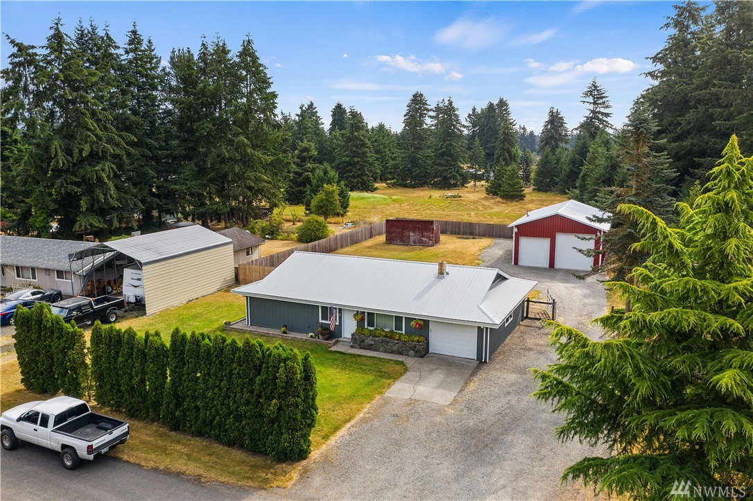This cute 3+ bdrm home has fresh exterior paint, a brand new garage door w/opener and a fully fenced back yard with covered patio that is perfect for gatherings and bbq's. The HUGE 2 bay shop with a loft boasts one 10' and one 12' door, is a mechanic's dream, and even has a wood stove for heat during the winter months! Second outbuilding can be used for garden/woodshed. All of this sits on a nice, shy 1/2 acre lot and is close to schools, I-5 and all the amenities the growing area has to offer!