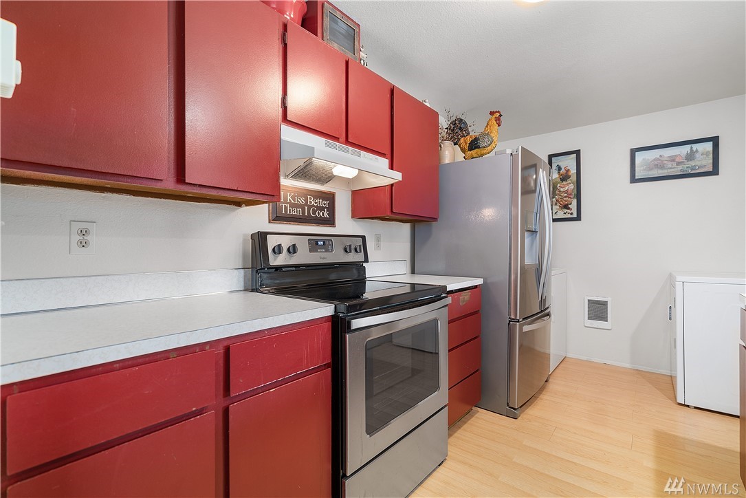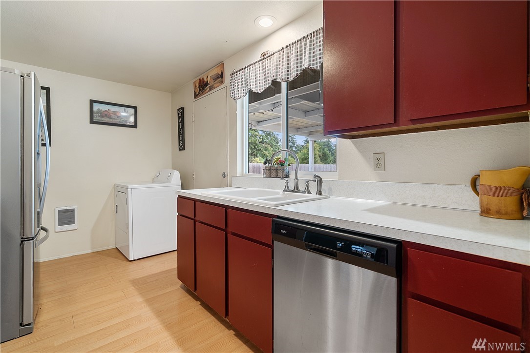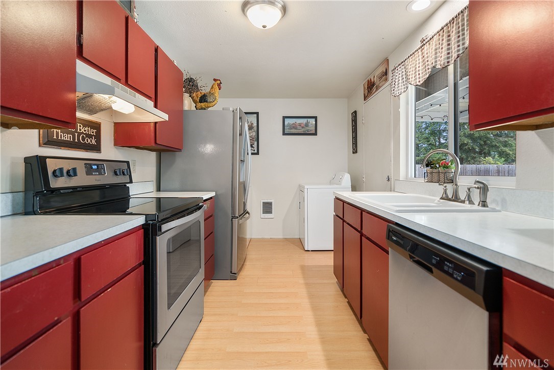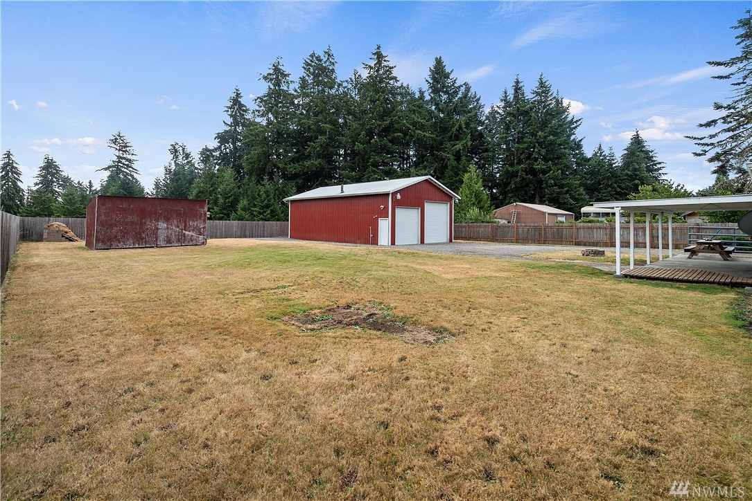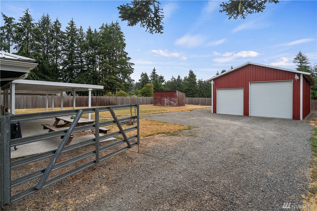 This cute 3+ bdrm home has fresh exterior paint, a brand new garage door w/opener and a fully fenced back yard with covered patio that is perfect for gatherings and bbq's. The HUGE 2 bay shop with a loft boasts one 10' and one 12' door, is a mechanic's dream, and even has a wood stove for heat during the winter months! Second outbuilding can be used for garden/woodshed. All of this sits on a nice, shy 1/2 acre lot and is close to schools, I-5 and all the amenities the growing area has to offer!