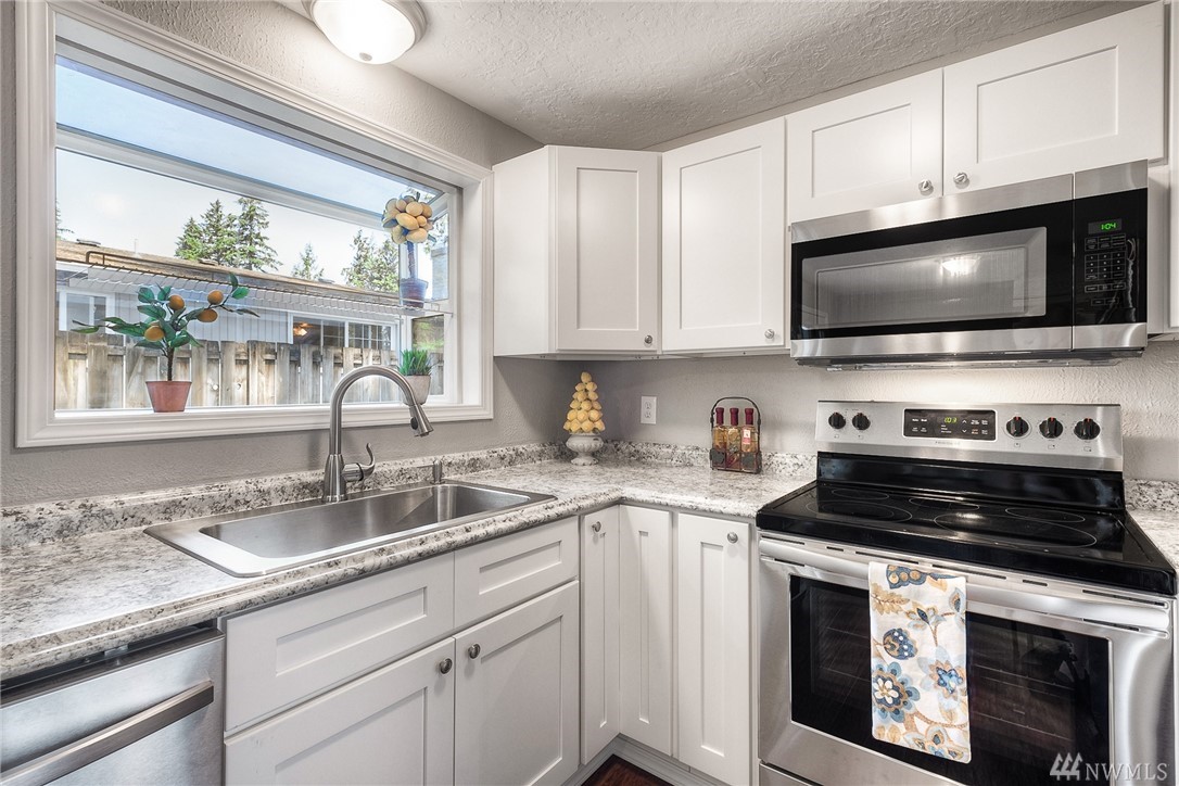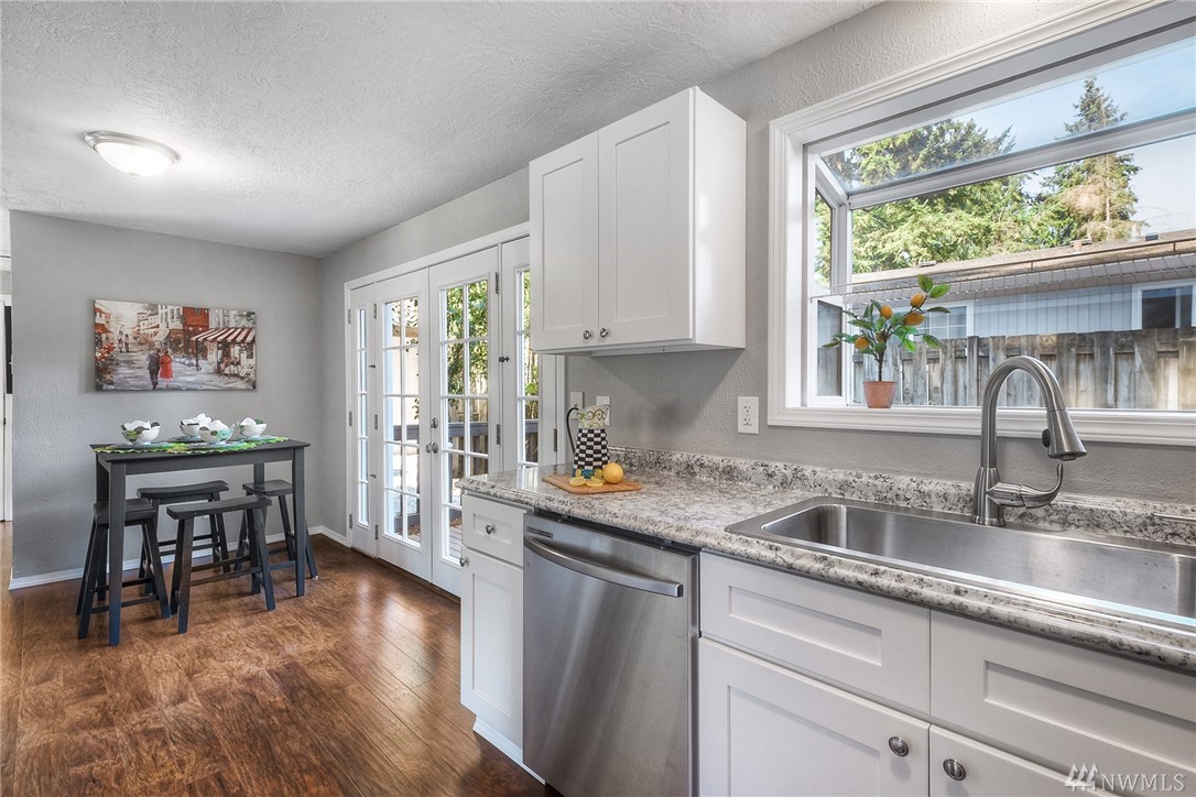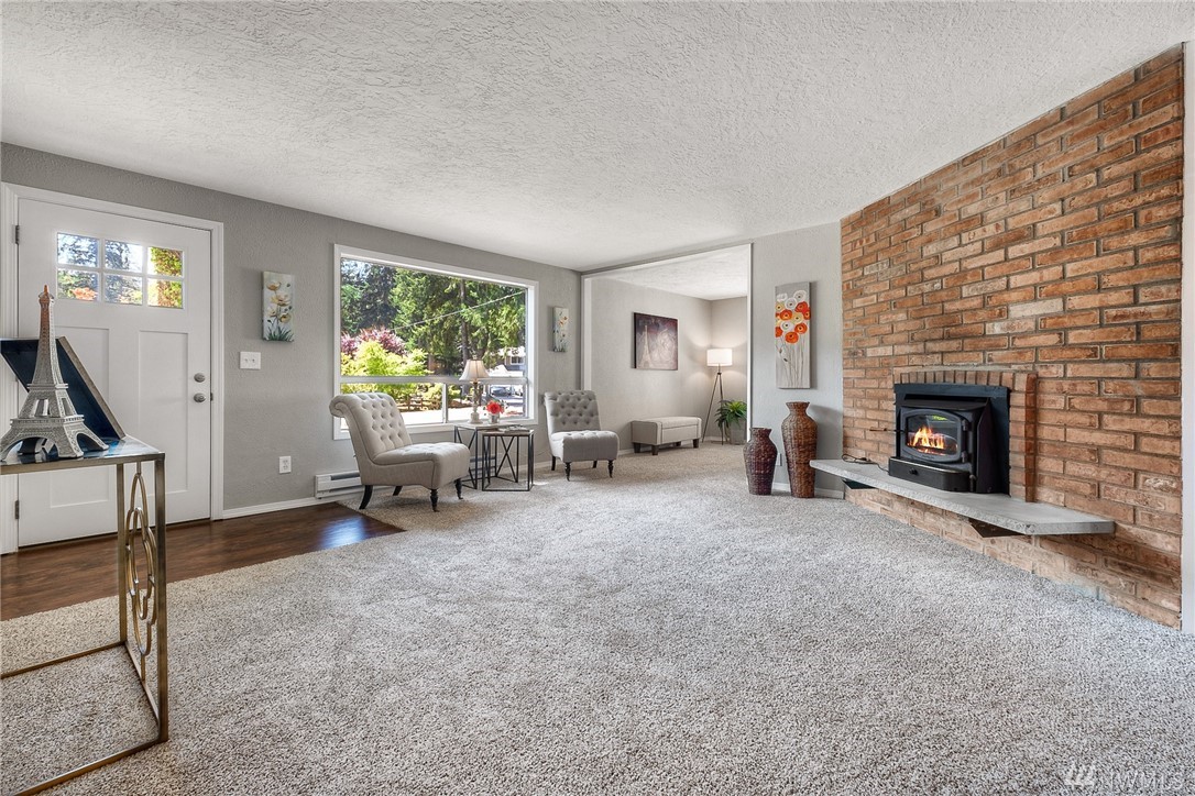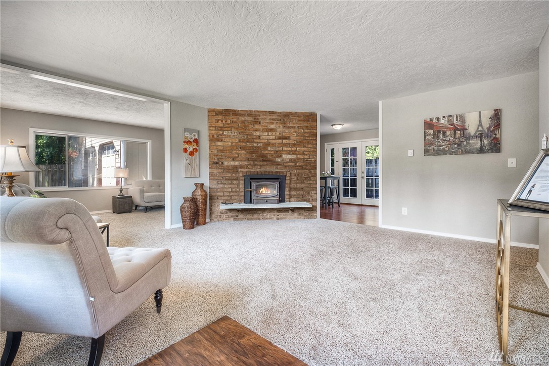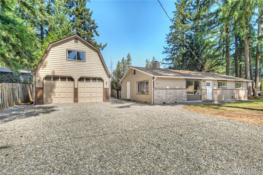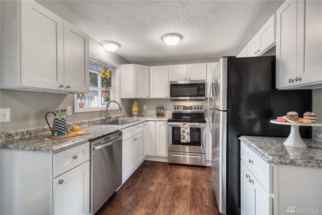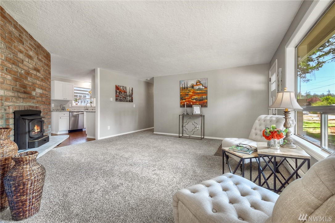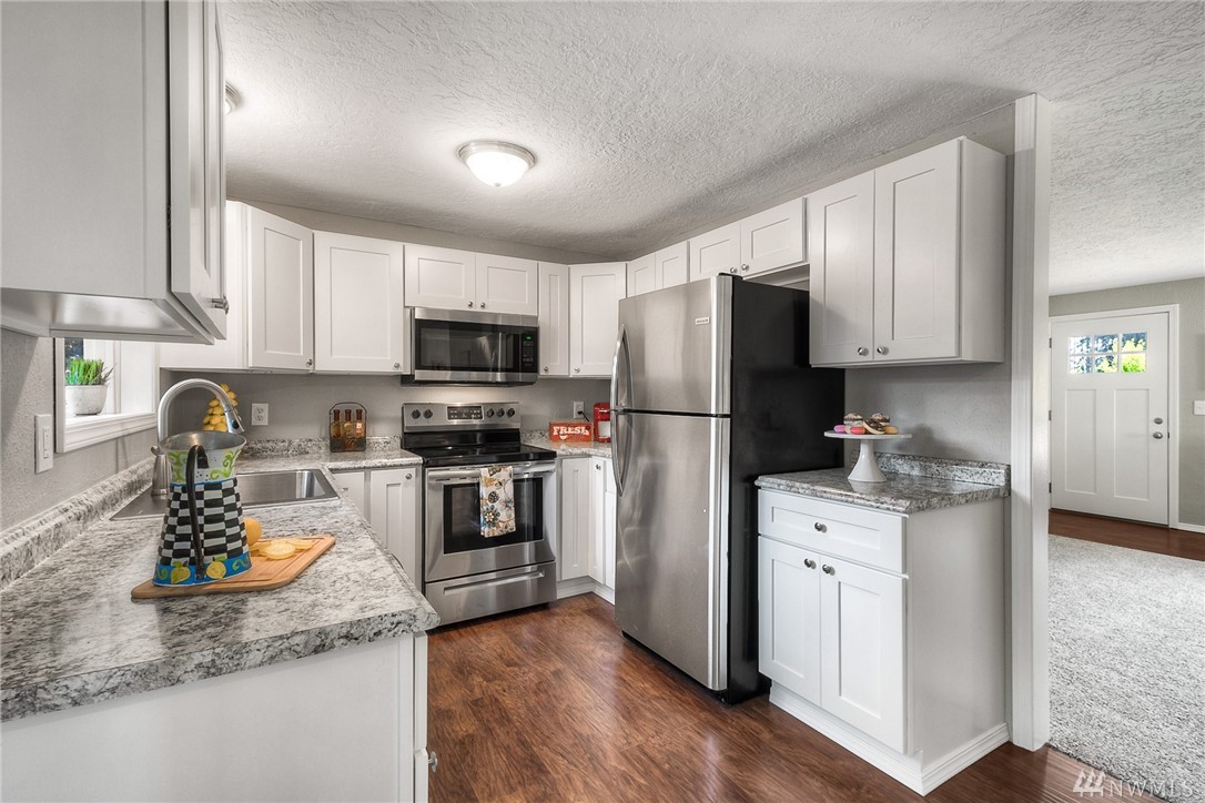 Completely remodeled 3 bed/1 bath open floor plan home shows pride in ownership. Kitchen features white cabinets, ss appliances (all stay) & large deep sink. Living room w/woodstove. brick surround & elevate hearth. Bath has solid surface countertop w/new sink & fixtures. French doors & white window trim, door trim and moldings. New carpet & laminate throughout + freshly painted interior & exterior. Homes roof is 2 months new. Detached oversized 2 car garage w/upstairs unfinished shop.