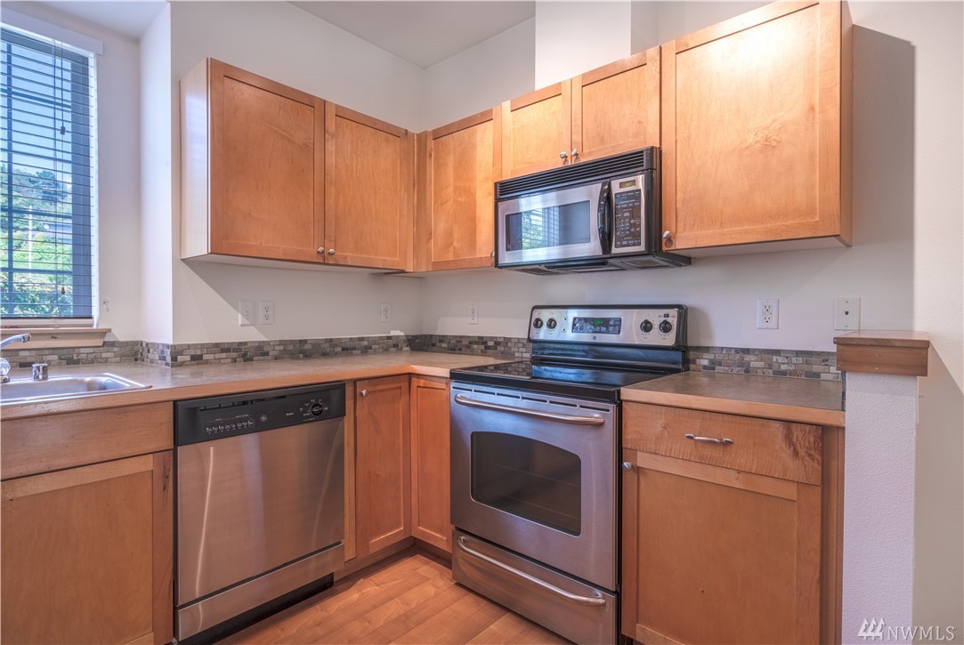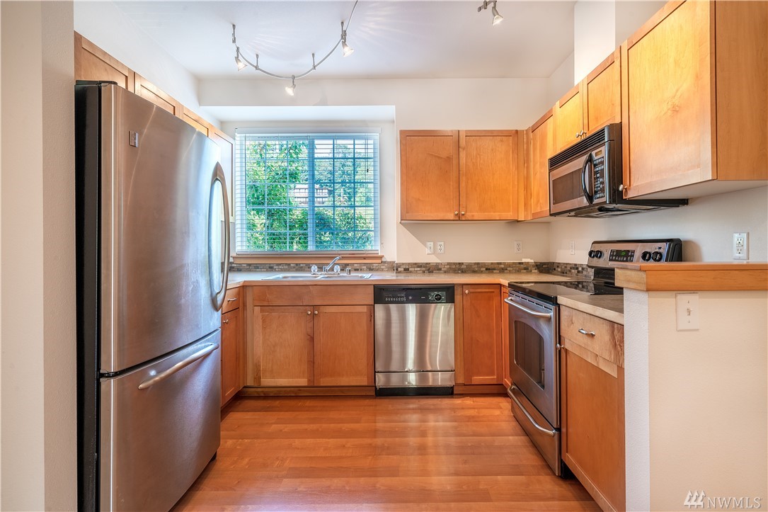 Come to see your new home nestled among a forest of trees. This 2b/2b beautiful home features tons of sunshine & modern, spacious layout. Vaulted ceilings & fireplace, large windows, open dining area, and sliding door to the patio overlook the greenbelt, abundant storage & walking closet. Top floor w/private stairs going up to your quiet end unit. Easy commute to Sea/Bel, Renton, or Tukwila Light Rail. Newer 2006 building with low dues! Perfect for self-living and investor! No rental cap!