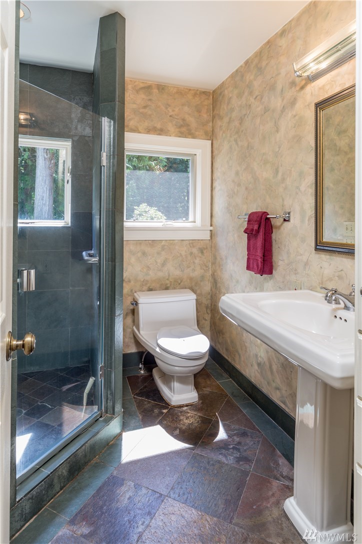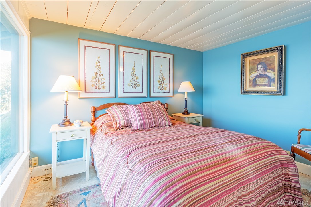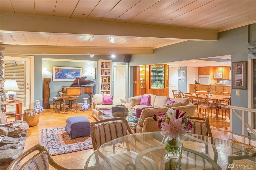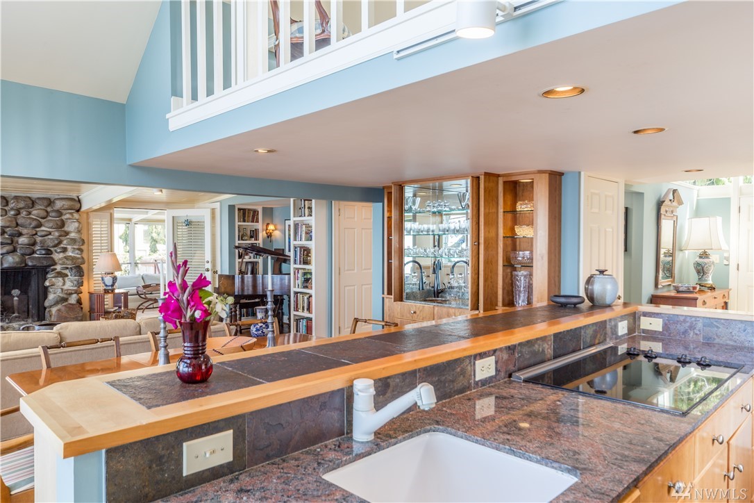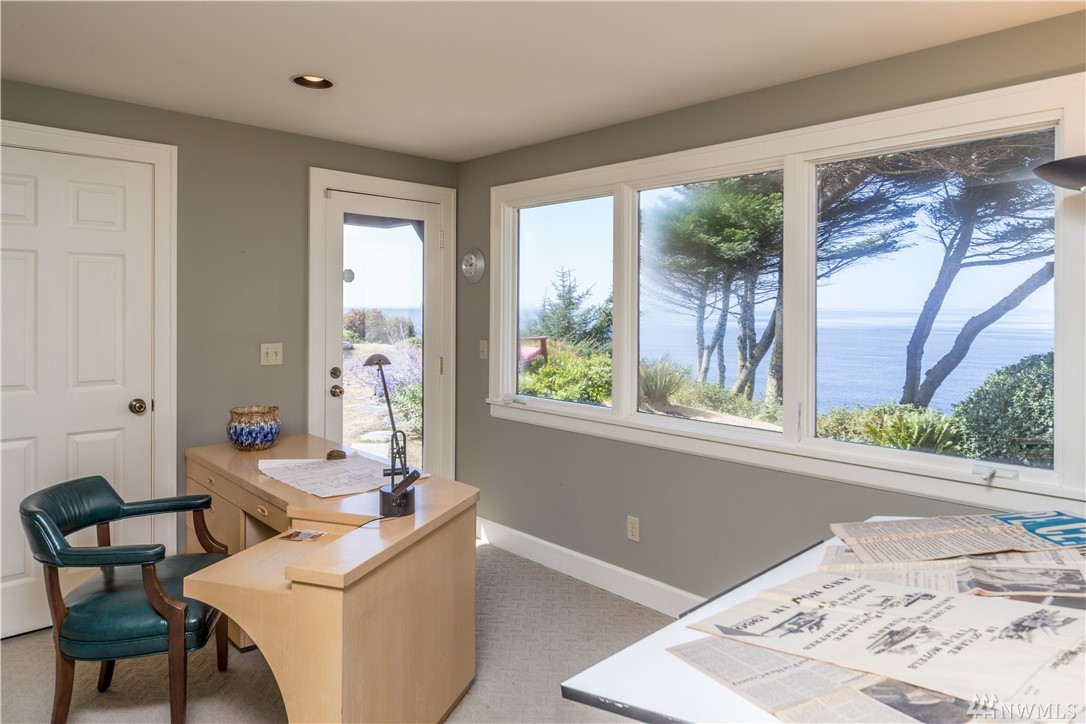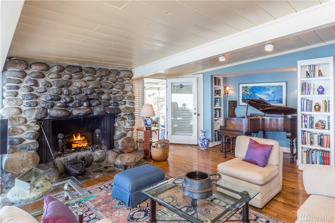 A Remarkable offering. Stunning Strait of Juan de Fuca waterfront. Views from the Olympics to Mt. Baker. Private dramatic wooded drive (second buildable lot) to the sunny bluff top and the quintessential beach cottage. Elegant, yet cozy. Open floor plan for the perfect entertaining house. Single level living with guest loft and guest bedroom downstairs. 3 bedrooms, 3 baths (2 are shower only) plus office. In addition, wonderful sun room. River rock fireplace. Lots of storage. Single car garage.