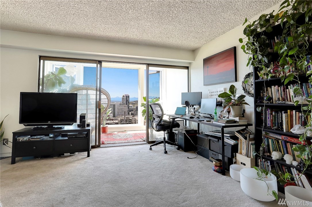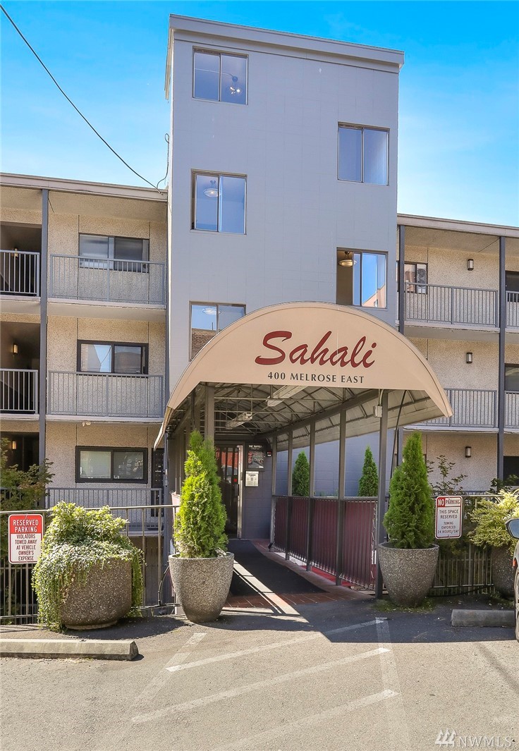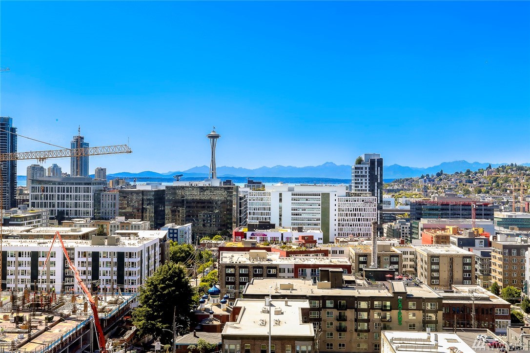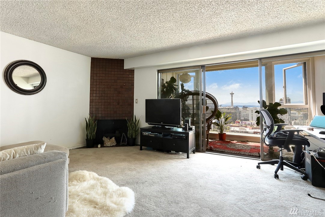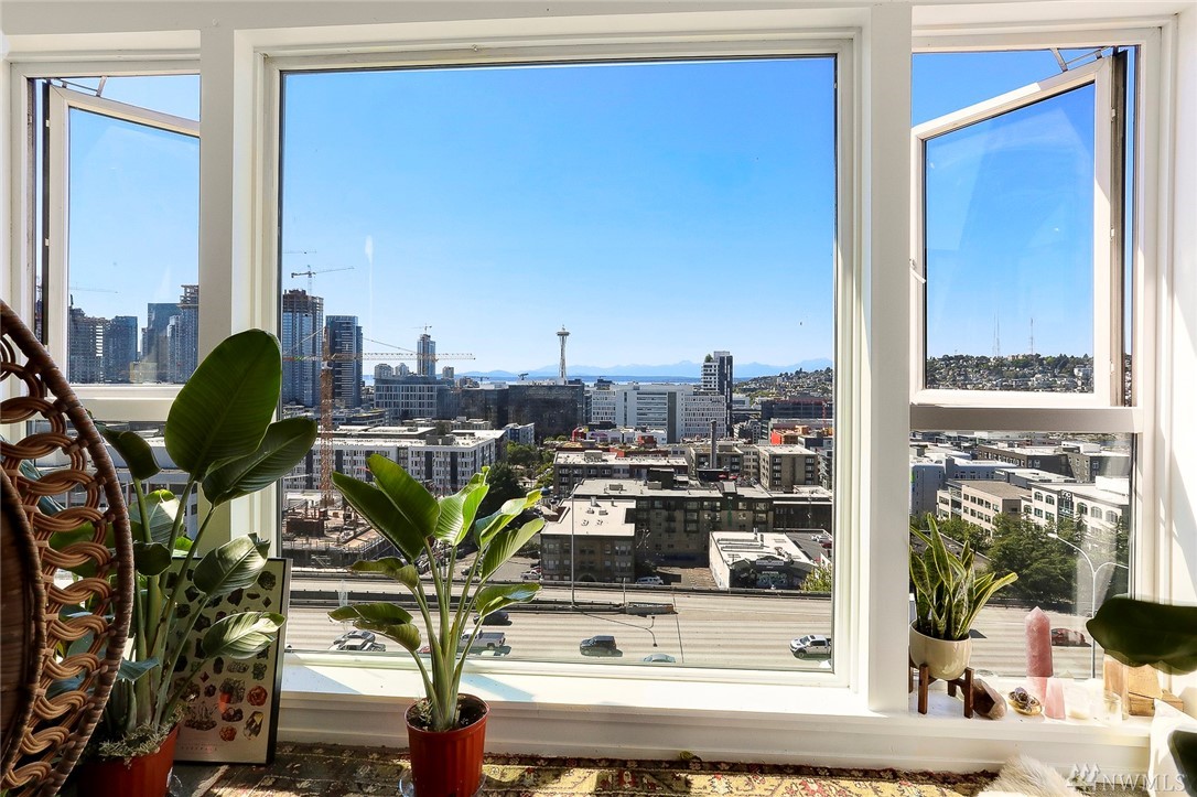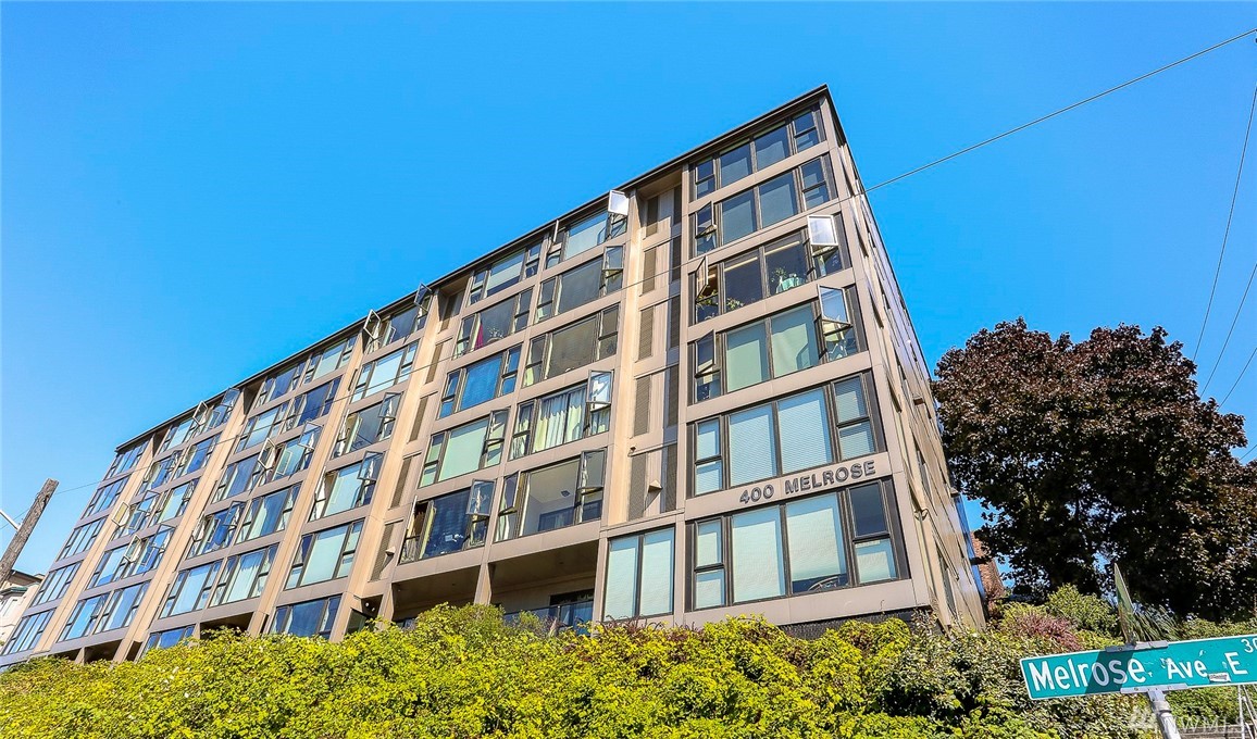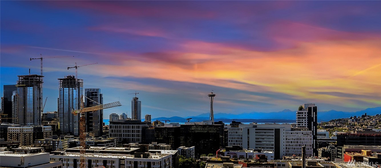 Mesmerizing, unobstructed views of Space Needle, skyline, Lake Union & Olympic Mountains from this top floor, spacious & open 1 bedroom unit with an amazing sun room featuring floor to ceiling windows. Gas frpl (included in HOA dues). Plenty of interior storage and extra storage on 1st floor. 1 carport parking space #27. Concrete/steel bldg. Fabulous Capitol Hill location just blocks from light rail station, restaurants, coffee shops, & more! Unit 604 is RIGHT next door, possible to combine?