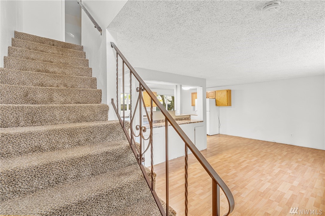 Great opportunity to own a "big" townhouse in Edmonds. 3 bedrooms and bath on top floor, Finished/flex room in basement, plus rec room. End unit with fenced rear yard. Big main floor area, with open concept. Open galley style kitchen, with breakfast bar and abundant storage and counter space. Full basement (Yes, basement) with huge laundry room, and rec room. Basement "walk out" to yard. No Rental Cap. No Special Assessment. Transit, access to shopping and services very close.