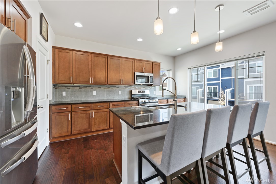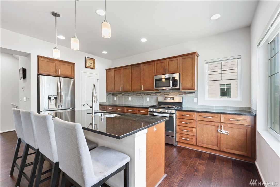 Hop on the appreciation train in the Towns at Riverfront community on the Snohomish River. Growing downtown Everett & upcoming Riverfront town center will add immense value. Home is an entertainers dream w/ a huge, open, flowing main floor. Large granite kitchen island, gas cooking, fireplace, windows galore, bedroom on first floor w/ double closets, 4 car parking, walking trails & fully fenced yard! Ideal location, immediate access to I5, HWY 2 & 1 mile to vibrant downtown.