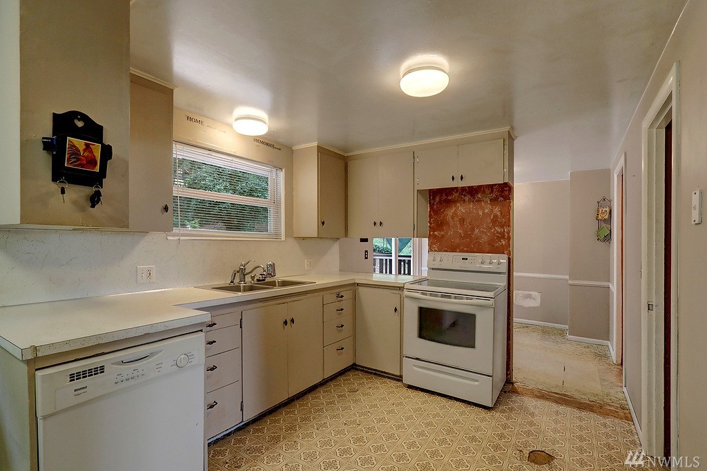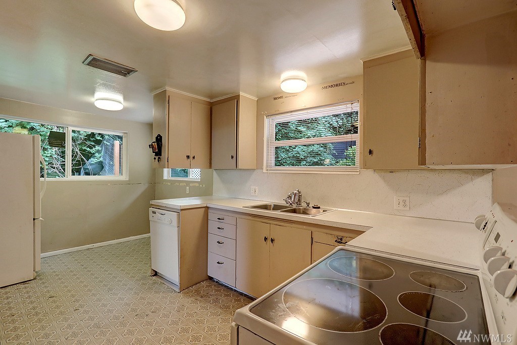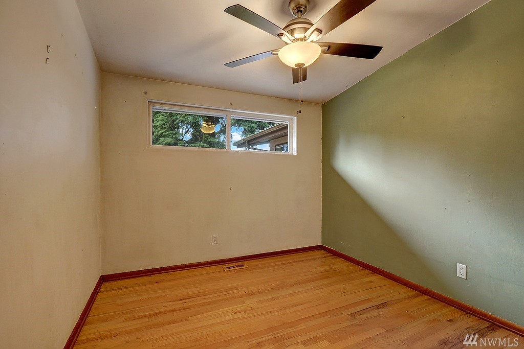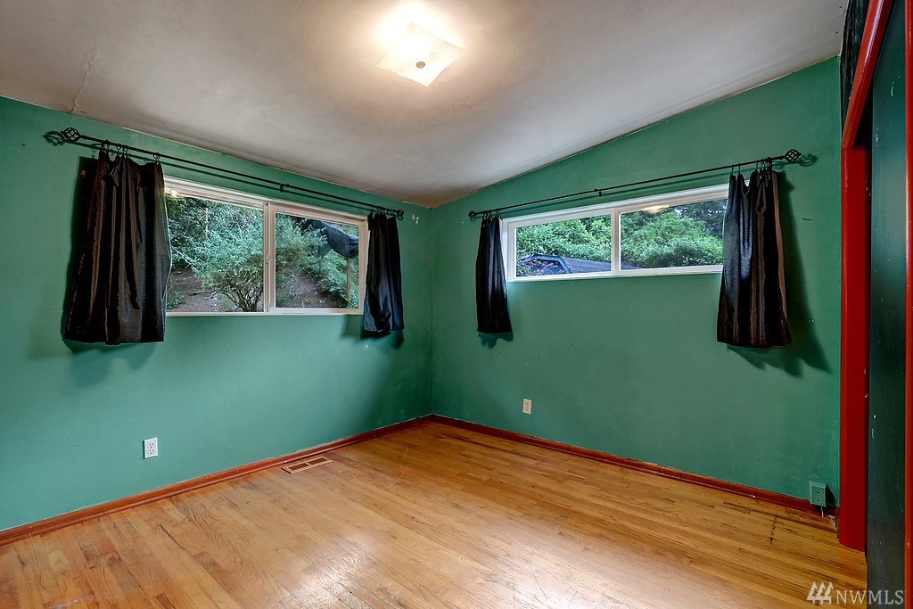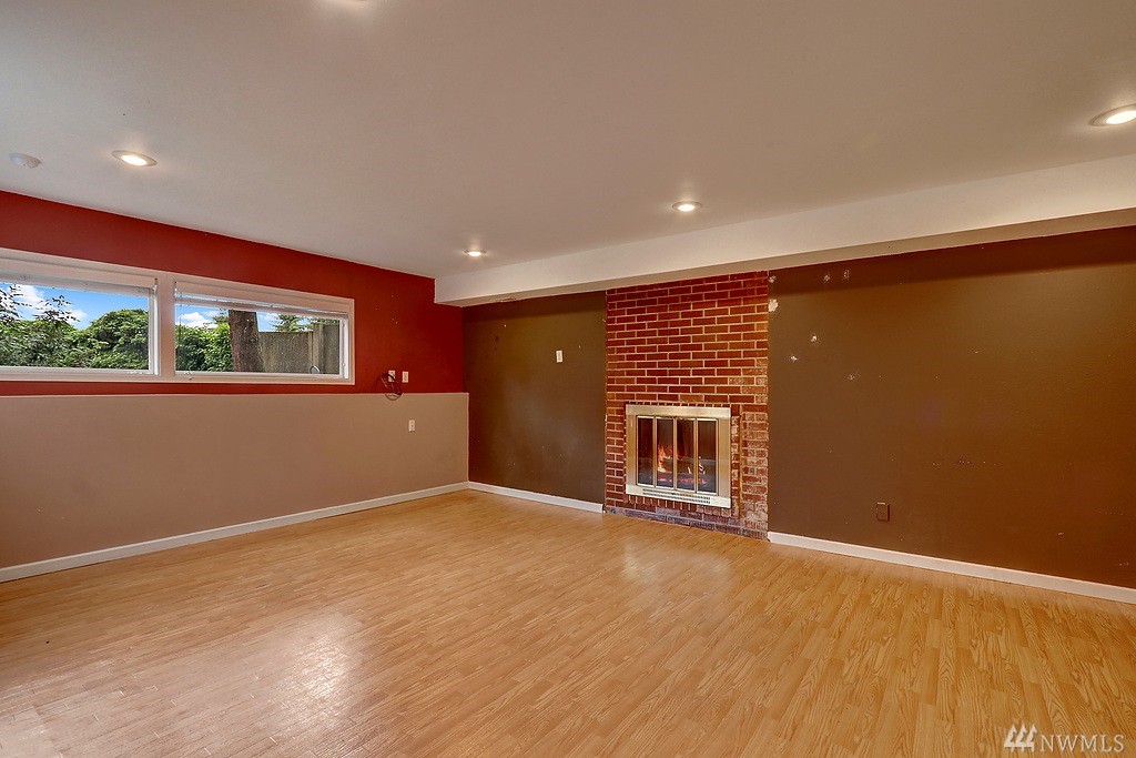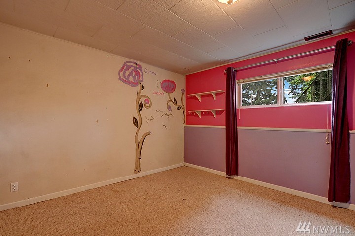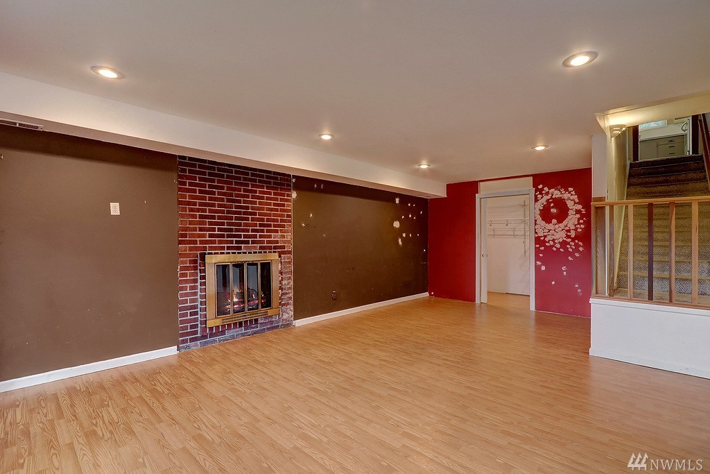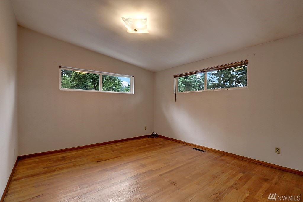 A mid century modern, 4 bedroom 1 and 3/4 bath home with great proximity to the city. Living room features walls of windows wood floors, wood wrapped vaulted ceiling & a wood burning fireplace. Dining room plus a kitchen eating space. Kitchen features a sliding glass door to the over sized deck, great for entertaining. 3 bedrooms up w/ a full sized bath. Downstairs large open rec rm w/ wood burning fireplace. Laundry rm, bedroom, plus a 3/4 bath. Lots of storage space. One car garage.