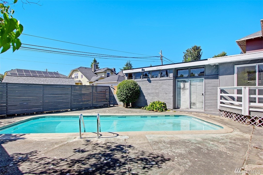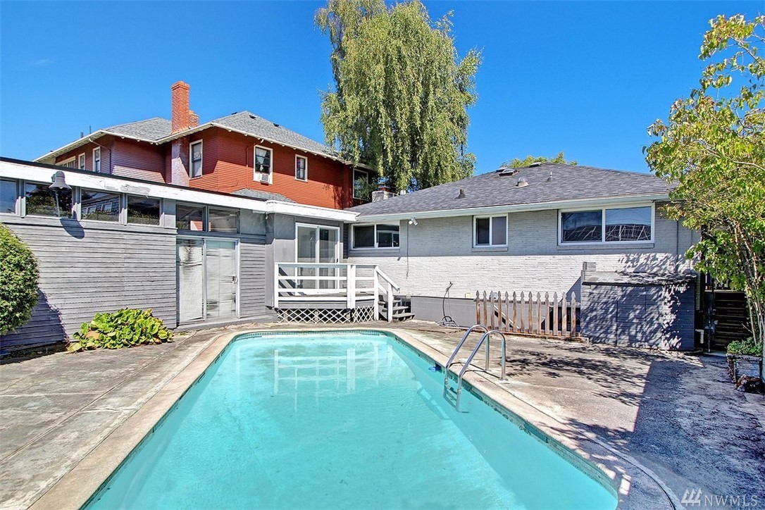 Check out this solid 1950’ home, set back off the street and fully fenced for total privacy. The main floor has hardwoods throughout, a living room with a ‘real’ fireplace, an eat-in kitchen, 2 bedrooms & a full bath. Then there’s a fully finished lower level with 2 bedrooms, a family room, 2nd full kitchen & 3/4 bath. Perfect for a MIL. Fully fenced yard with trees and shrubs. The backyard patio and swimming pool face west so it's sunny. Light rail, parks, eateries and the lake all walk-able.