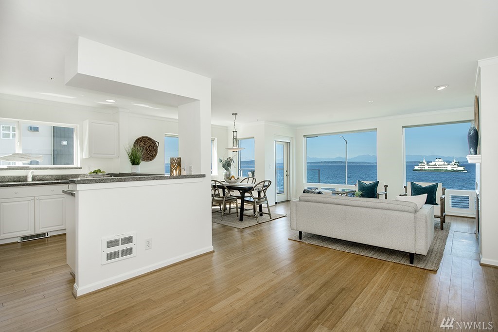 Spectacular Sound & Olympic Mountain views from this 2 bedroom, 2 full bath spacious condo. 1402 Alki Beach Condominium is located on the scenic route of Alki with wireless views! Relax on the generous-sized deck while taking in views of ferries, tug boats, sea life, cargo ships & sunsets. Open floor plan, granite countertops in kitchen, bamboo flooring throughout. A quick commute to downtown via water taxi, or bus. Stroll to Alki restaurants, coffee shops, and parks. Close to amenities.