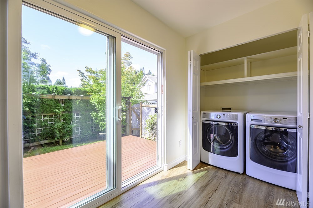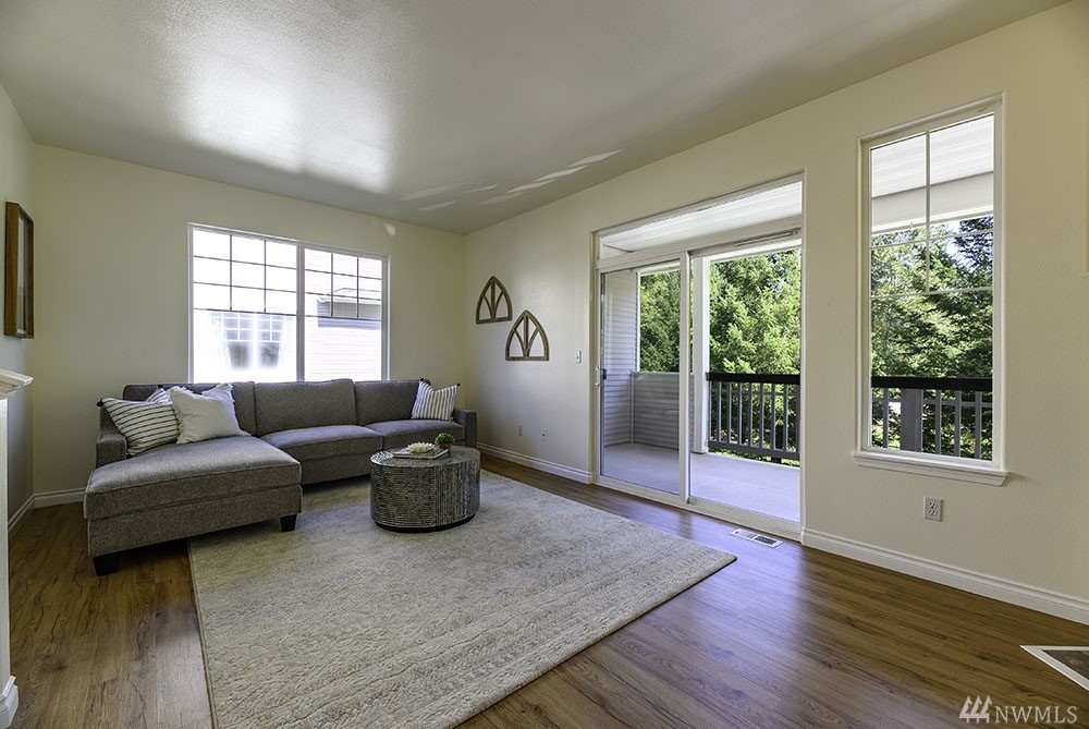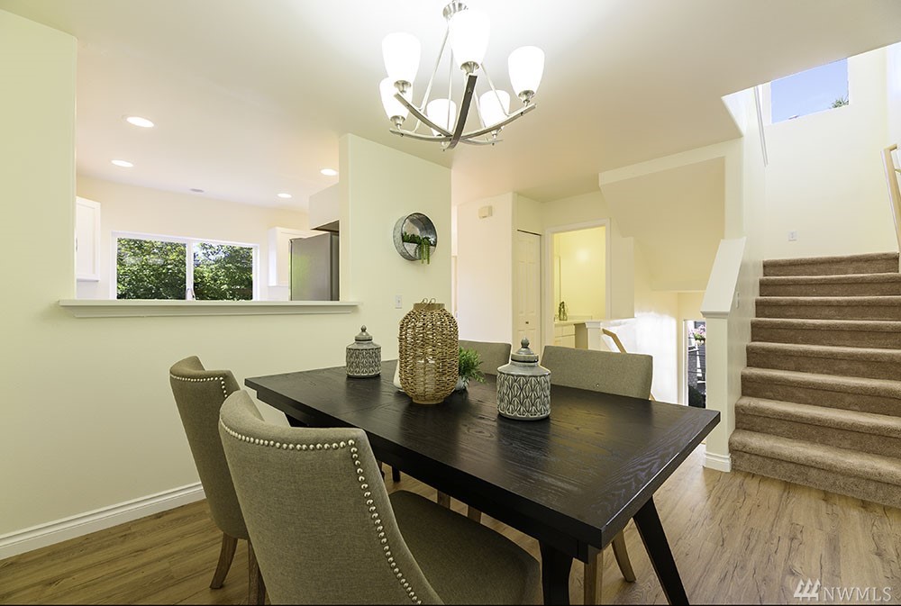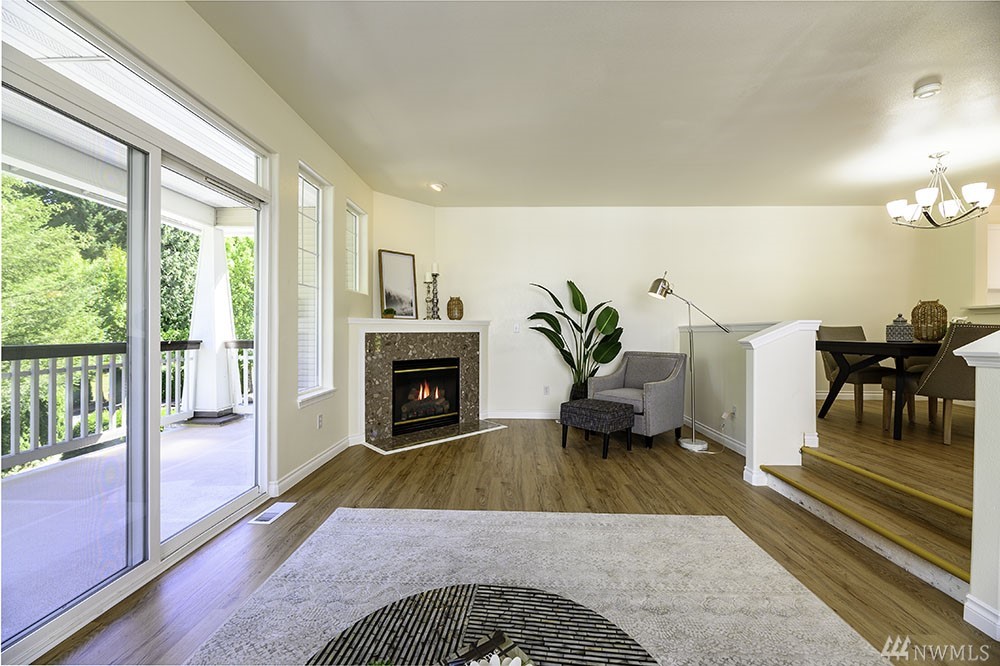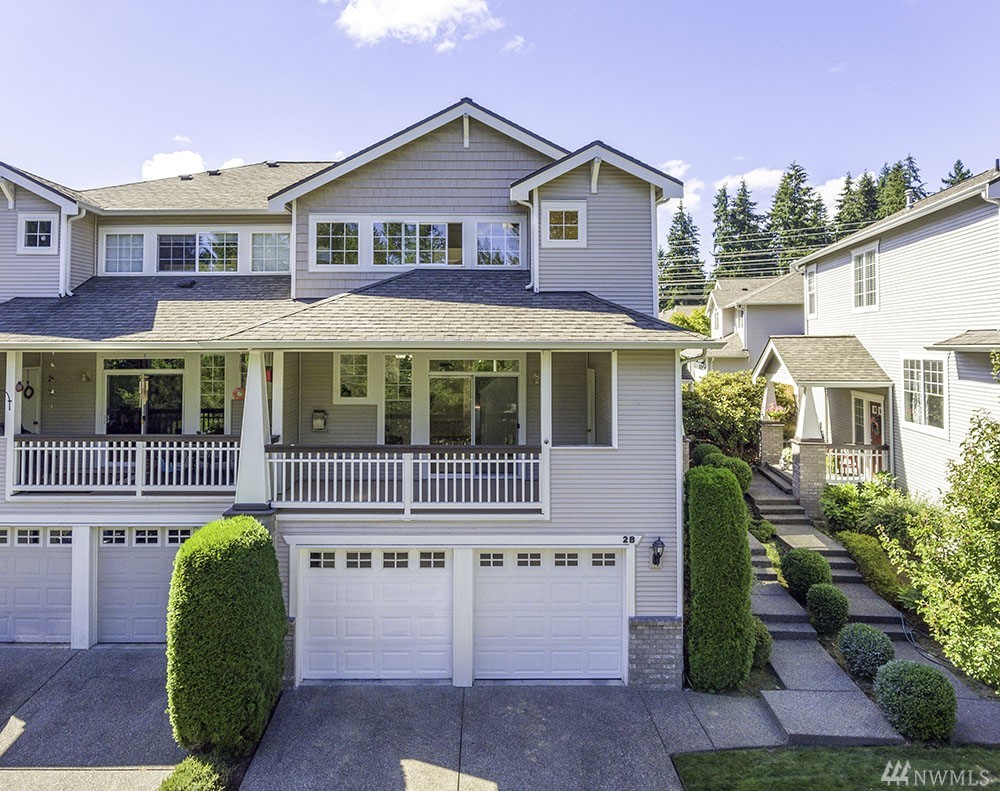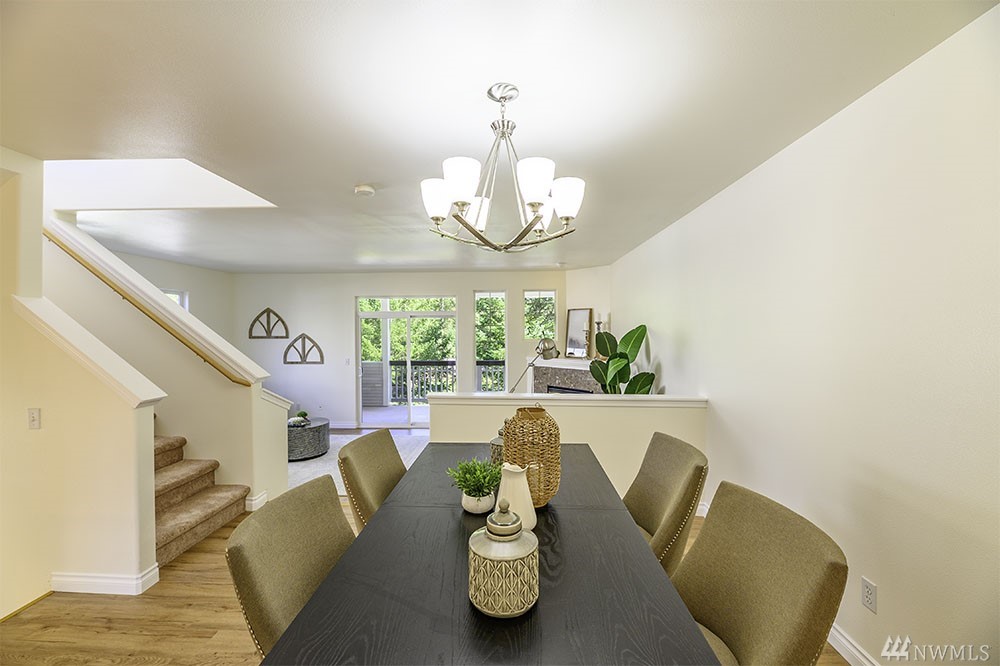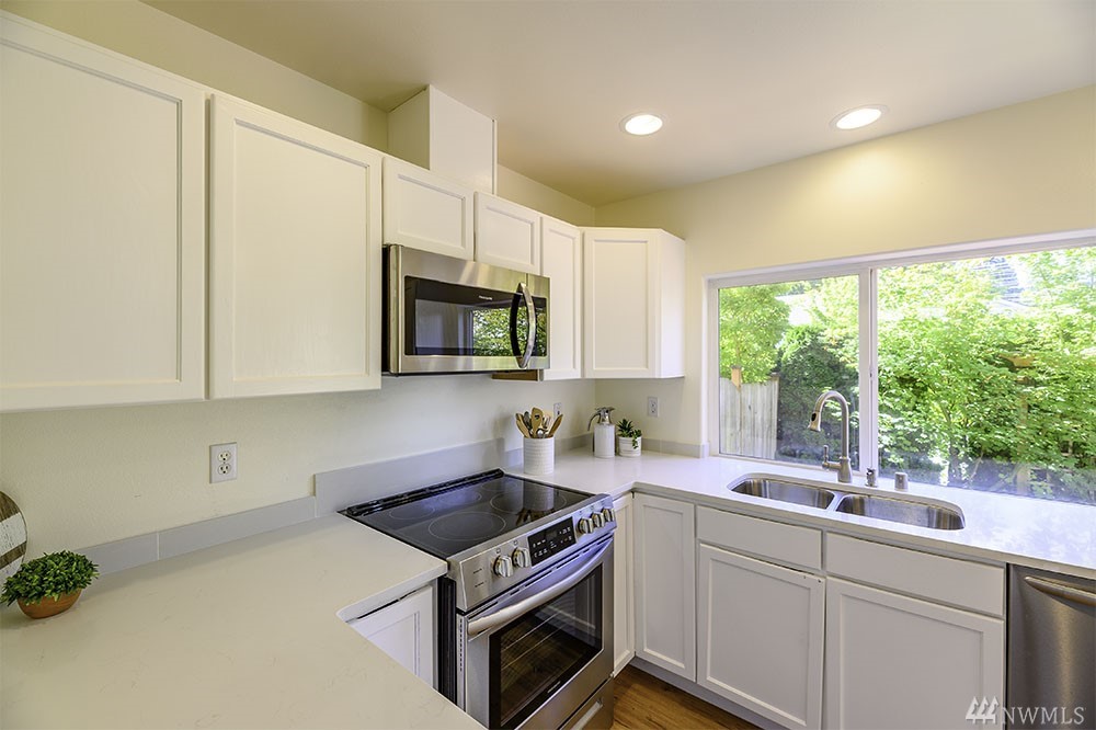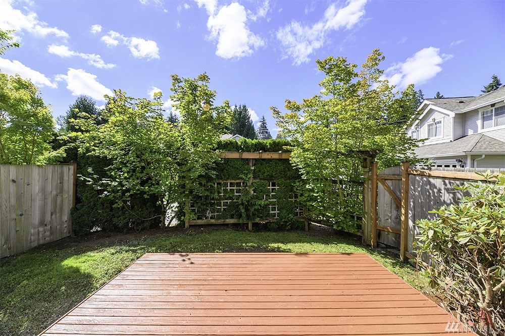 Newly refinished sunny Townhome in Mill Creek. 3 bed, 2.5 bath end unit with huge covered balcony, and sunny fenced yard w/deck. Bright interior boasts all new quartz countertops, white cabinets, new SS appliances, new LVP flooring and carpet, interior paint, and newly finished bonus/office space and additional storage room in the basement! Master has WIC, updated bath. Updated guest bath and powder. Full two car garage. Sought after schools are around the corner. Low HOA and no rental cap.