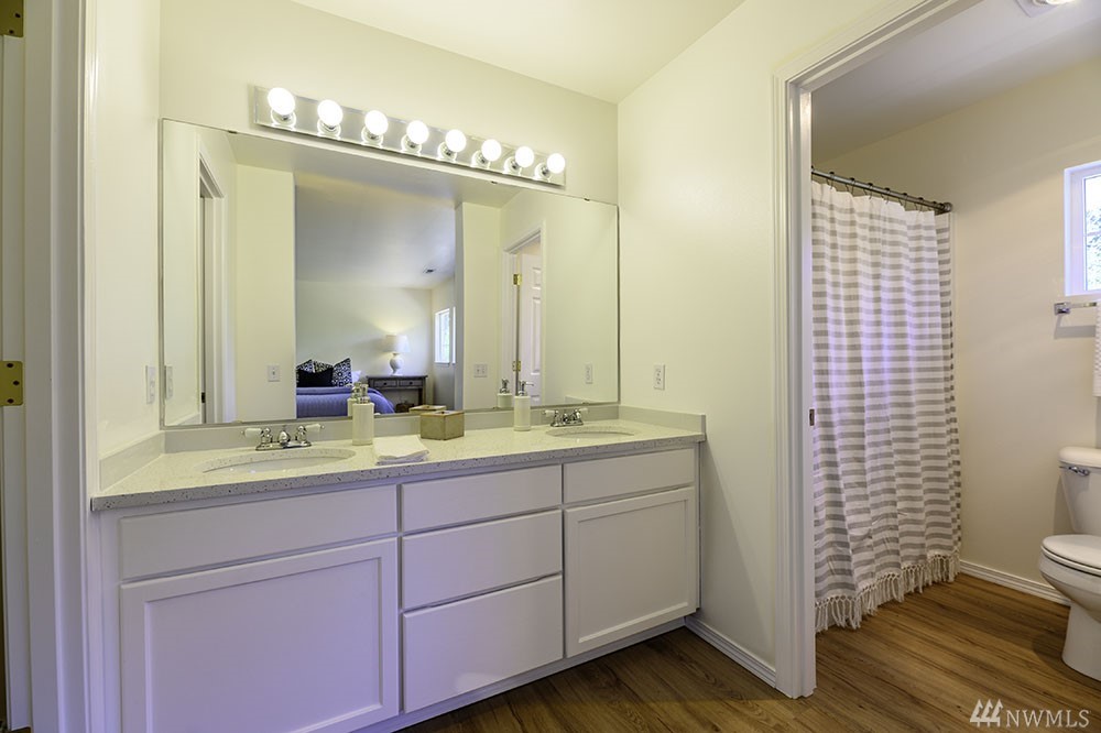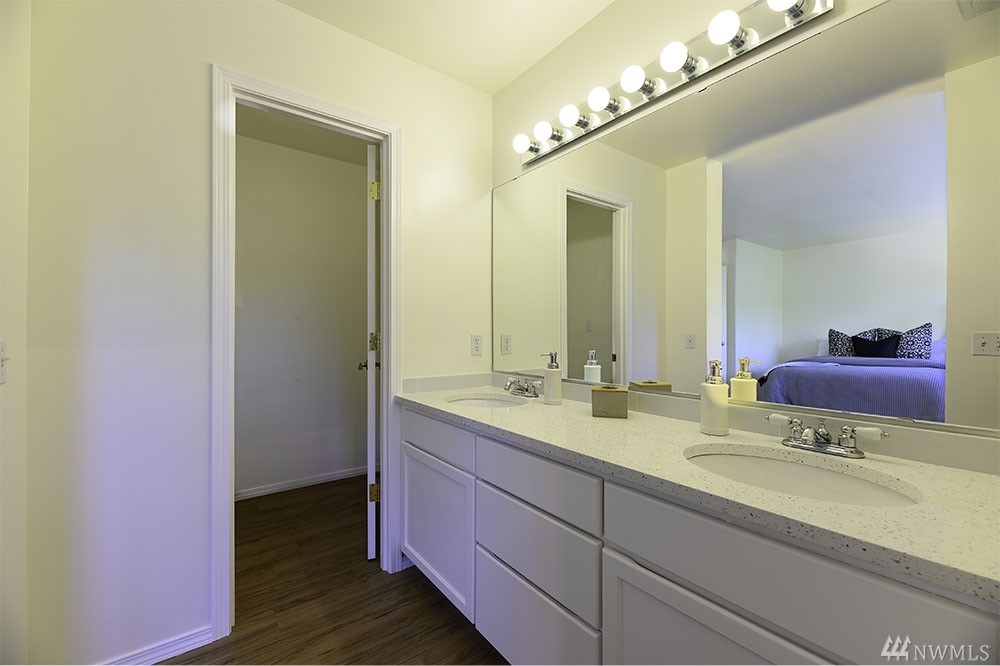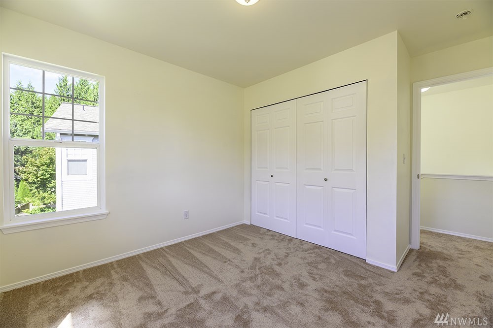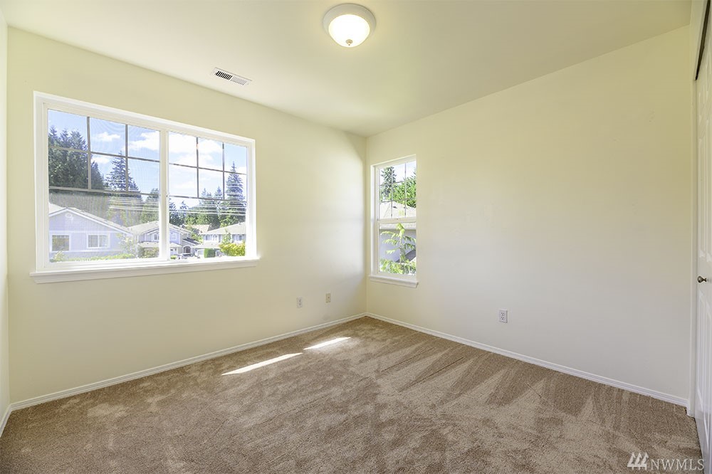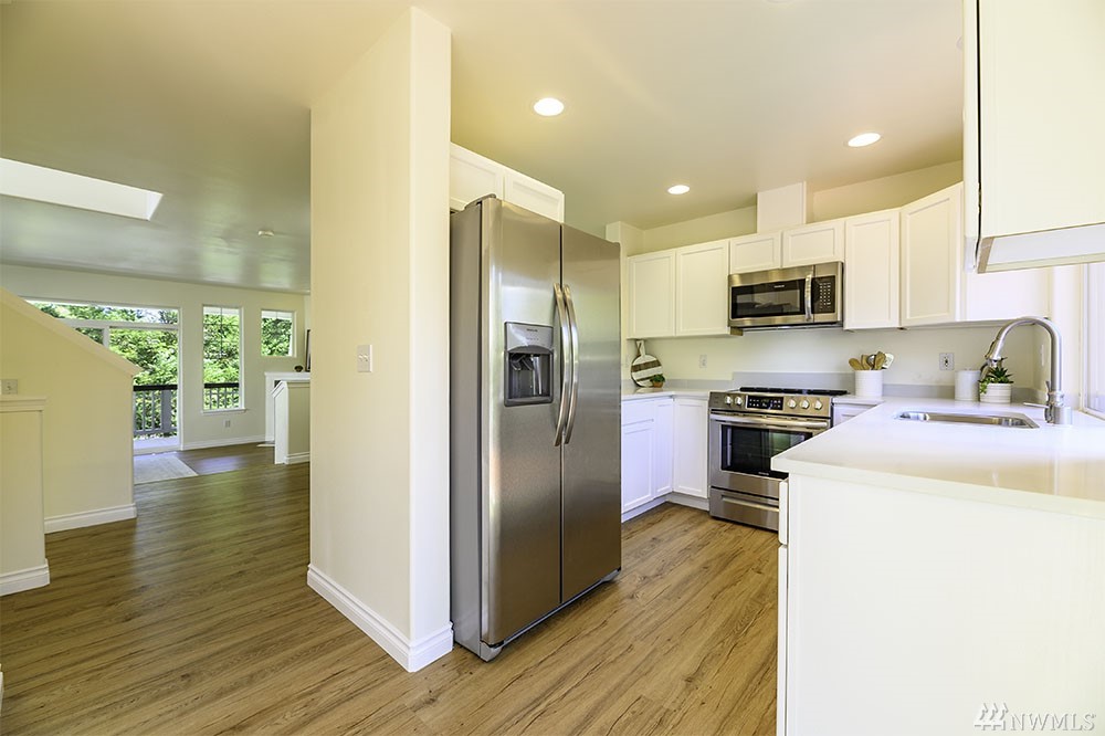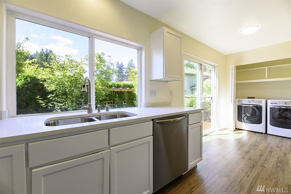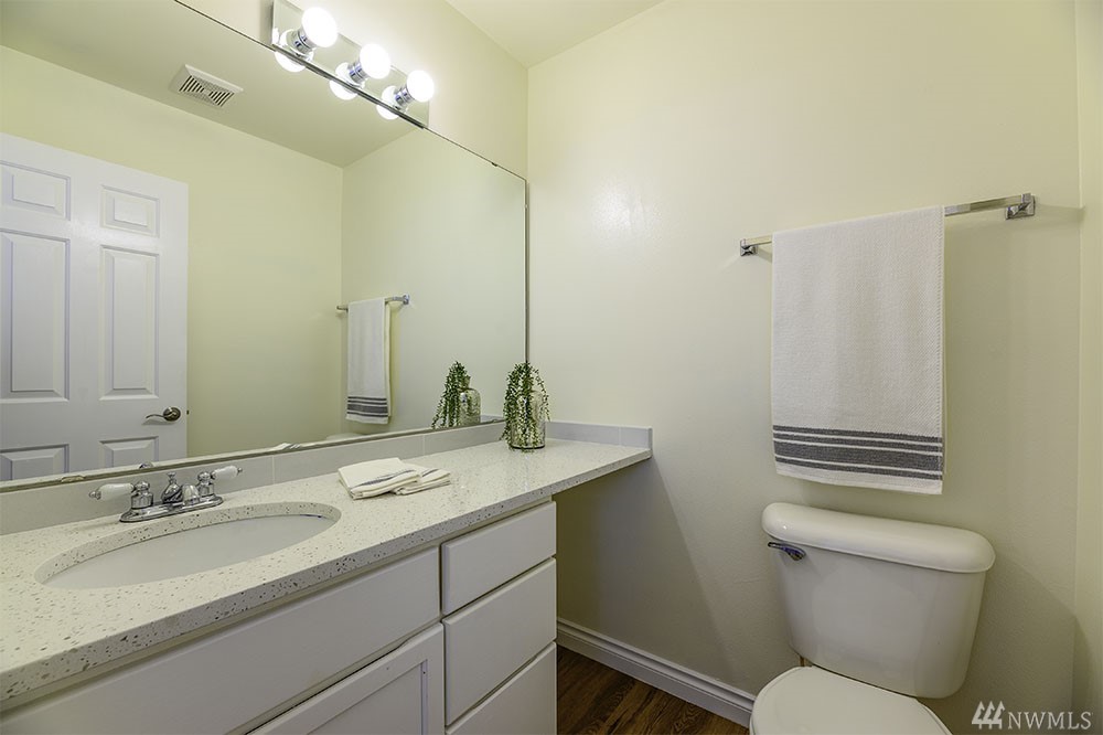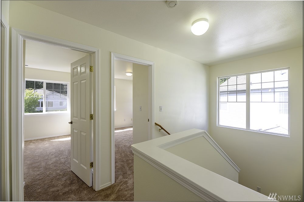 Newly refinished sunny Townhome in Mill Creek. 3 bed, 2.5 bath end unit with huge covered balcony, and sunny fenced yard w/deck. Bright interior boasts all new quartz countertops, white cabinets, new SS appliances, new LVP flooring and carpet, interior paint, and newly finished bonus/office space and additional storage room in the basement! Master has WIC, updated bath. Updated guest bath and powder. Full two car garage. Sought after schools are around the corner. Low HOA and no rental cap.