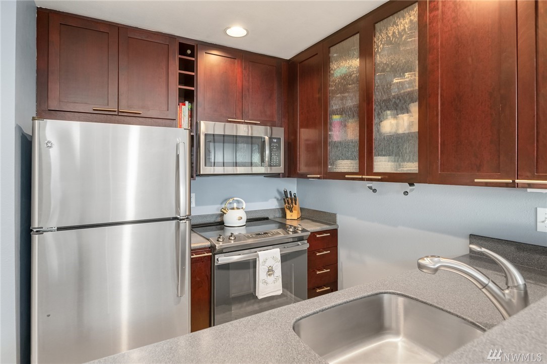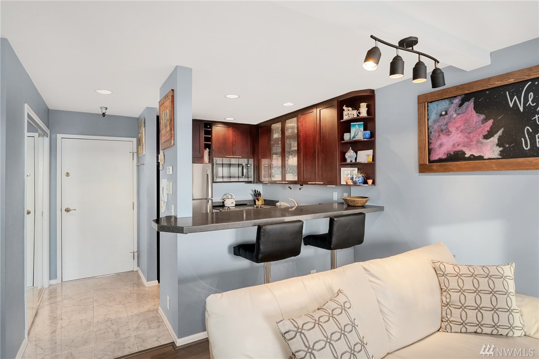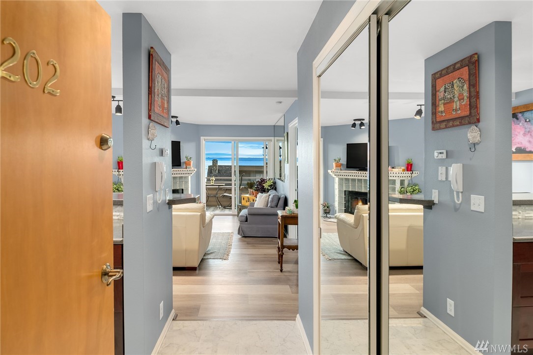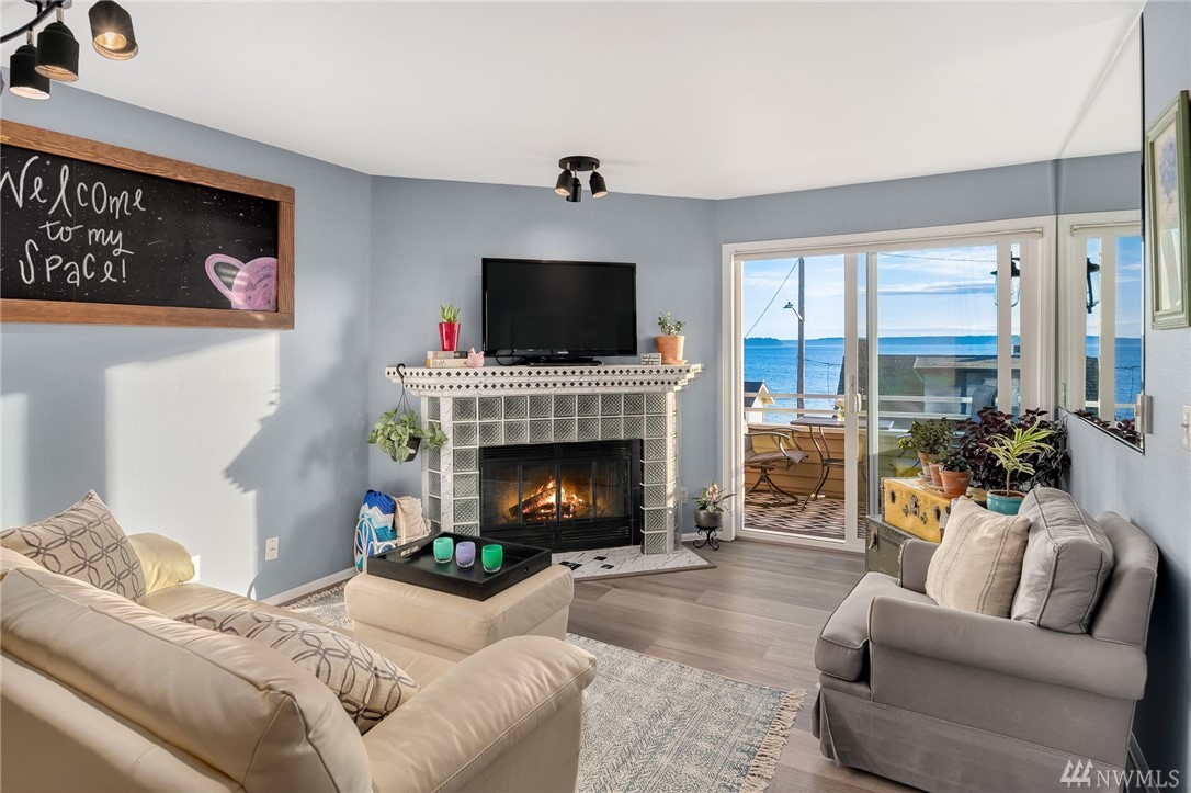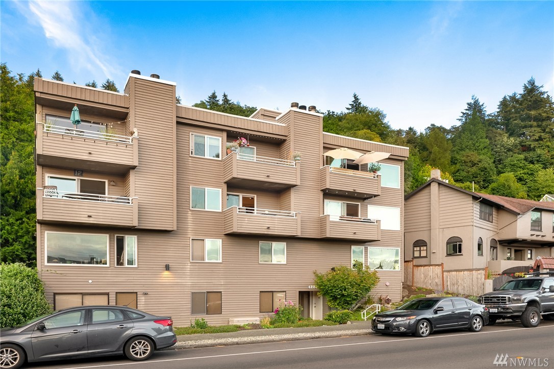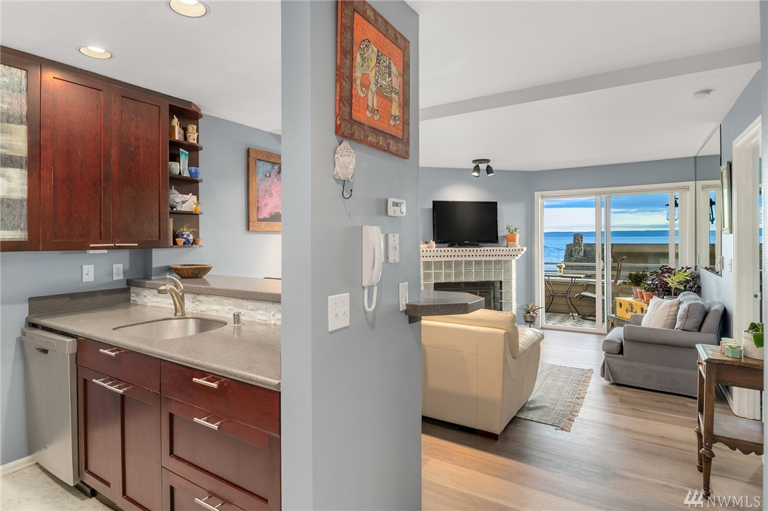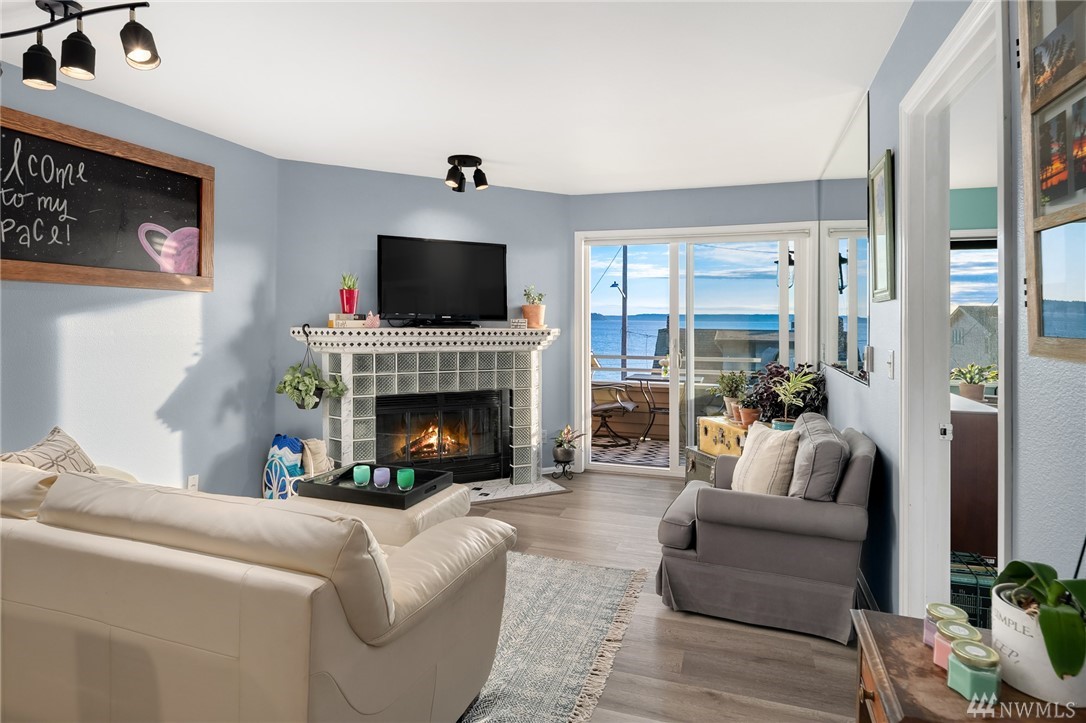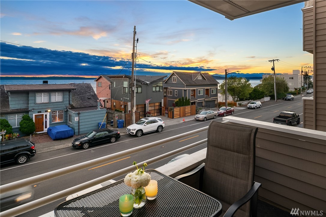 Breathtaking sunset views over the Puget Sound & Olympics from this brilliant condo. Take in beautiful surroundings and enjoy a breeze while dining on a nice private deck. Go for a waterfront run, take advantage of proximity to Alki Beach shops & restaurants, or stay in and relax at home in this inviting 1BR condo. Easy living, sweet extras like updated finishes, fireplace, open floorplan, private parking, and a well-maintained building. Exquisite value for the view & features for under $375k!