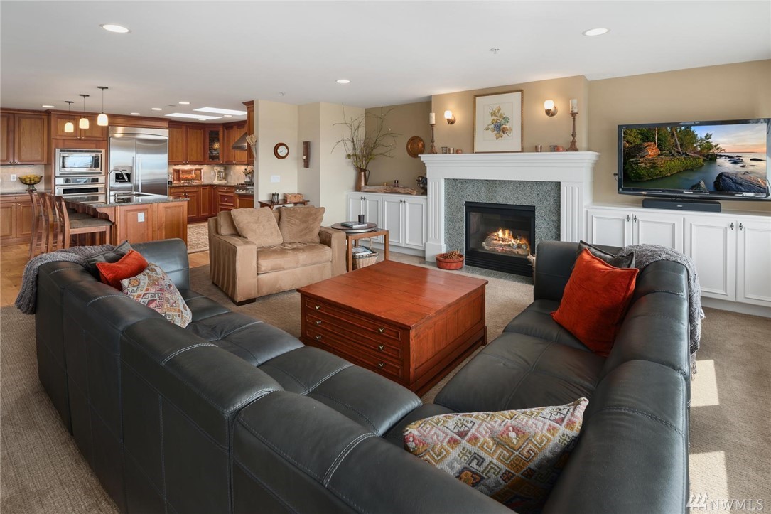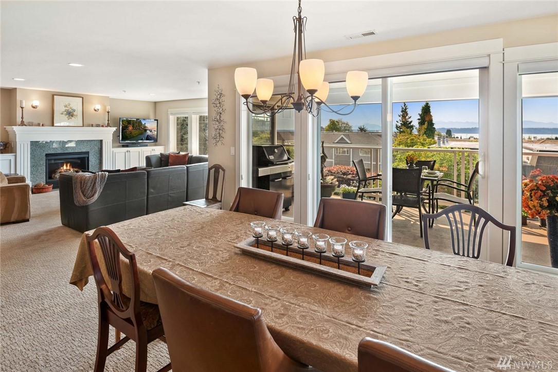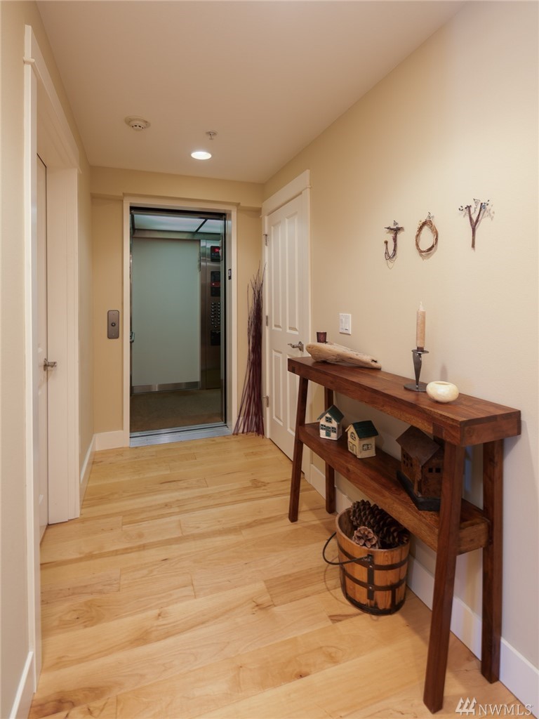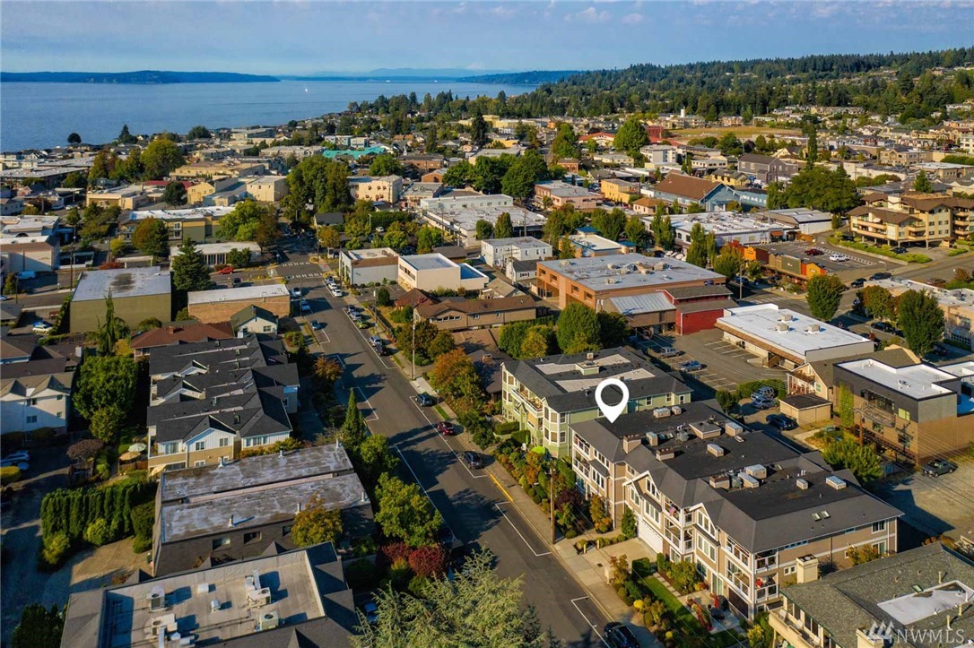 This rare three-bedroom corner penthouse suite has sweeping sound and mountain views with unique secure elevator access directly to unit. Tasteful luxury finishes, seamless open floor plan, private covered balcony, a gorgeous chef's kitchen with Thermador appliance package, impressive en suite primary bedroom, efficient heat pump & furnace for year round comfort, private two car garage, custom built-ins, storage galore, and in a boutique building so close to all downtown Edmonds has to offer.