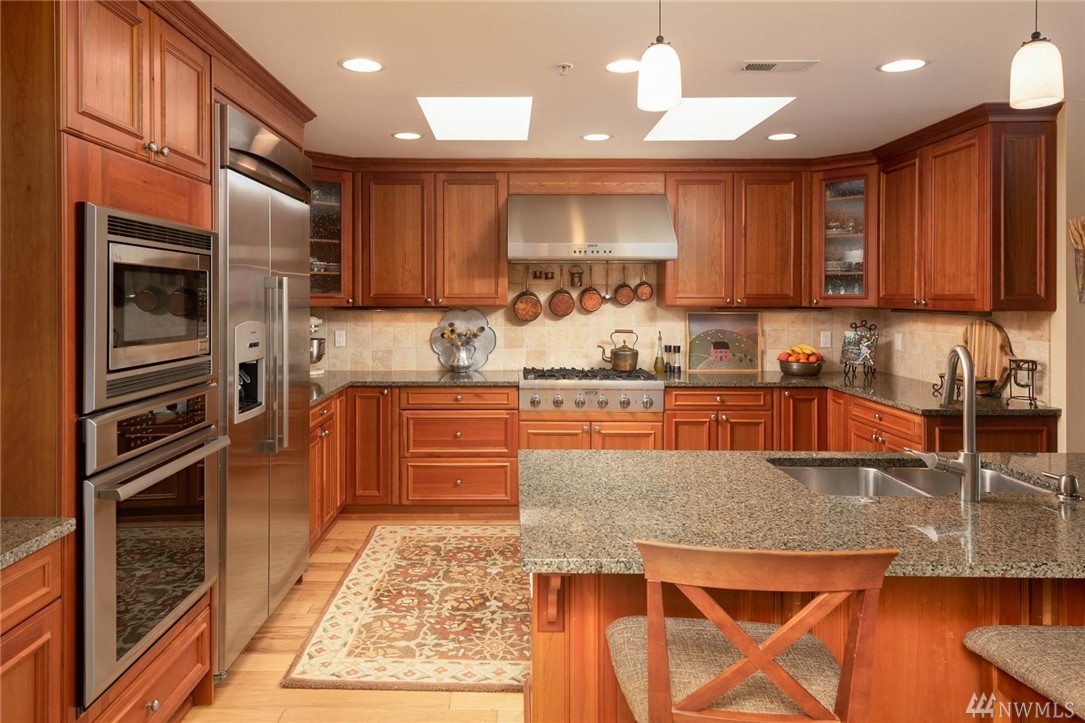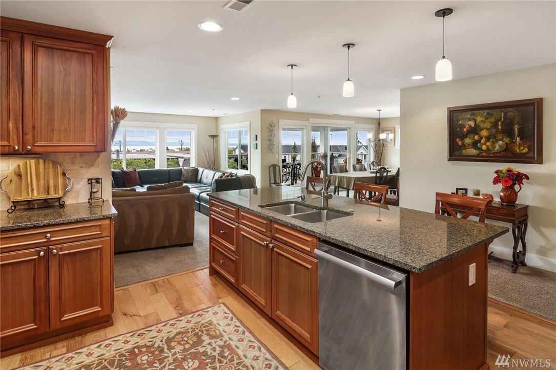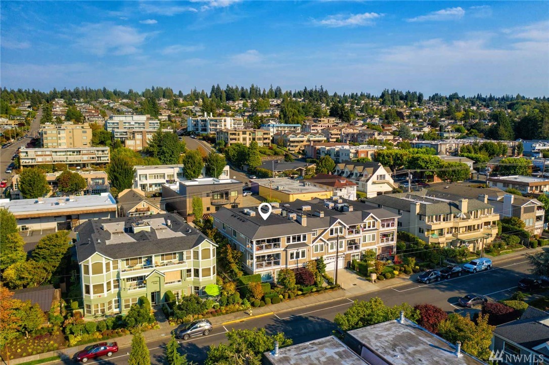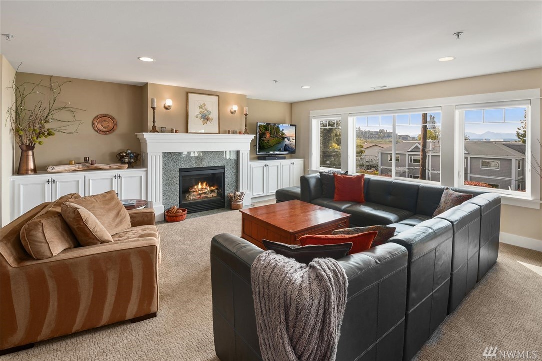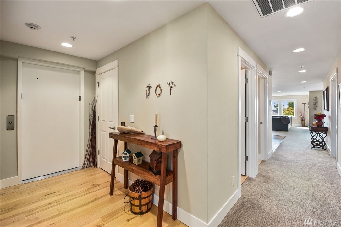 This rare three-bedroom corner penthouse suite has sweeping sound and mountain views with unique secure elevator access directly to unit. Tasteful luxury finishes, seamless open floor plan, private covered balcony, a gorgeous chef's kitchen with Thermador appliance package, impressive en suite primary bedroom, efficient heat pump & furnace for year round comfort, private two car garage, custom built-ins, storage galore, and in a boutique building so close to all downtown Edmonds has to offer.