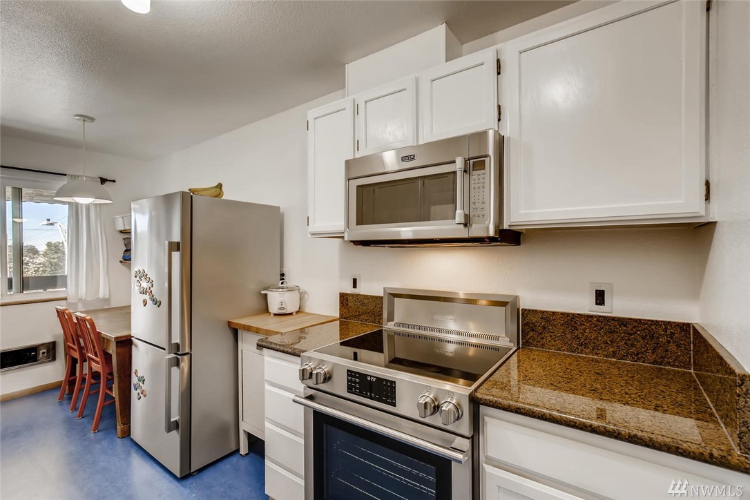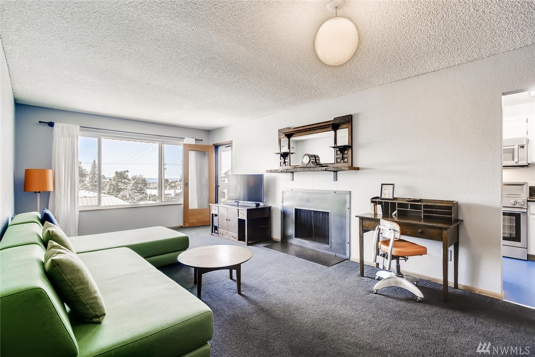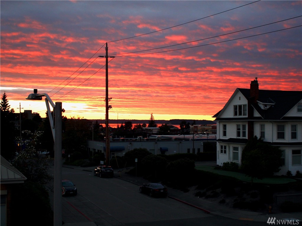 From this stylish top floor corner unit you’ll see breathtaking sunsets, city views, & a glimpse of the Sound.