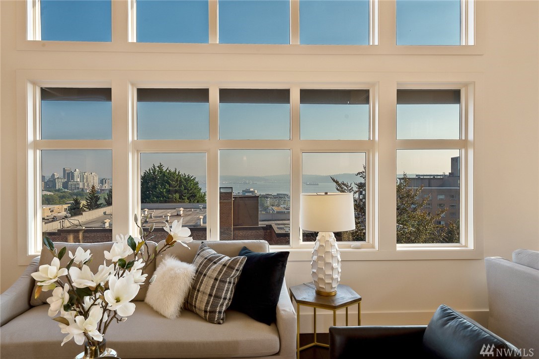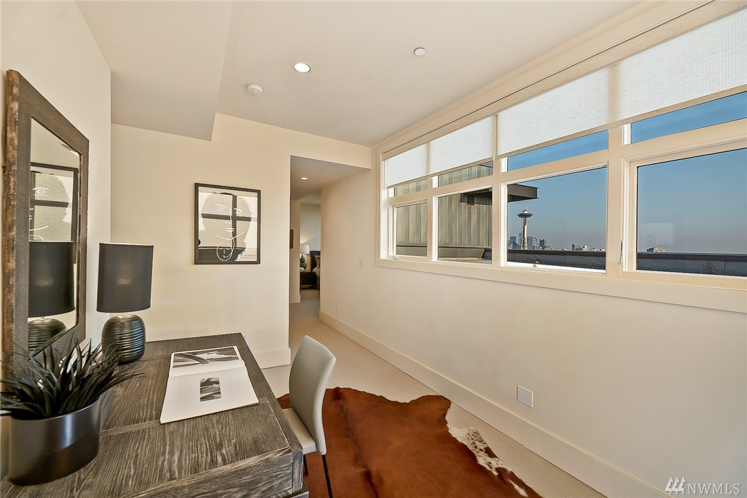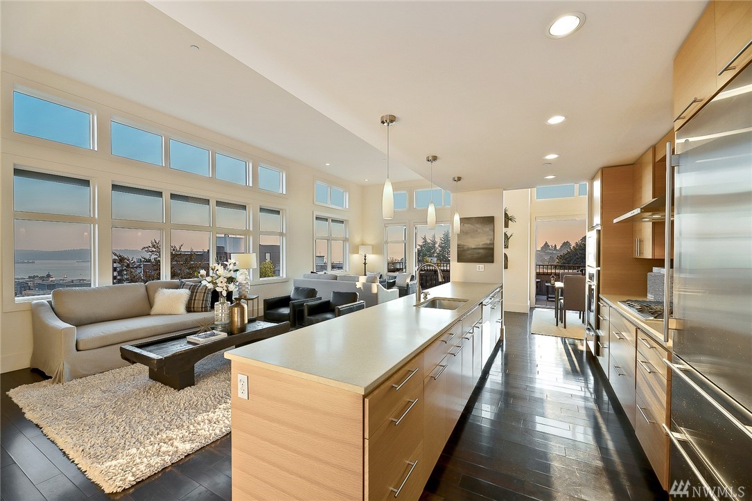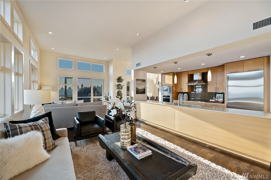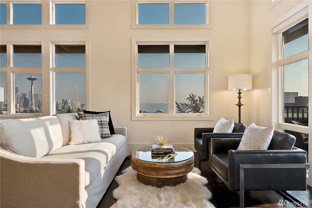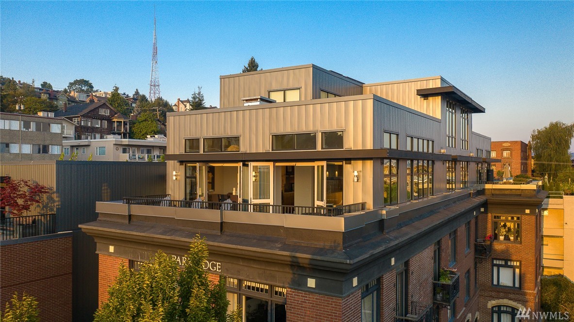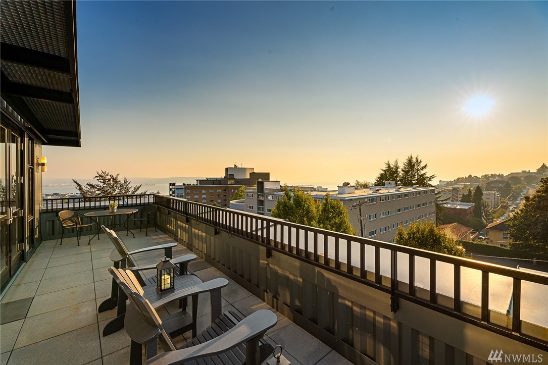 Is this really Frasier's condo? One would think! Stunning south slope QA Penthouse with breathtaking views of Seattle's skyline, Space Needle, Mt. Rainier, Puget Sound. Soaring ceilings and expansive living areas. En Suite 2nd bdrm on the main, master up with den. Large private deck to the West, two tandem parking and storage. Slab Caesar Stone, Viking, Sub-Zero and Bosch appliances. A stone's throw to everything Queen Anne, both upper and lower. I-5's a breeze as is Hwy 99. Pet friendly.