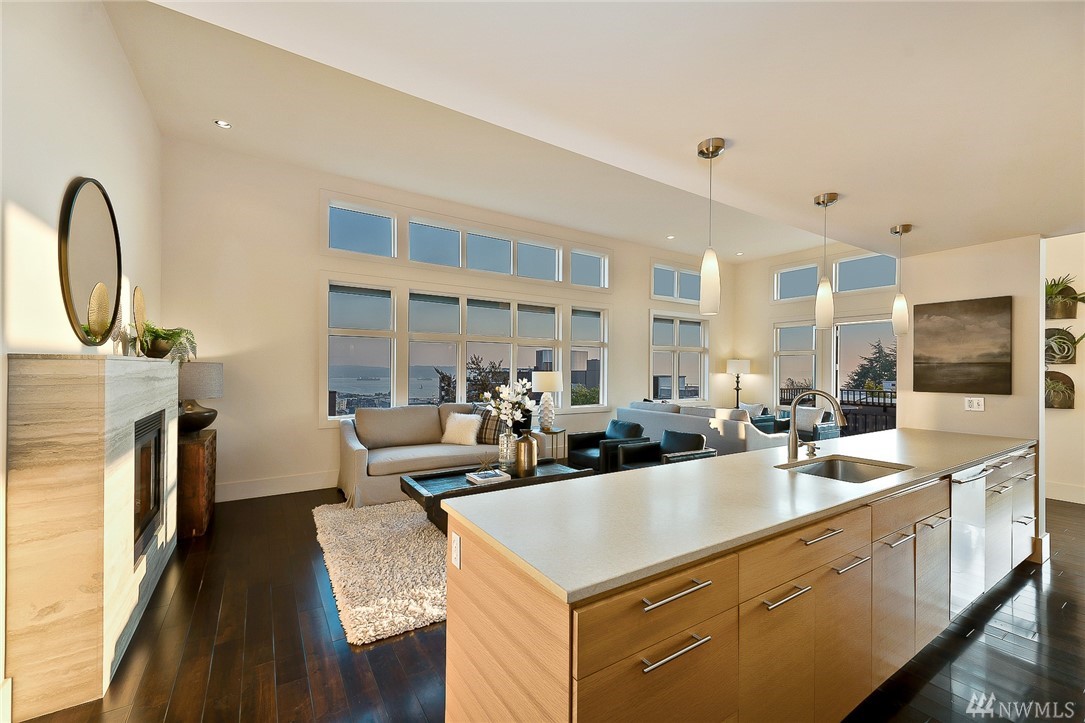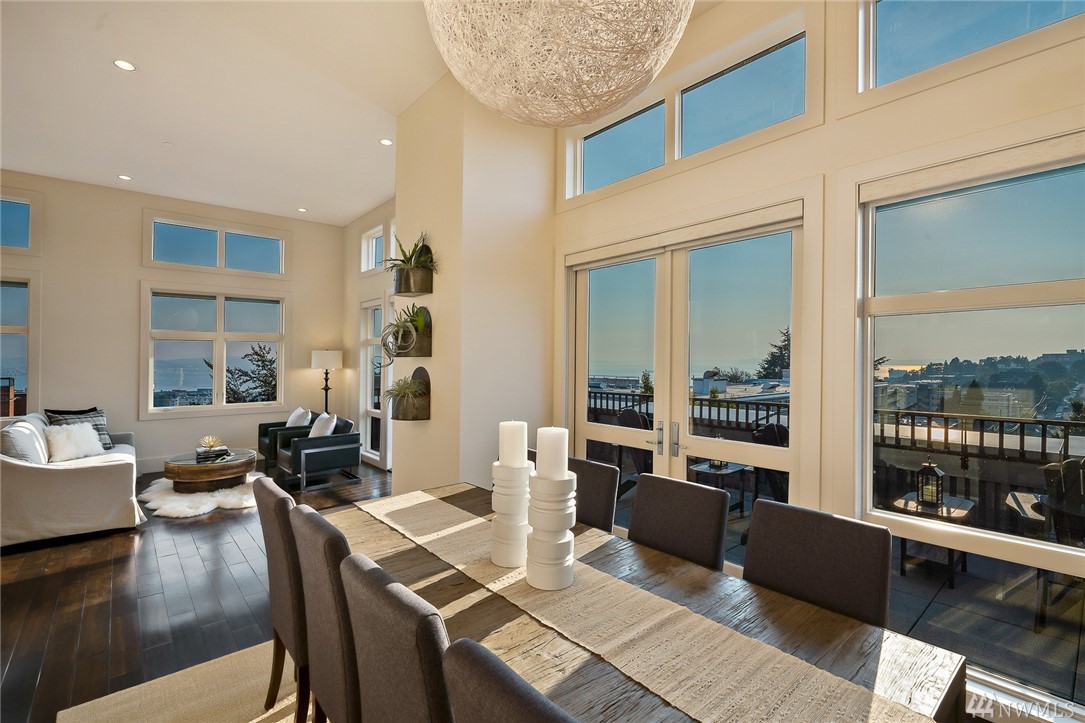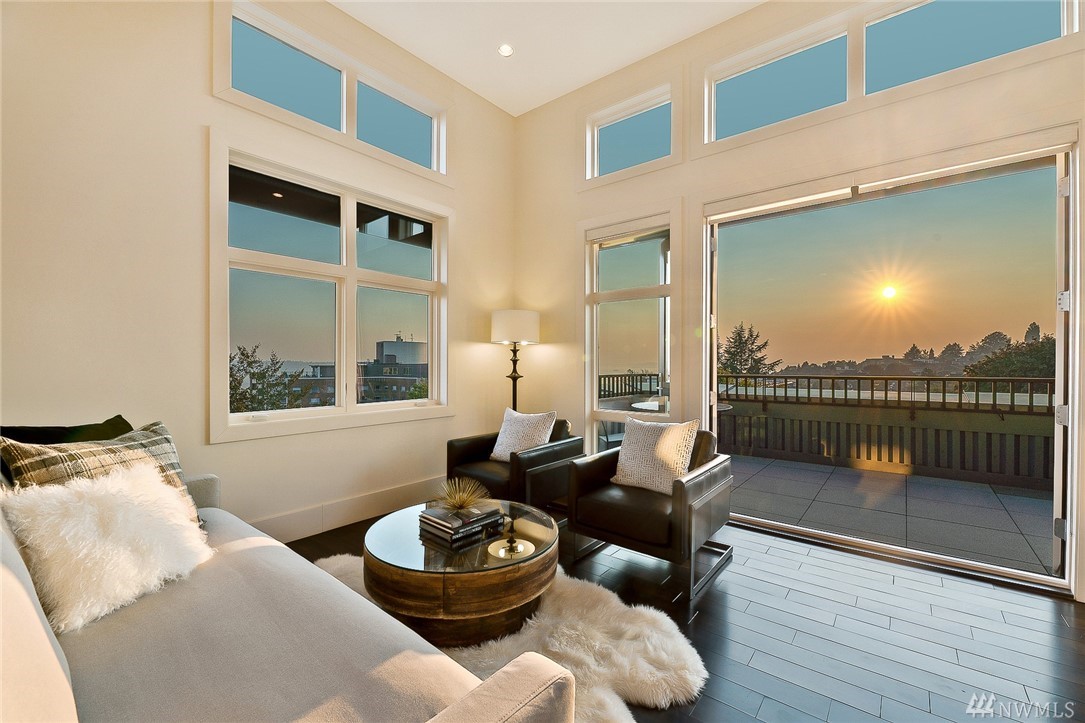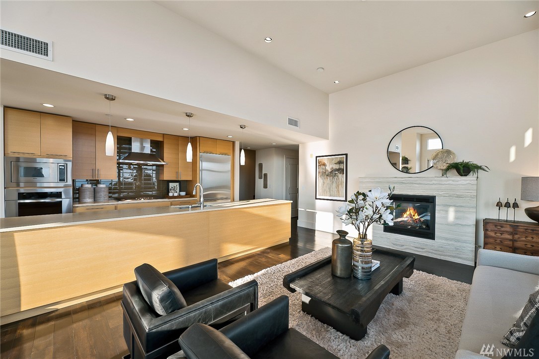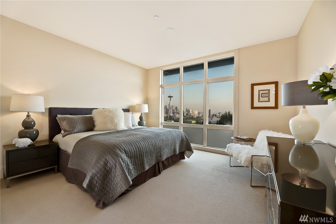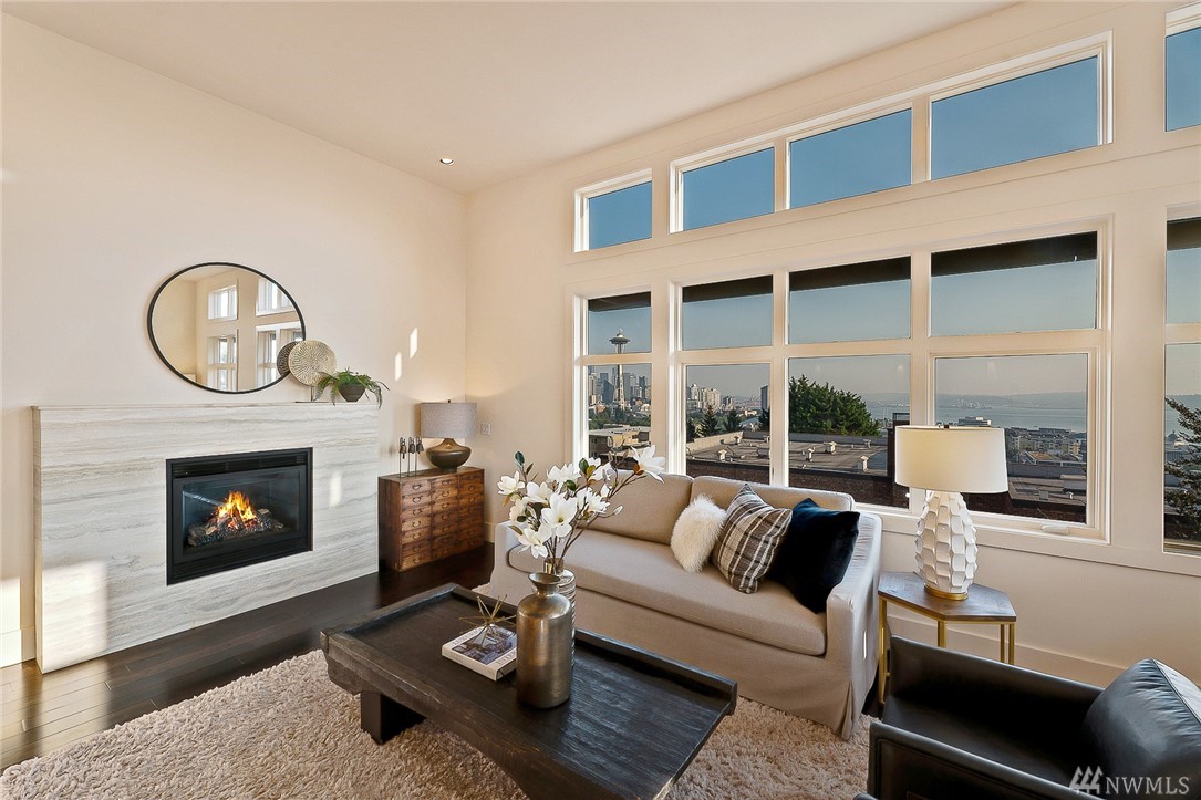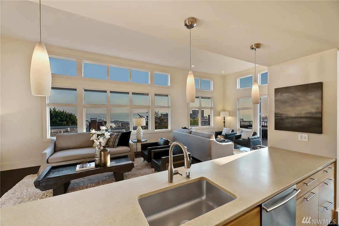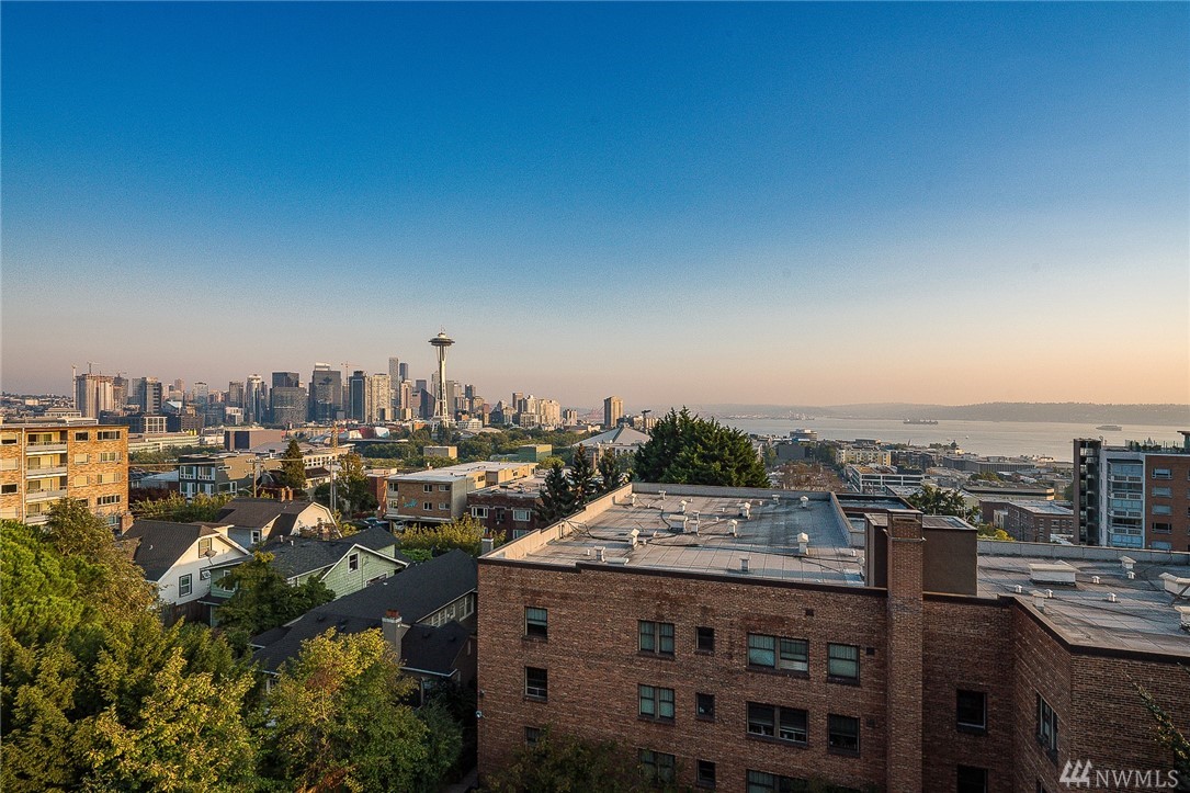 Is this really Frasier's condo? One would think! Stunning south slope QA Penthouse with breathtaking views of Seattle's skyline, Space Needle, Mt. Rainier, Puget Sound. Soaring ceilings and expansive living areas. En Suite 2nd bdrm on the main, master up with den. Large private deck to the West, two tandem parking and storage. Slab Caesar Stone, Viking, Sub-Zero and Bosch appliances. A stone's throw to everything Queen Anne, both upper and lower. I-5's a breeze as is Hwy 99. Pet friendly.
