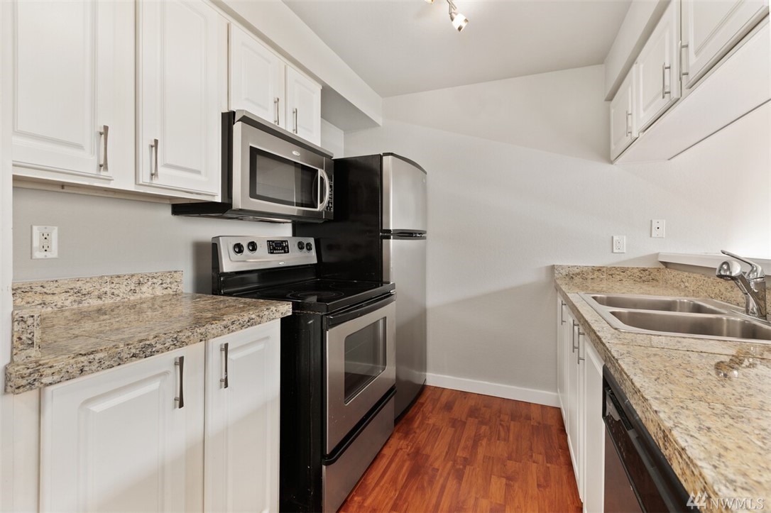 Beautiful unit at the Townhomes On Center complex. This condominium has new paint and carpet throughout! Very functional layout with a bright living room, galley kitchen, granite counters, and stainless-steel appliances. The Master Bedroom overlooks the gated back yard common area and the patio off the downstairs has a large storage unit. Excellent location for commuting with I-5 and the park and ride being within 1 mile from the unit and just minutes to shopping and the Mill Creek Town center.