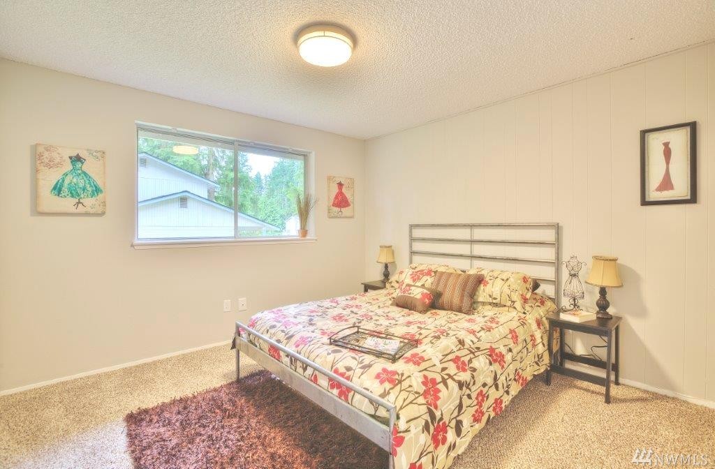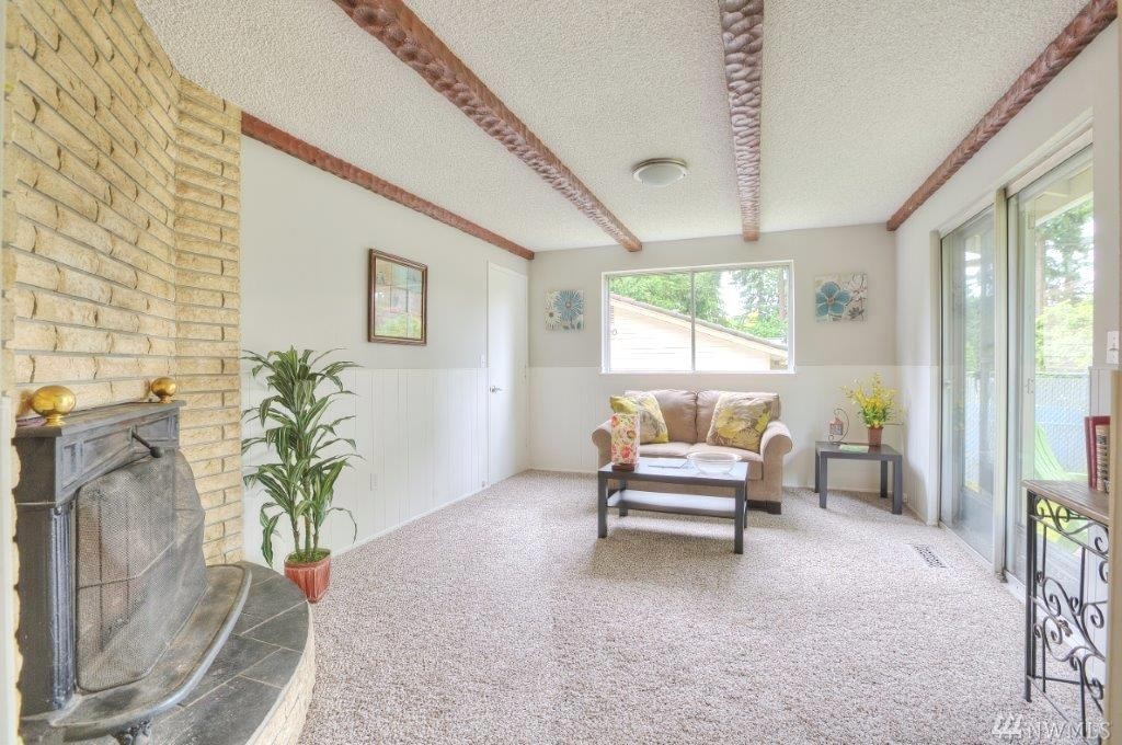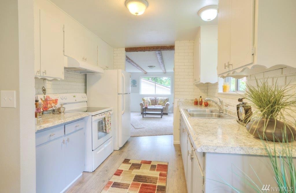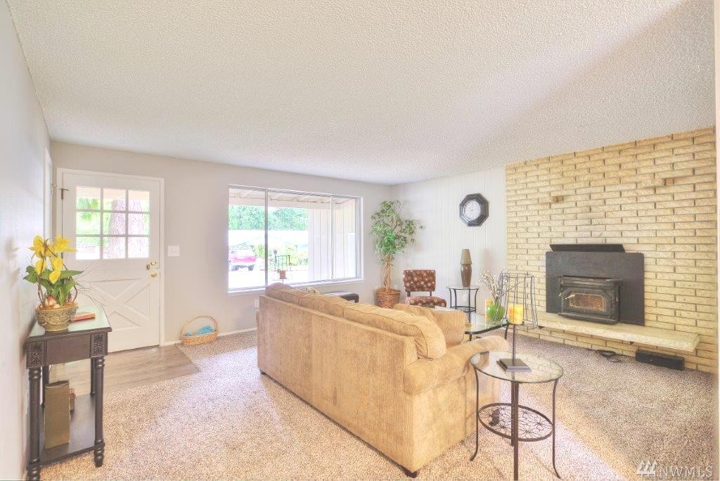 Welcome to Brooklake Manor situated on a huge corner lot & move in ready!! New kitchen counters, carpet, interior paint, stove, lighting & beautiful flooring in the kitchen, dining & bathroom. Spacious living room with FP opens to the dining rm. Features 3 good size bedrooms & full bath W/laundry area. Light & bright walk thru kitchen leads to entertaining family rm, w/FP and slider to cozy deck & backyard. Enjoy the oversized 1.5 car garage & gas heat. Great location to shopping & I-5 access.