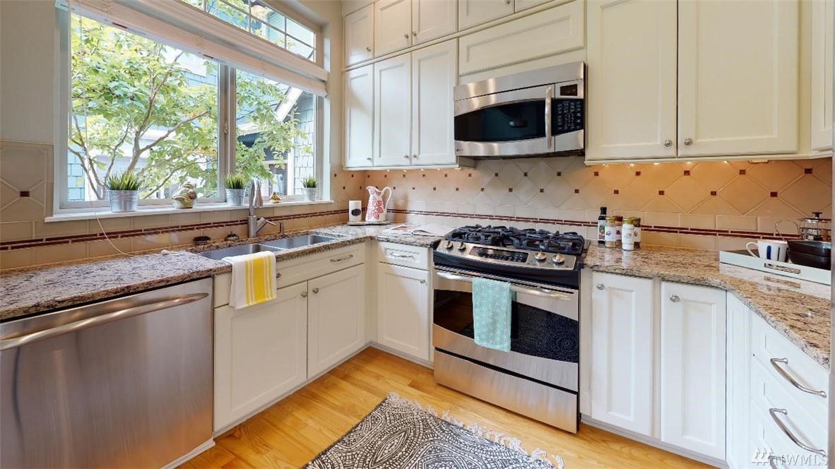 Rare opportunity in the historic Love Family Compound! Welcome to Garden on QA! Entering thru a sweet rocking chair front porch, you'll be wowed by gleaming oak floors & great room- new designer kitchen w/abundant storage, adjacent D/R, designer paint choices, Master bedroom w/ensuite bath & walk-in closet, 2nd B/R w/built-in office & Murphy bed, guest bath & huge entertaining deck. Up the winding stairway to the 3D B/R or ofc/den w/its own private deck. Great HOA tends the gardens! HOME!