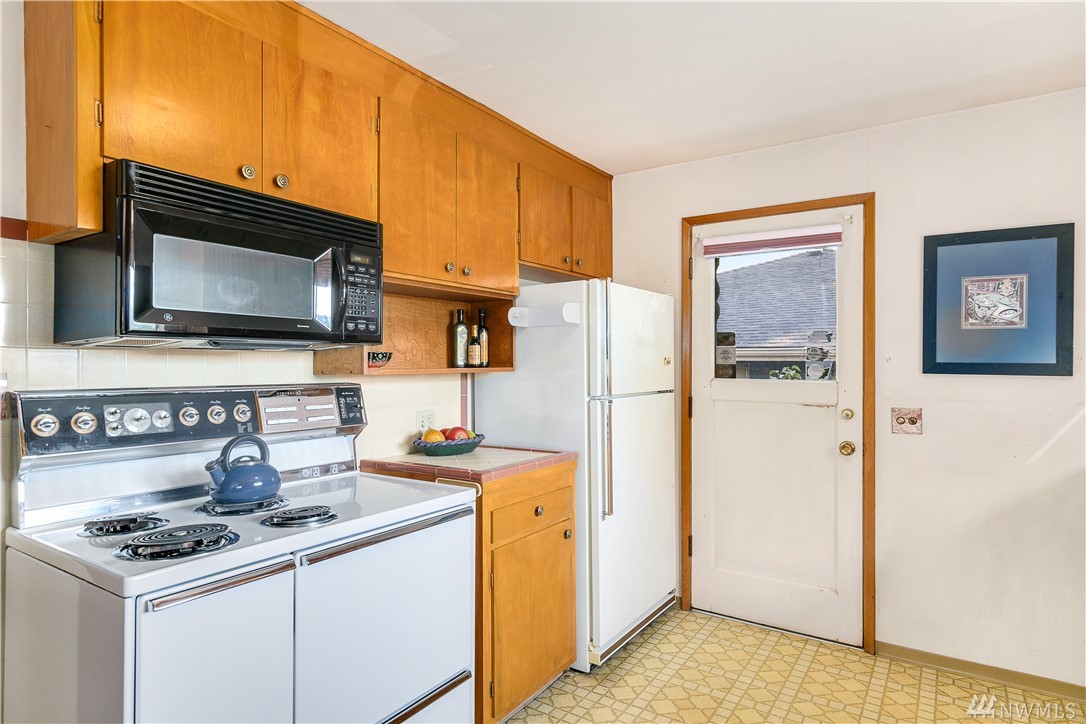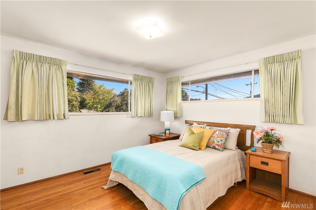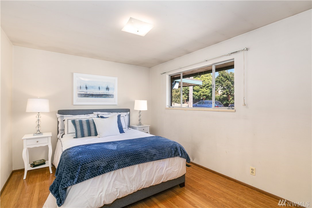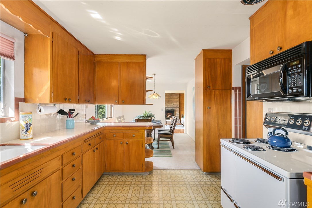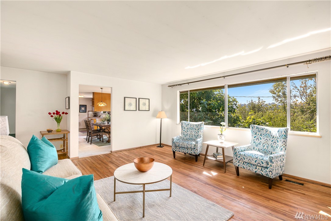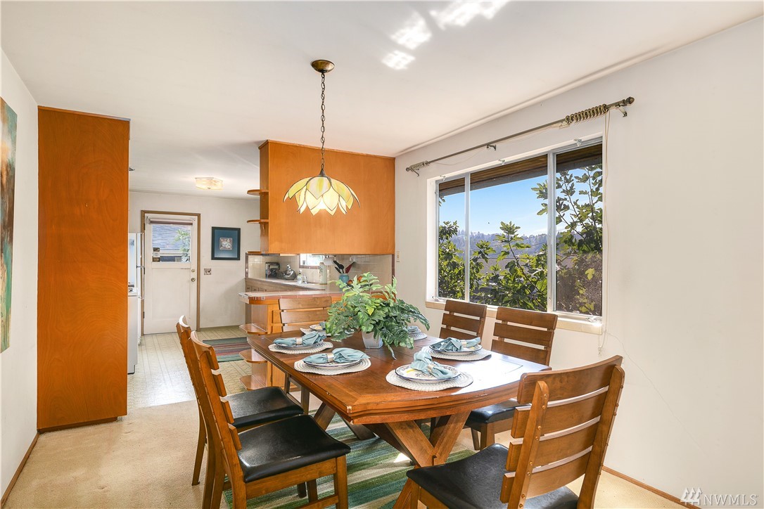 Classic Mid Century in sought after Mt. Baker. Period details intact! Original hdwds adorn the main level w/ walls of windows overlooking your private yard. Updated elec/plumbing. LL boasts a sep entrance, a wonderful 2nd kitchen & DR! Enormous bonus room & lots of storage! Extended living? 2 unit Rental? AirBnb? Possibilities are endless! Zoning allows multi family if you wish! Perfect palette as is or create a home of your dreams! Incredible fig trees, fruit trees & garden area on this lot!