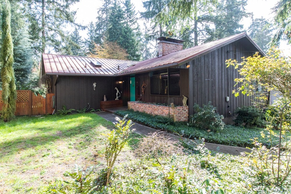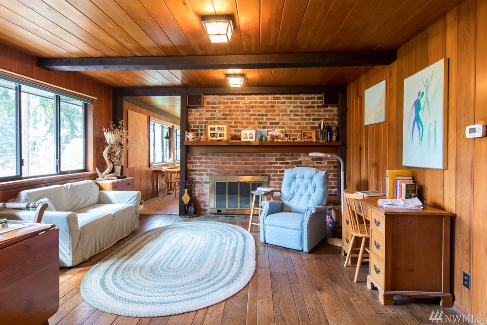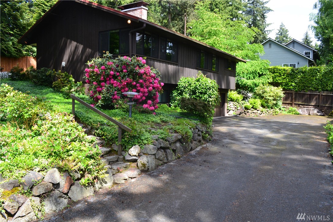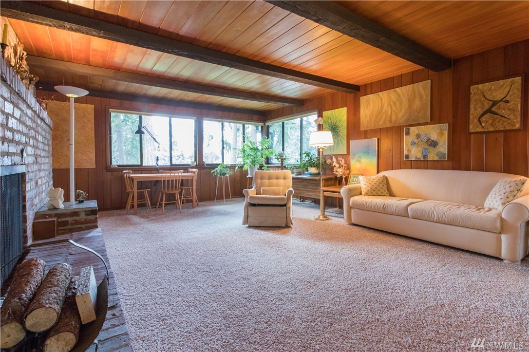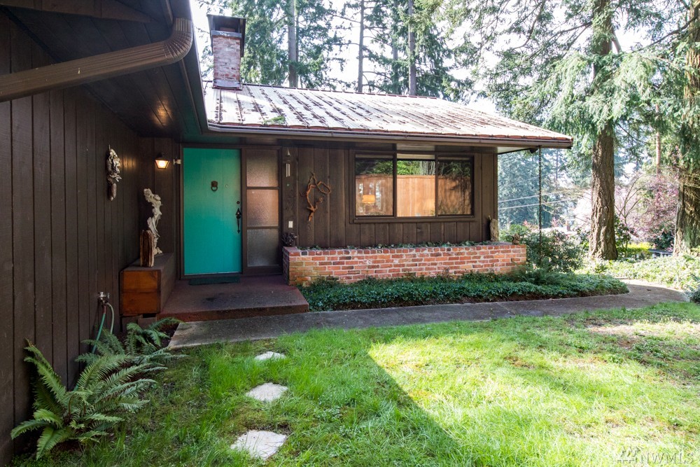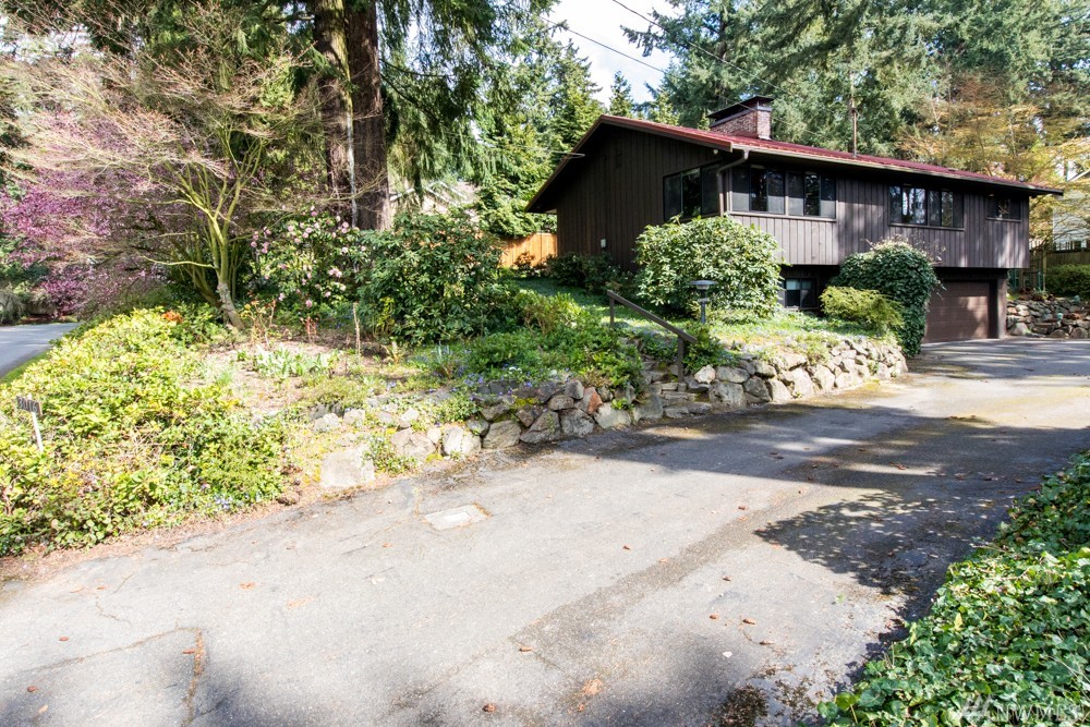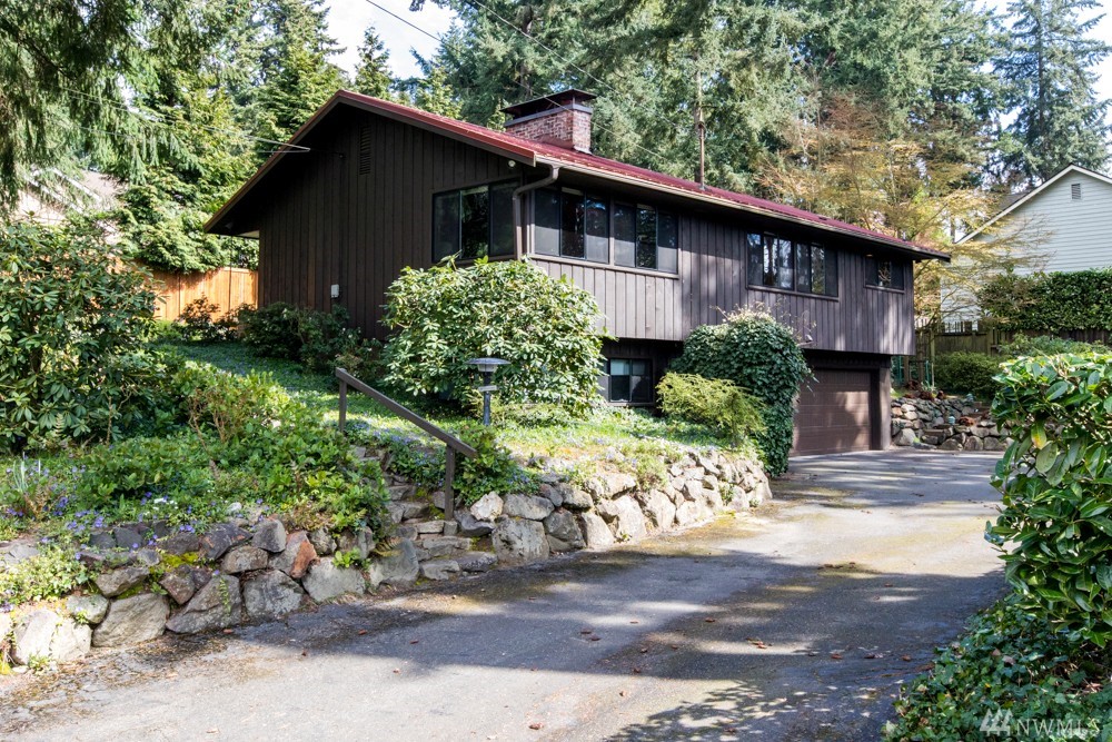 Charming 1956 home on large lot. A fireplace and slate entryway greets you in this midcentury home with original beamed ceilings and pine paneled walls. Sunny spacious living room for entertaining. Enjoy fireside meals in the dining room. Master w/ private bath & walk-in closet. Additional bedroom & bath on main floor. Lower level artist/guest suite with 2nd kitchen and ¾ bath. Attached 2 car garage. Plenty of additional guest parking. Walk your SUP or kayak down the street & launch in Lake WA.