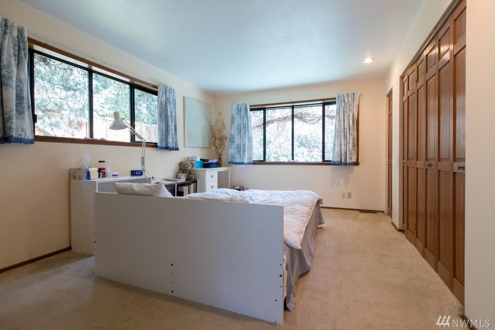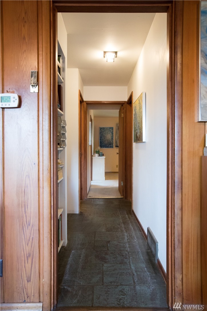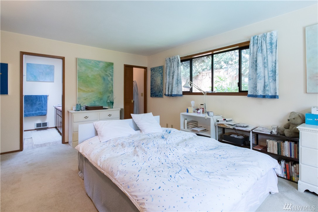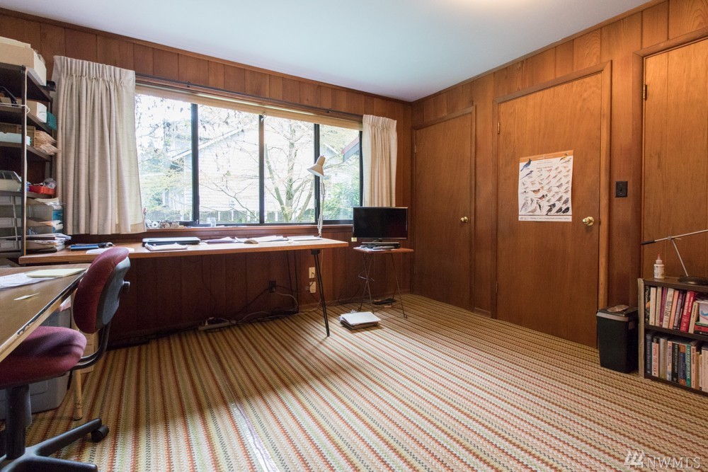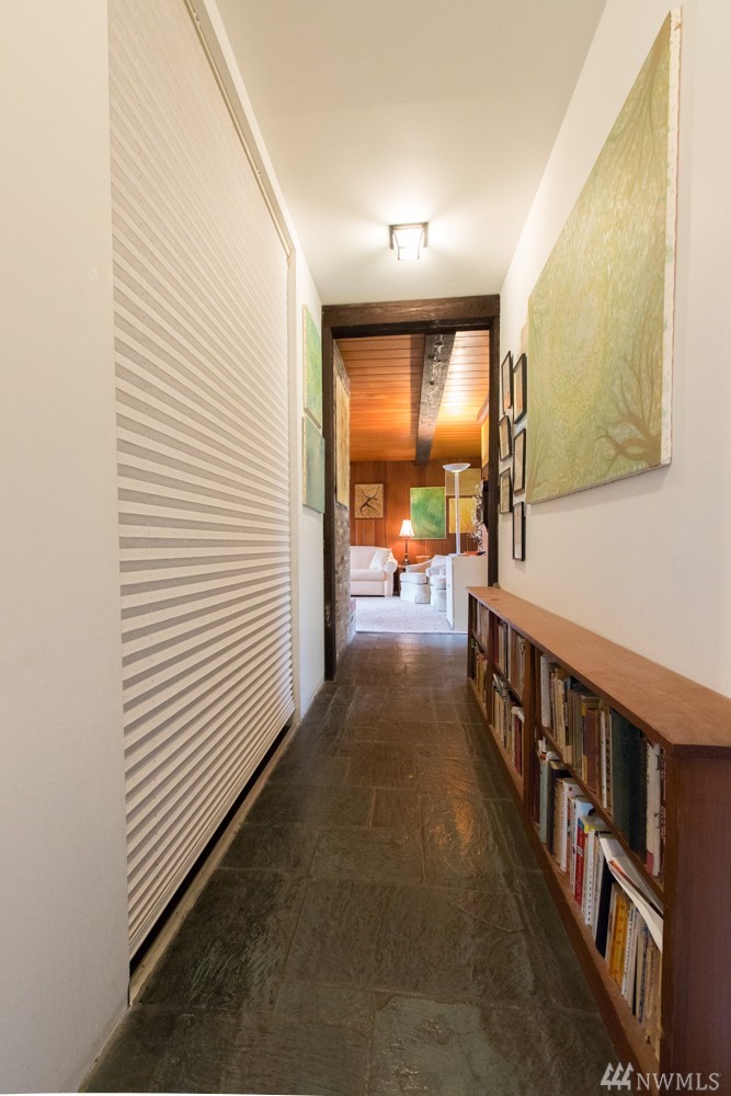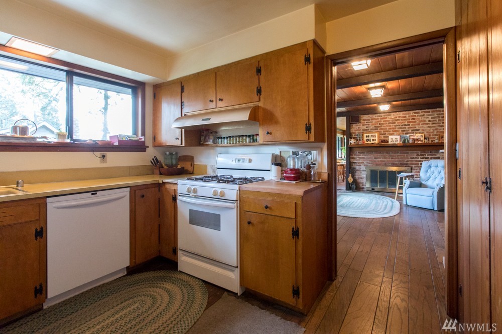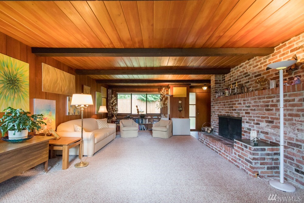 Charming 1956 home on large lot. A fireplace and slate entryway greets you in this midcentury home with original beamed ceilings and pine paneled walls. Sunny spacious living room for entertaining. Enjoy fireside meals in the dining room. Master w/ private bath & walk-in closet. Additional bedroom & bath on main floor. Lower level artist/guest suite with 2nd kitchen and ¾ bath. Attached 2 car garage. Plenty of additional guest parking. Walk your SUP or kayak down the street & launch in Lake WA.