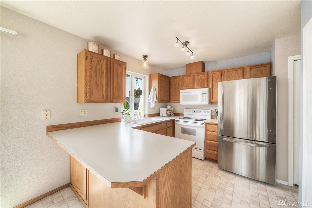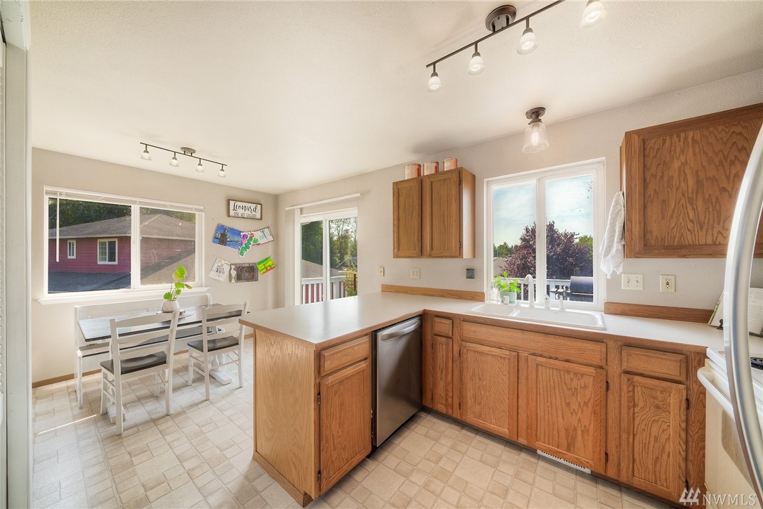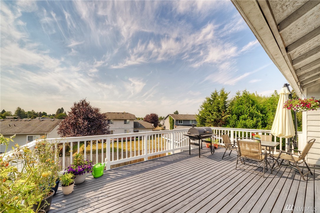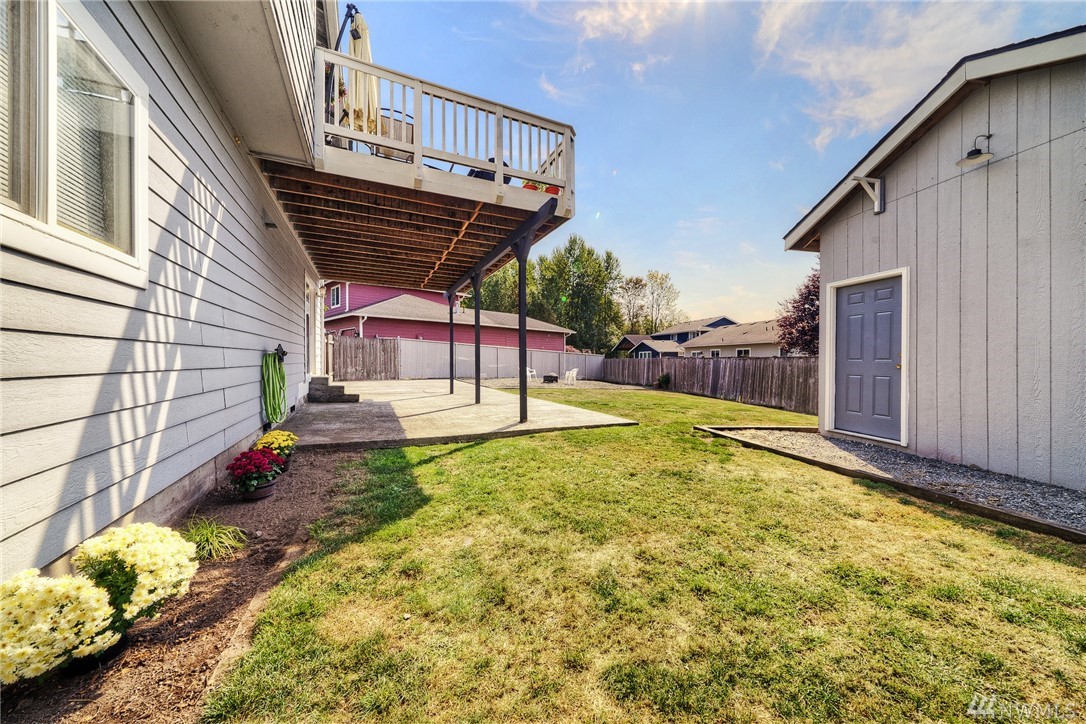 Classic hometown vibes at this central Buckley GEM! 3bed/2.25bath home w/ generous outdoor living. Updated bathrooms, fixtures & millwork offer a fresh appeal. Bright main living/kitchen w SS app. & slider to entertainer's deck. Ensuite Master bathroom. Lower-level Rec Room w/ adjoining utility & den, perfect for a home(school) office. Oversized fenced backyard w/ extra-large shed, covered patio, storage & RV Parking. Desirable cul-de-sac location w/ just a short walk to bustling downtown parks!
