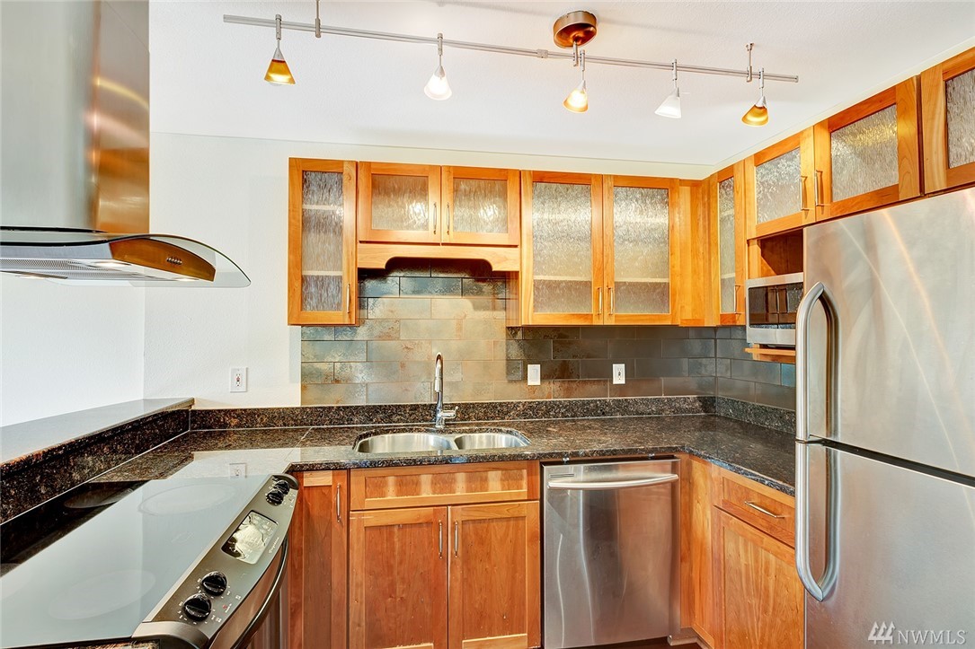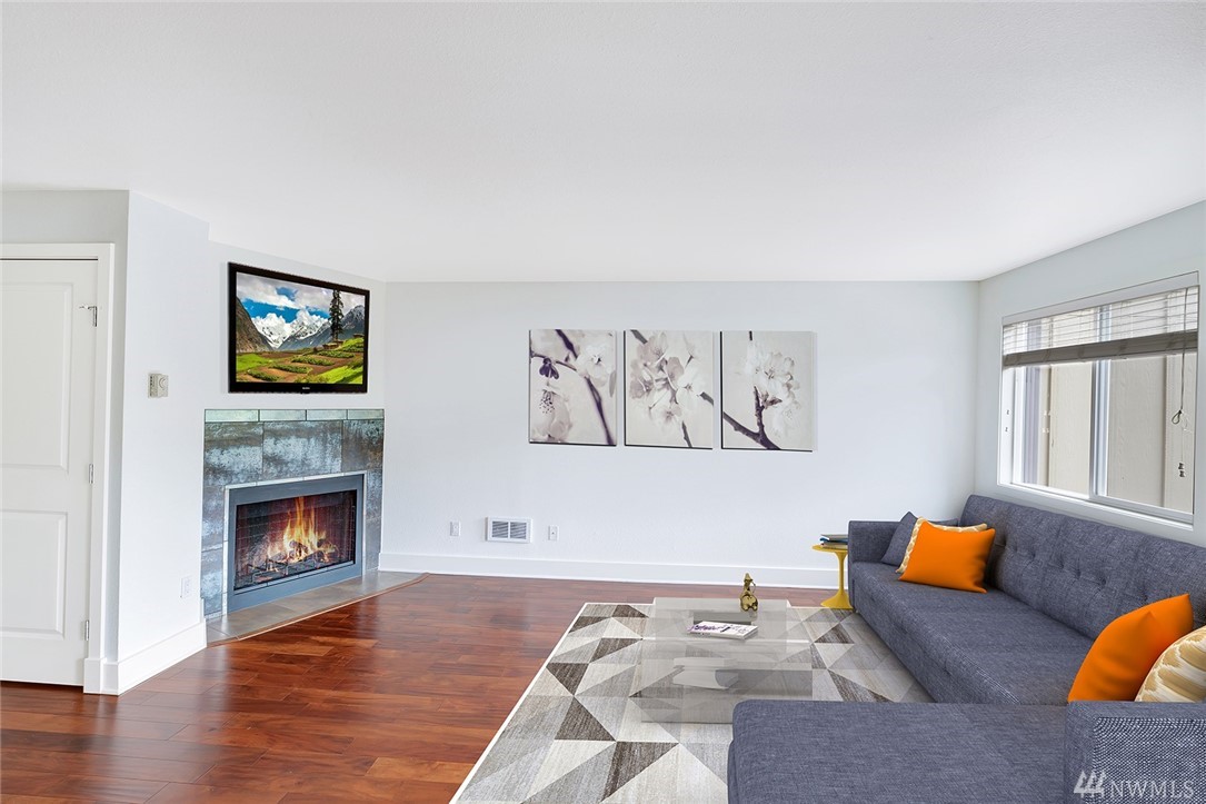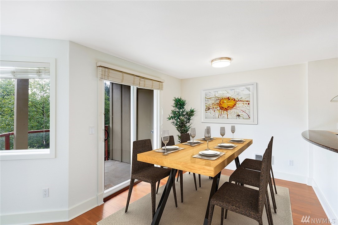 Unique one level,end unit condo in quietly located.Desirable open layout offers great room with fireplace &dining that opens to covered deck to enjoy sunshine.Modern kitchen w/stainless appliances,granite counters.Perfectly positioned on the main level.no stairs & just steps to Cross Kirkland Corridor for biking/walking.New wood floor and tile(2019)& washer/dryer included! Easy commute to downtown Bellevue, Kirkland & freeways.Covered parking.Great for 1st home buyer .