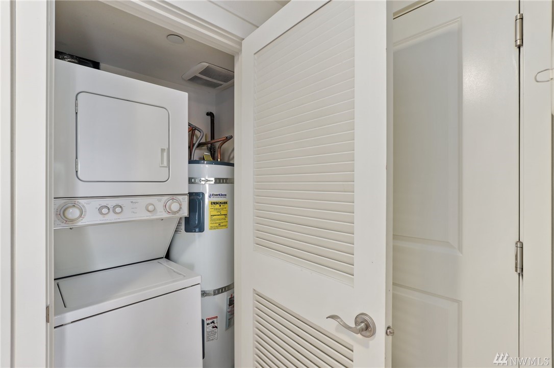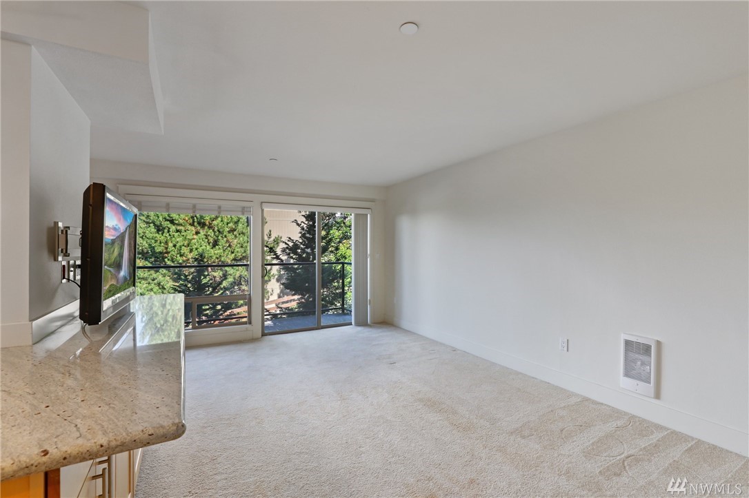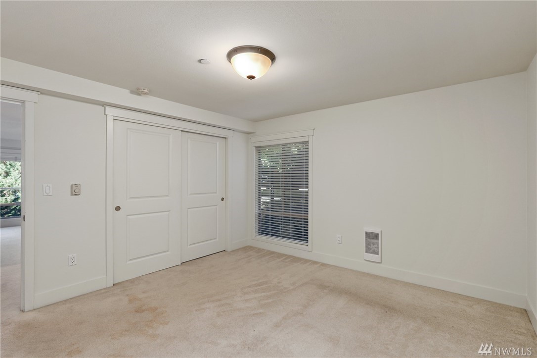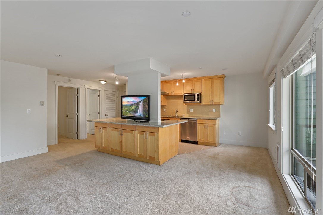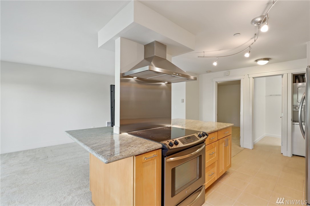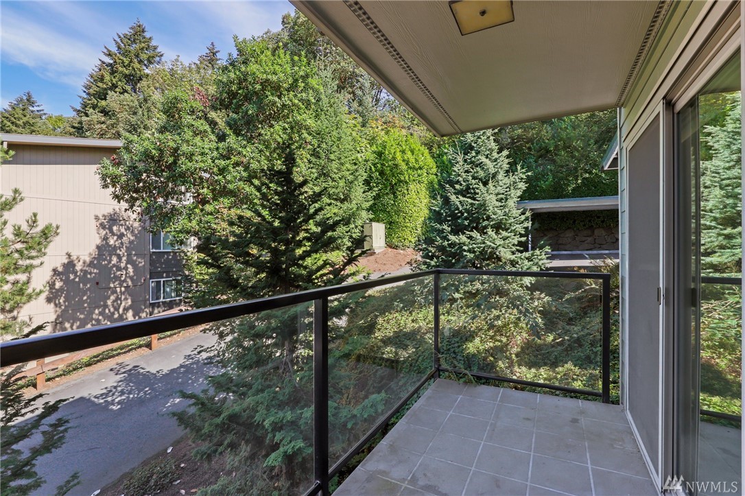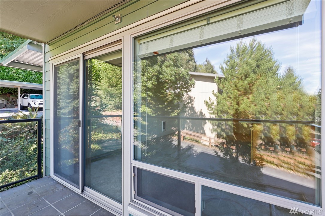 Quiet, end-unit in secure building w/private patio facing north & peek-a-boo Lake WA views. Home features open living / dining and fantastic designer kitchen w/large island, slab granite counters, maple cabinets & SS appliances. Ridgewood features a sparkling outdoor pool w/BBQ area, clubhouse, kitchen & meeting area. In-unit W/D. No stairs. Designated covered parking space close to entrance. Pet Friendly. NO RENTAL CAP. Prime location ; north-end. Vacant unit – easy to show!