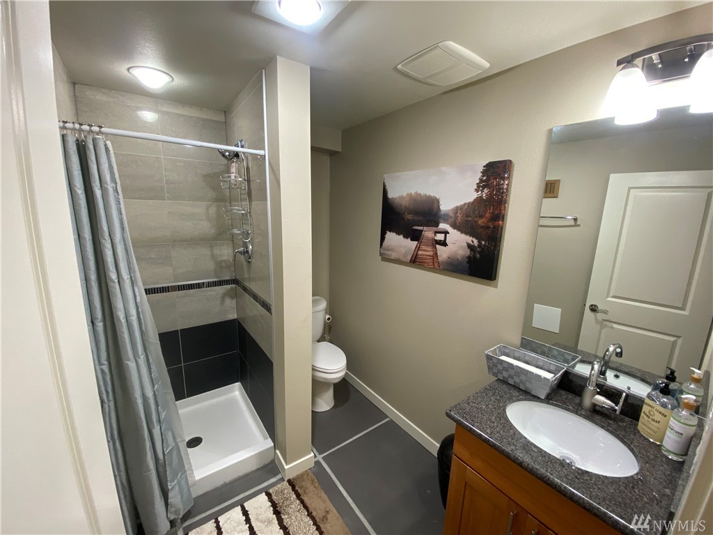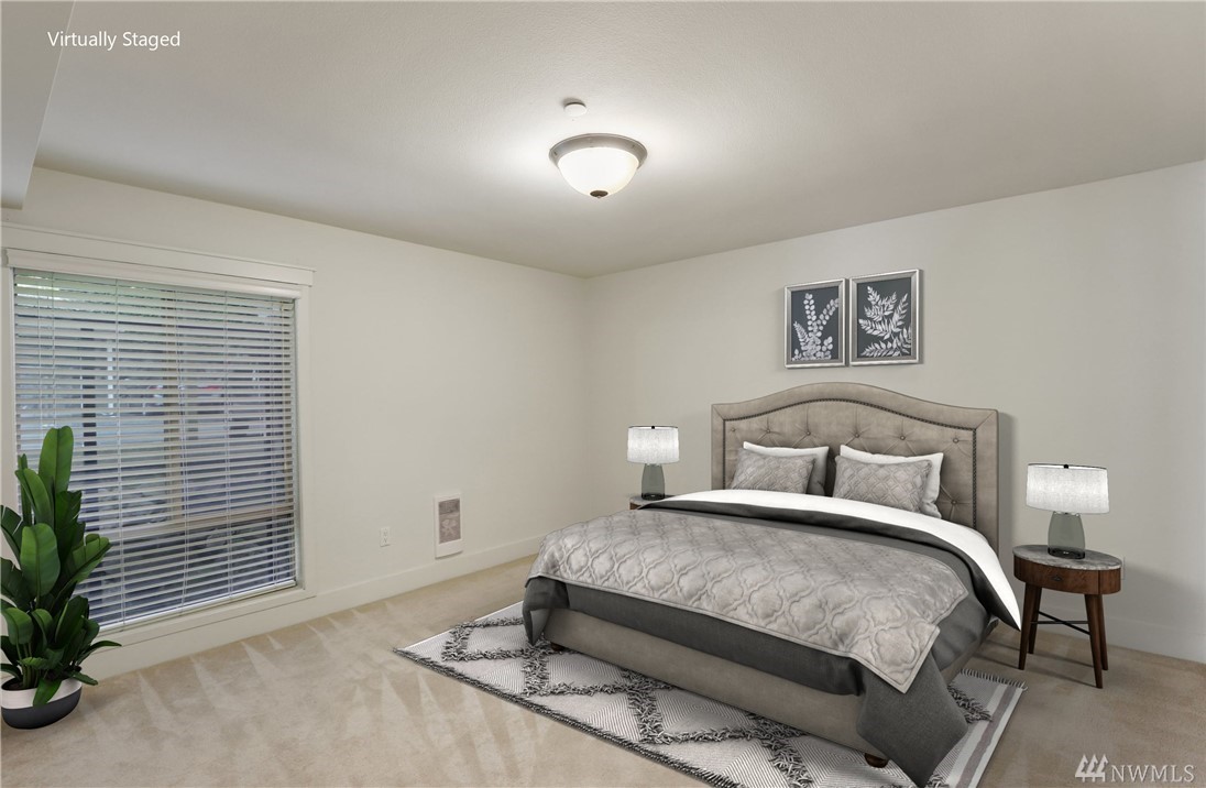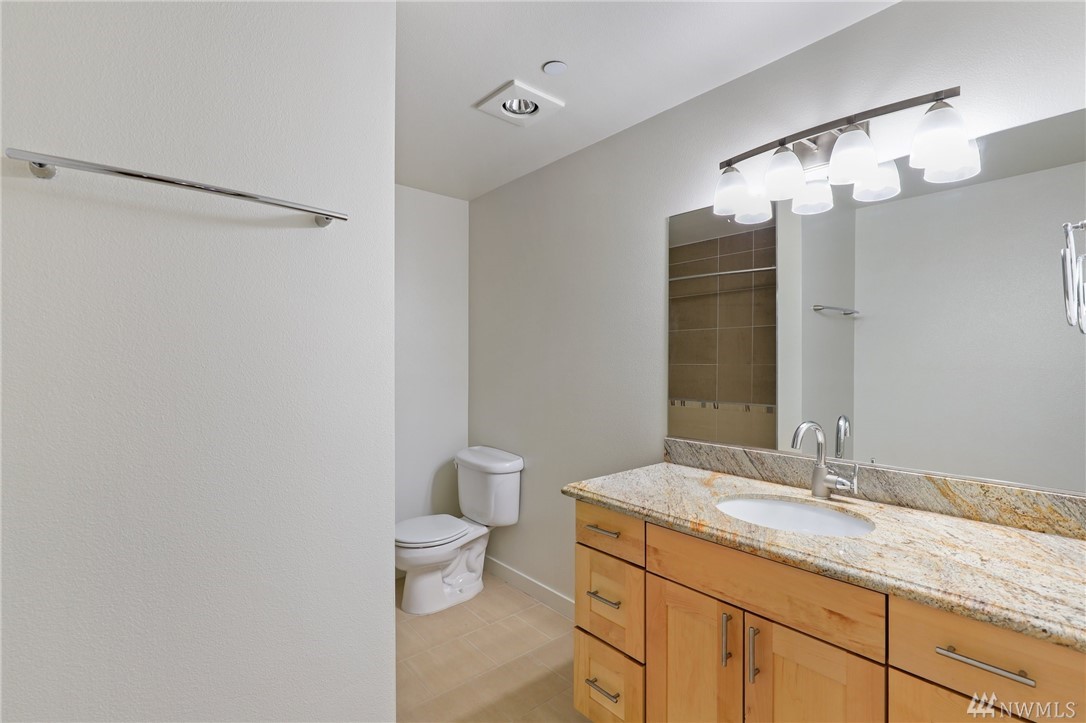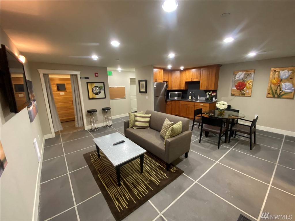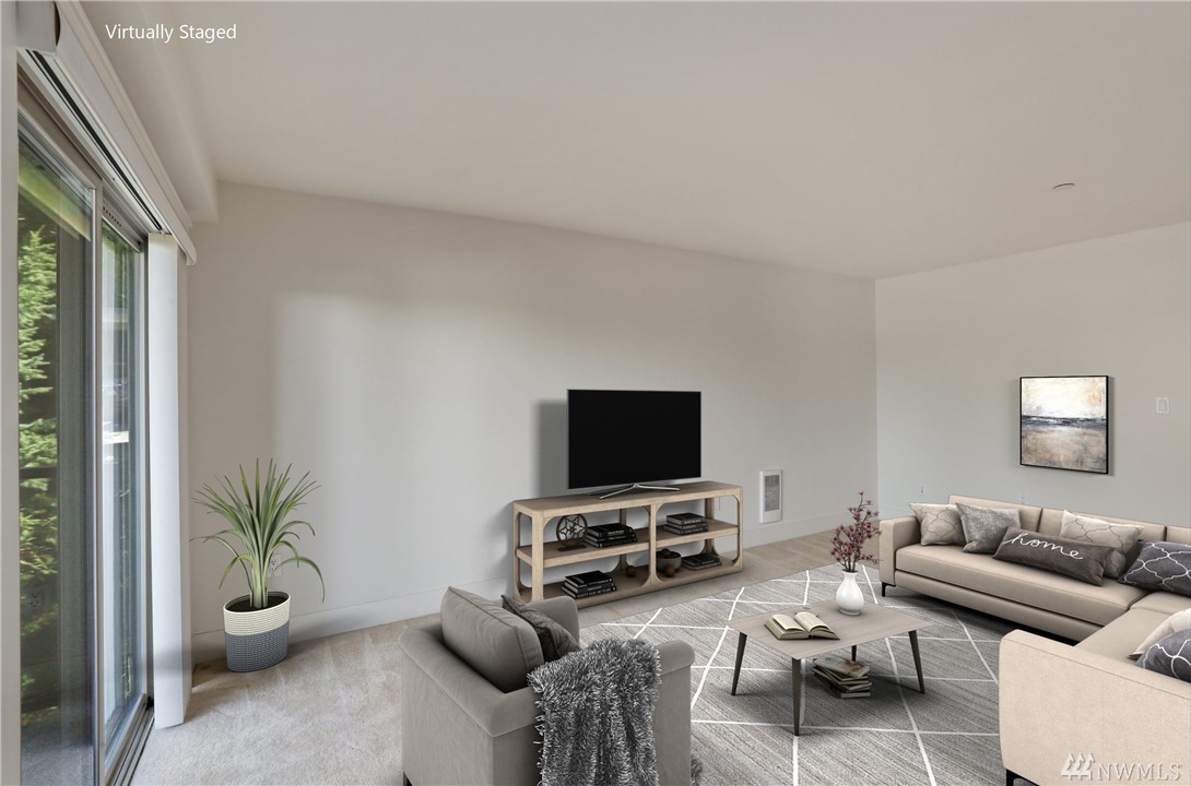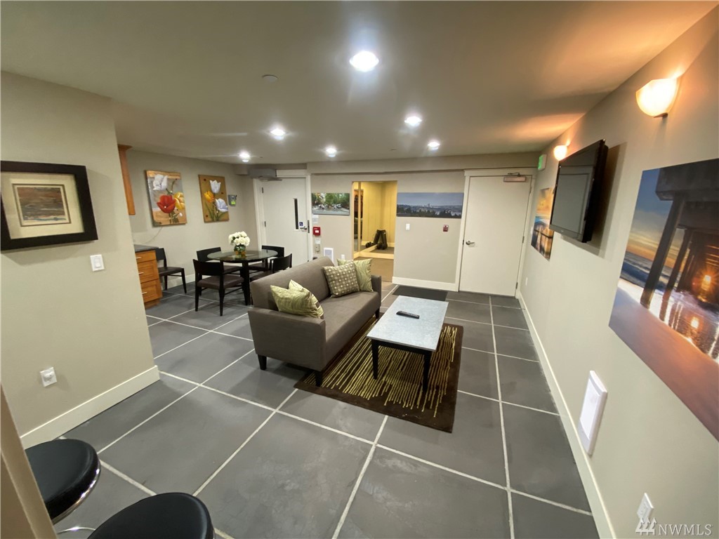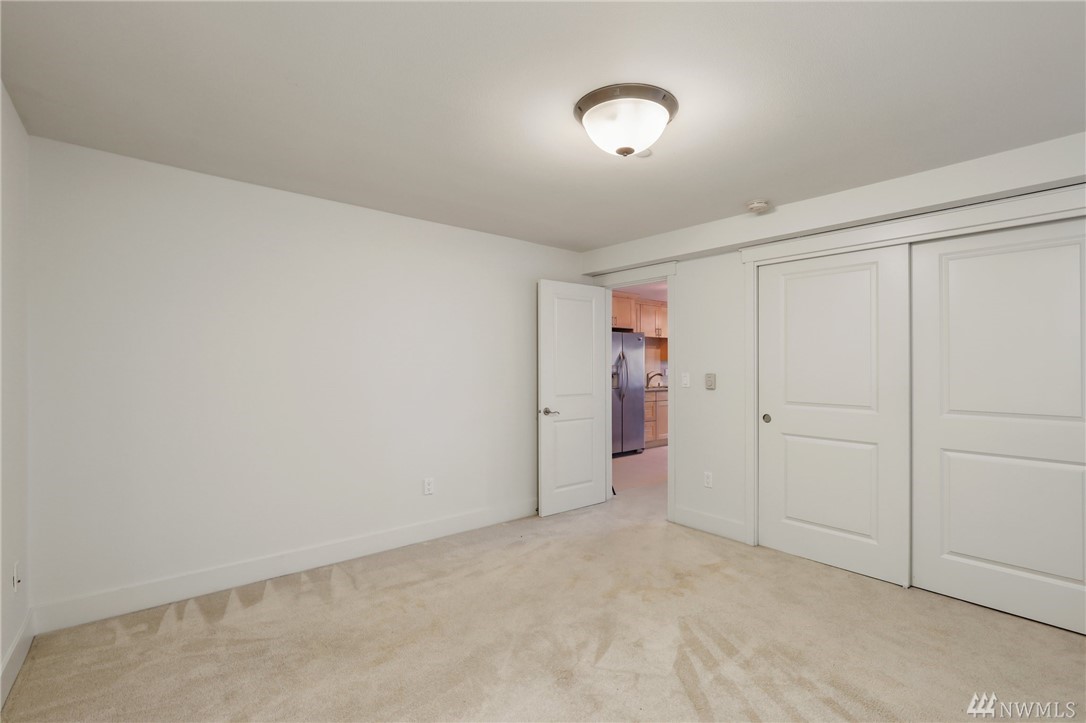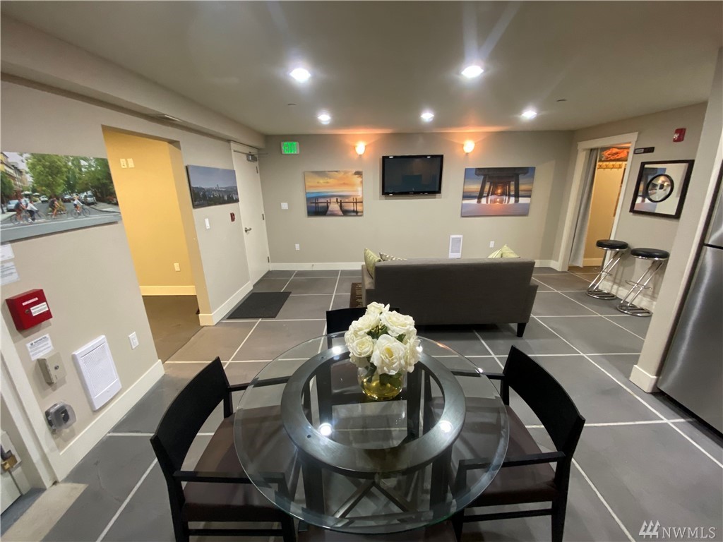 Quiet, end-unit in secure building w/private patio facing north & peek-a-boo Lake WA views. Home features open living / dining and fantastic designer kitchen w/large island, slab granite counters, maple cabinets & SS appliances. Ridgewood features a sparkling outdoor pool w/BBQ area, clubhouse, kitchen & meeting area. In-unit W/D. No stairs. Designated covered parking space close to entrance. Pet Friendly. NO RENTAL CAP. Prime location ; north-end. Vacant unit – easy to show!
