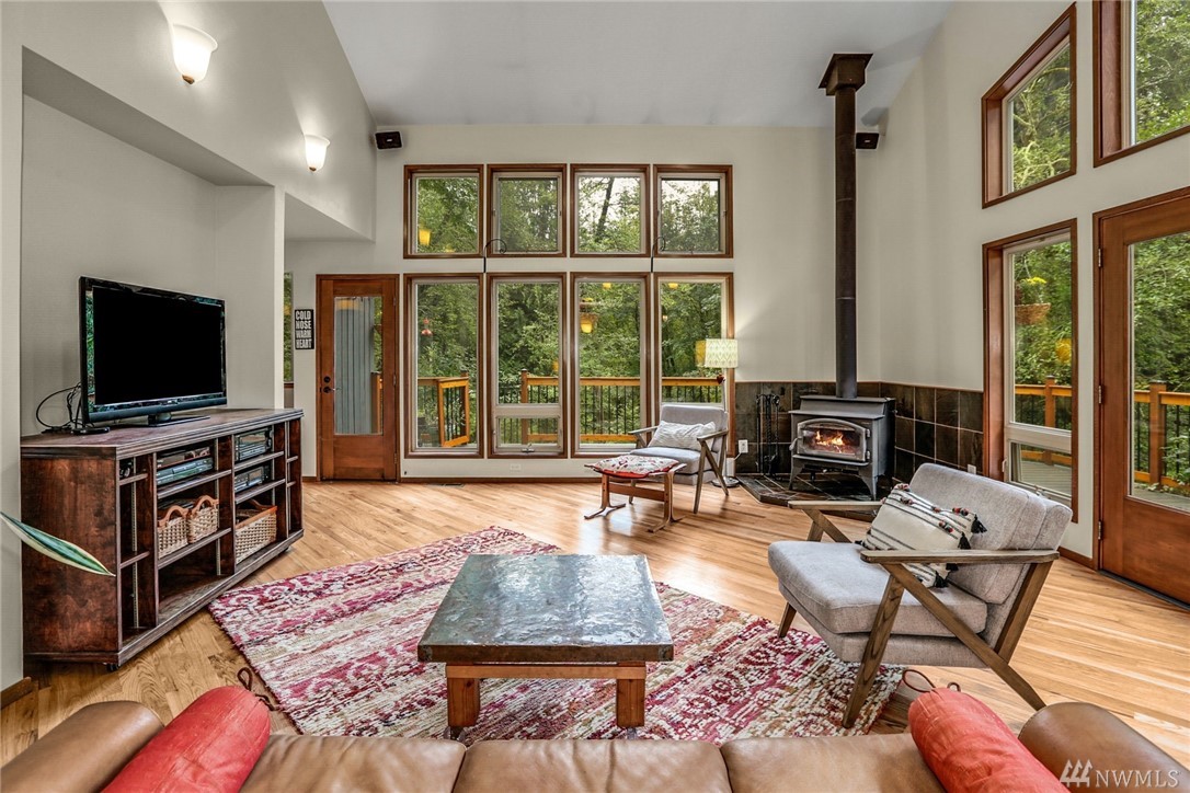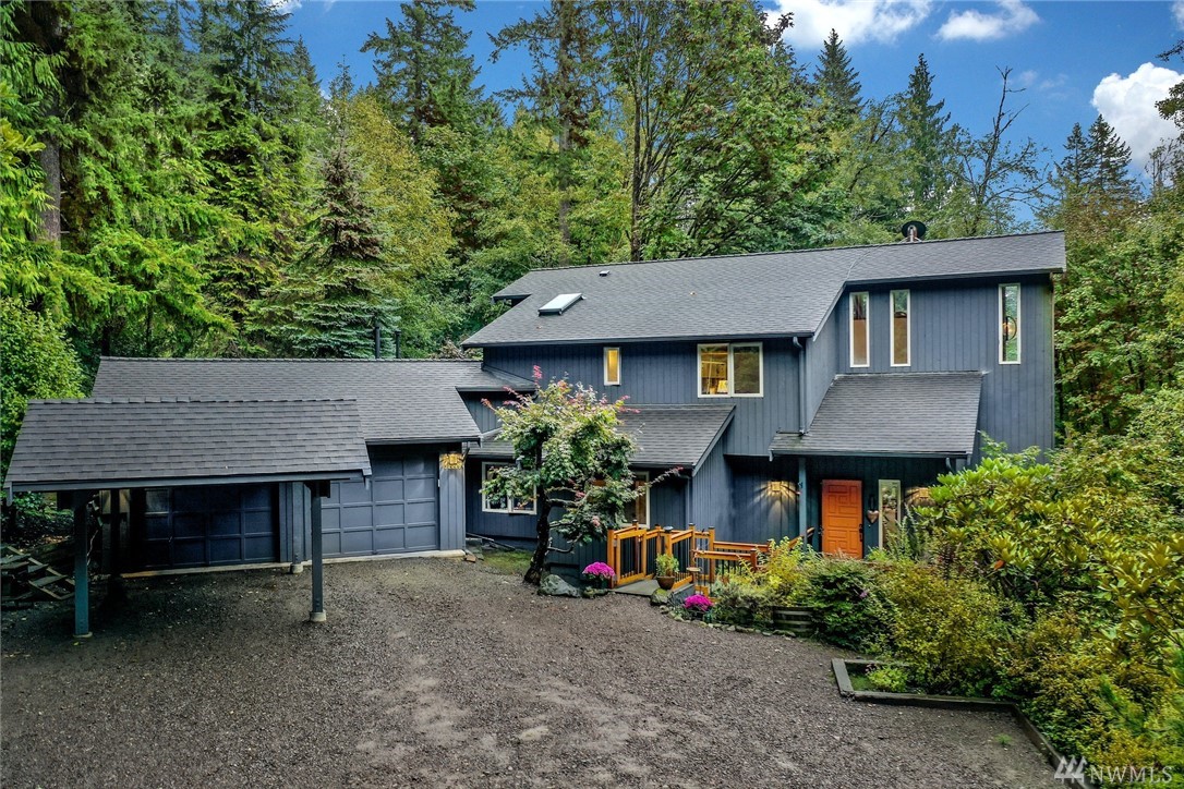 No curtains needed here--privacy galore on 2.25 acres! Stunning hardwoods were just refinished. Vaulted ceilings and a wood stove that makes you want to wear shorts in winter. Master suite upstairs has walk-in closet, 2-room bath w/jetted tub, dressing room and office (could be 4th bedroom). Basement has a full bar that's great for entertaining. A creek with bridges and nature trails just for you. Walk to Lk Margaret. RV parking. New roof 2019, new interior/exterior paint 2020. Pre-inspected!