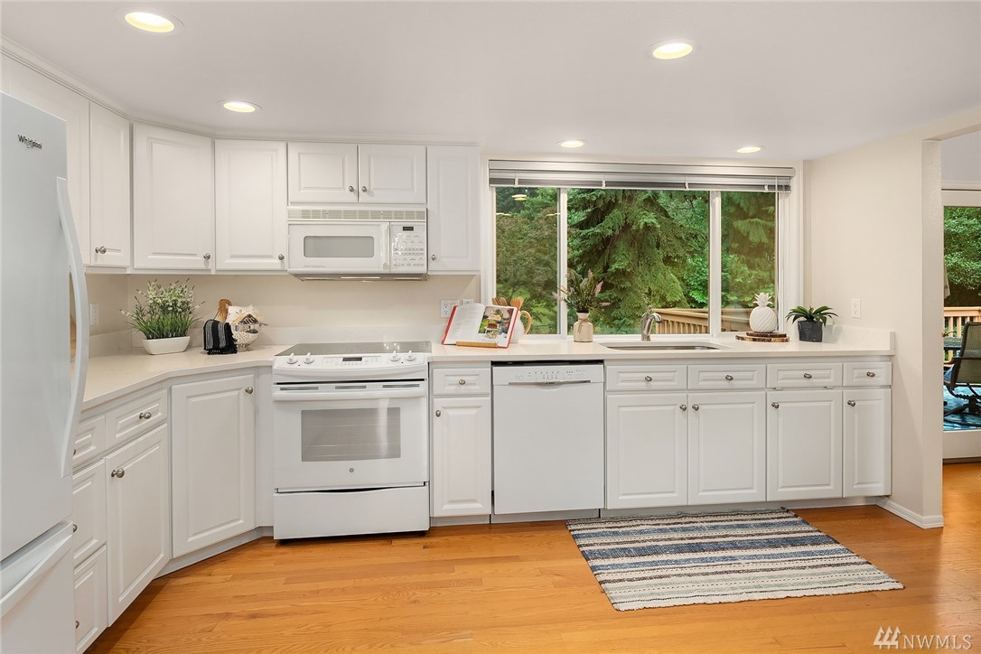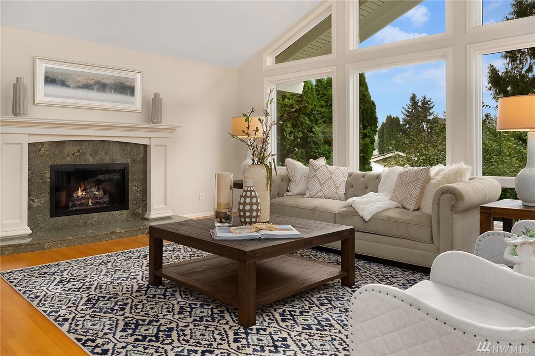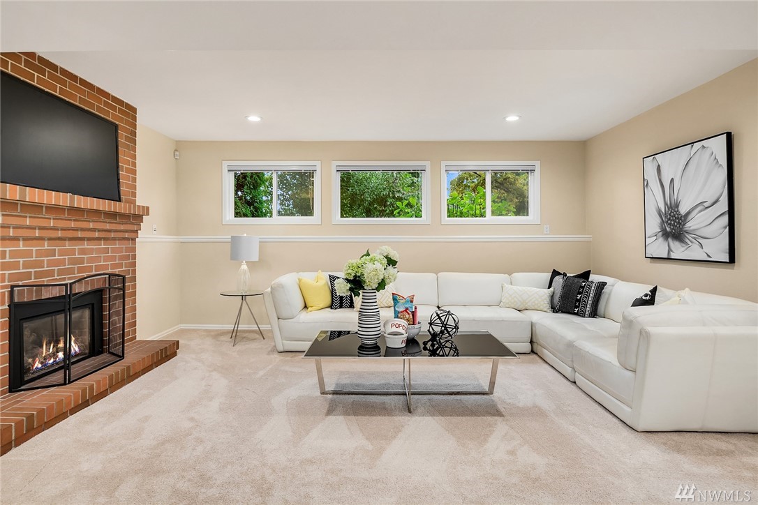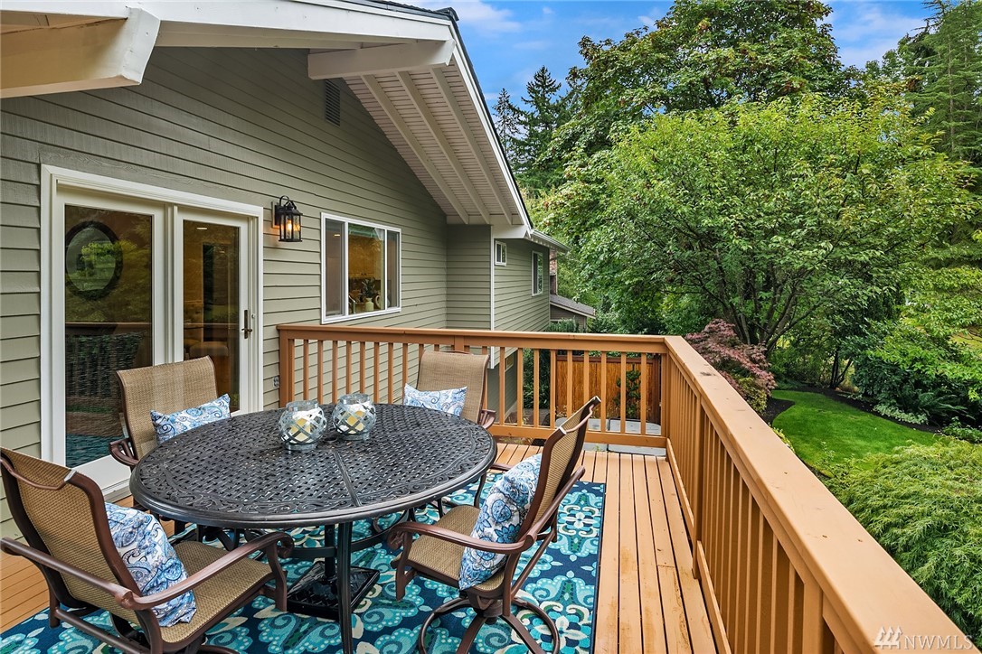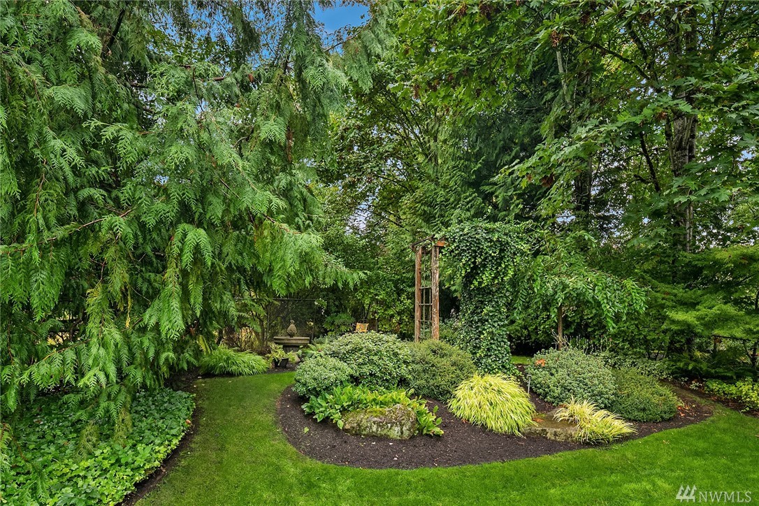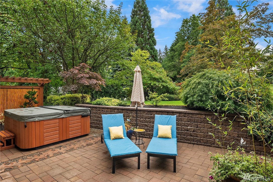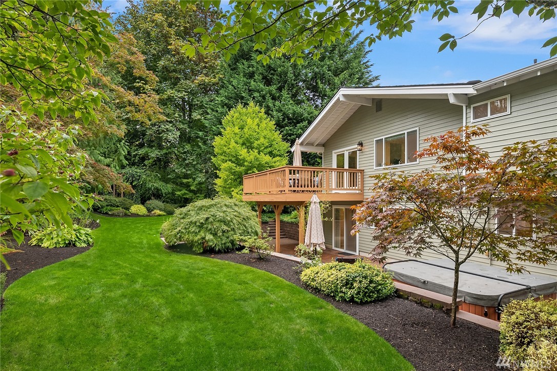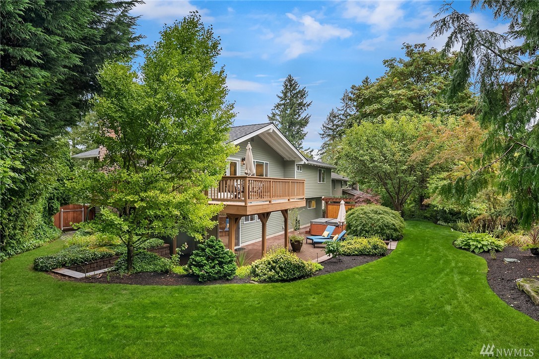 Lush landscape envelopes lovingly cared for home near Microsoft main campus. Hardwood floors, vaulted ceilings, gas FP, newer: roof, furnace, A/C, & ext. paint, new int. paint. Great yard w/deck + large patio & hot tub for privacy & relaxation. Large white/white kitchen w/quartz counters. Updated hall BA w/solar tube. Gracious master w/free standing tub & frameless shower. New carpet in rec room w/gas FP, nearby 3/4 BA w/tile floor/surround. Deep garage & storage galore. Immaculate & inviting!