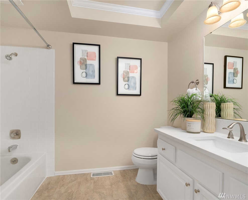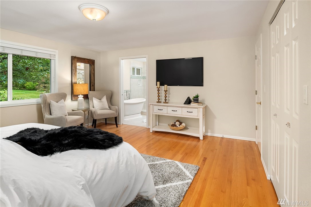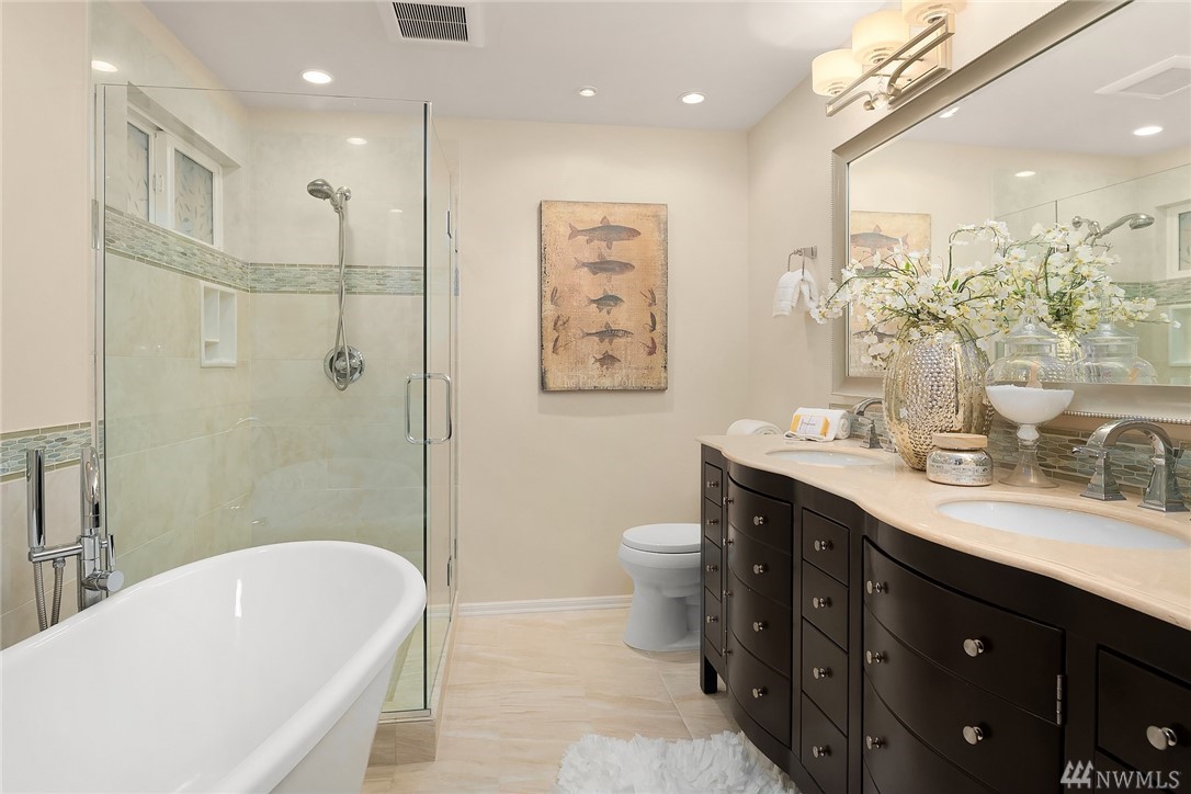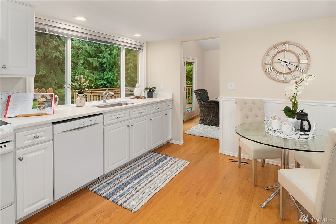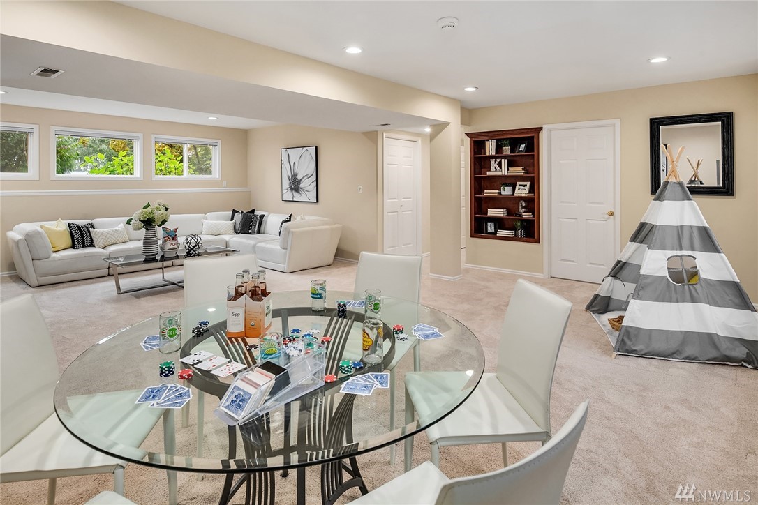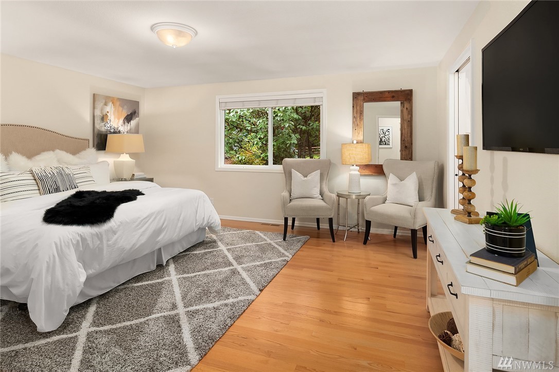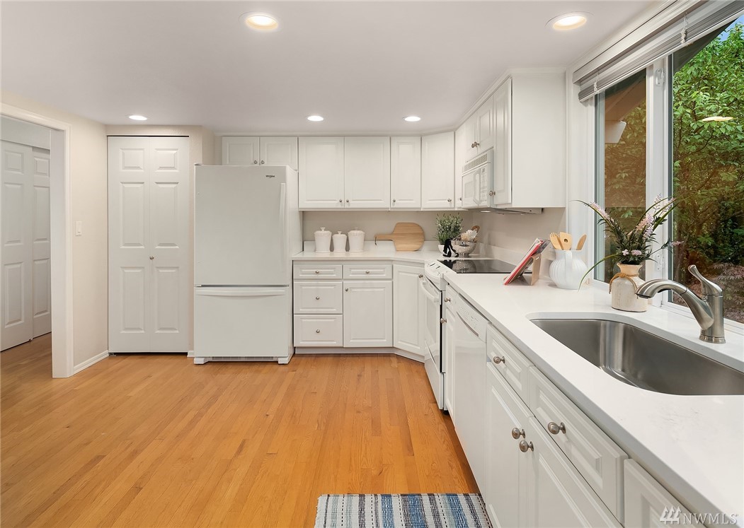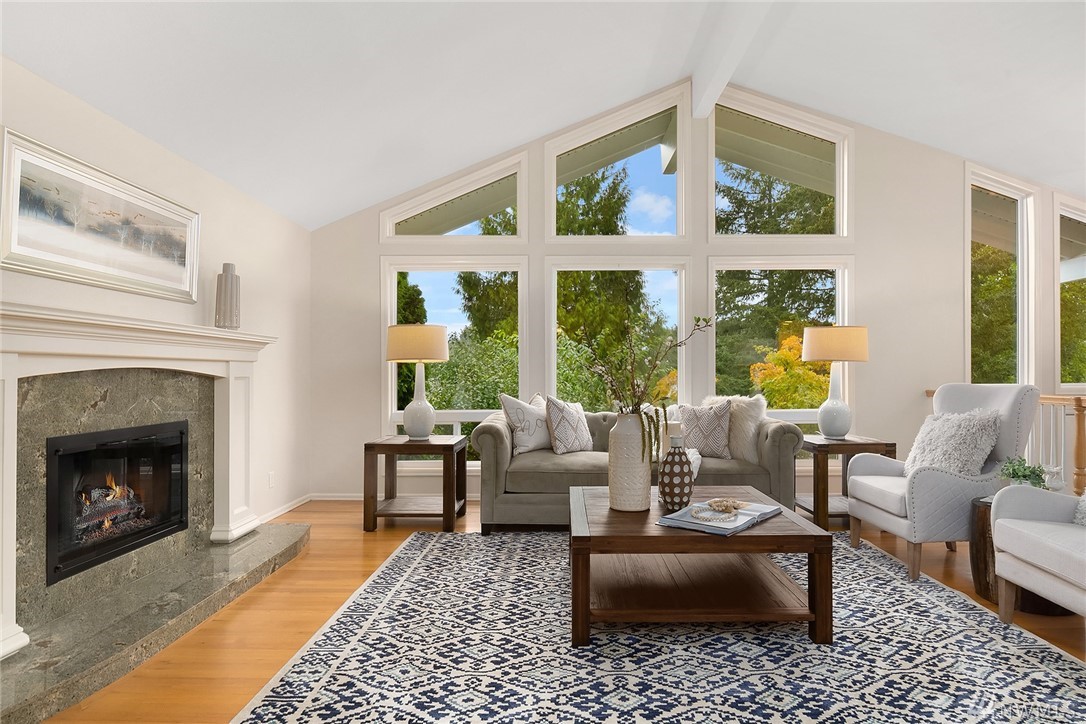 Lush landscape envelopes lovingly cared for home near Microsoft main campus. Hardwood floors, vaulted ceilings, gas FP, newer: roof, furnace, A/C, & ext. paint, new int. paint. Great yard w/deck + large patio & hot tub for privacy & relaxation. Large white/white kitchen w/quartz counters. Updated hall BA w/solar tube. Gracious master w/free standing tub & frameless shower. New carpet in rec room w/gas FP, nearby 3/4 BA w/tile floor/surround. Deep garage & storage galore. Immaculate & inviting!