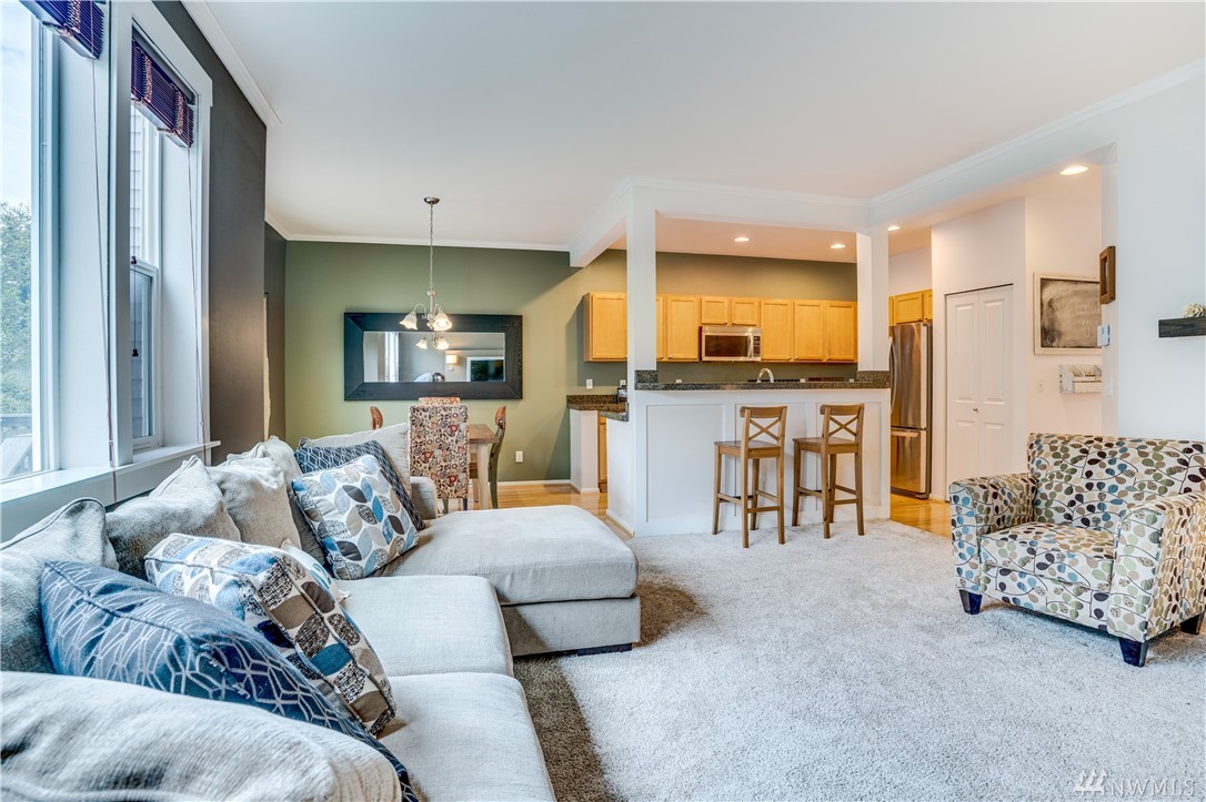 Tree-lined streets & beautiful Craftsman homes fill the N High Point community. This stand-alone home has three bedrooms on the upper floor, as well as two full bathrooms and a large laundry room. Both the spacious master with ensuite bathroom and living areas have abundant natural light. Open main floor with large island & high ceilings. Fully fenced yard & deck. Covered porch to sip coffee & meet neighbors. Attached garage for a car, projects or storage. One block from park - come for a visit.