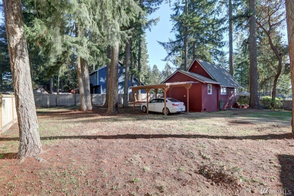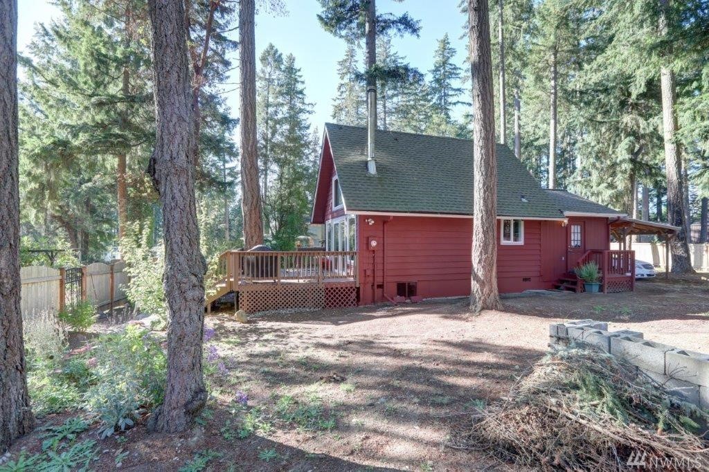 Lakebay WA, Long Branch Peninsula. Totally updated cabin 864 SQ FT 1 bedroom in loft area, bathroom with shower only. Newer kitchen with lots of cabinet space and granite countertops, updated bathroom, laminate flooring, new windows, one car carport, large deck. Completely fenced yard, storage shed. flat lot in excellent condition.