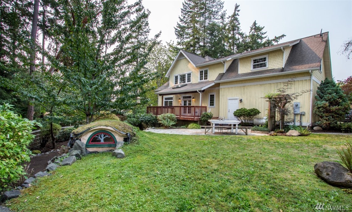 Grand, quality home in Winslow + adjacent buildable lot. You may want to keep the yard as the extra space is sublime, little bit of country in town, minutes from ferry. All offerings of a large home ready to accommodate w/ 5 bedrooms, bonus rooms, main floor bedrm w/ office & separate entrance. Brazilian Cherry hdwds, chefs kitchen, formal & relaxing spaces. Lwr level ideal for business operations or ADU. High tech cabling, wine storage, vented wrkshp, 2-car garage. Includes custom Hobbit House.