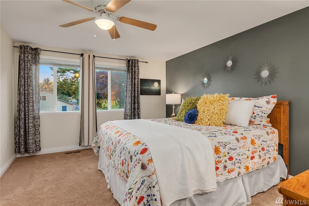 Updated, move-in ready tri-level on cul-de-sac street. Vaulted ceilings, hardwood floors, brand new deck & newer roof (2015) are just some of the many great features. You'll love the light-filled spaces & versatile lower level rec room + office. Granite counters + tons of storage in the kitchen! All bedrooms up, including remodeled owner's suite with custom glass tile shower & walk-in closet. SW-facing, fully-fenced BACK yard great for gardening and play. Front door faces North East.