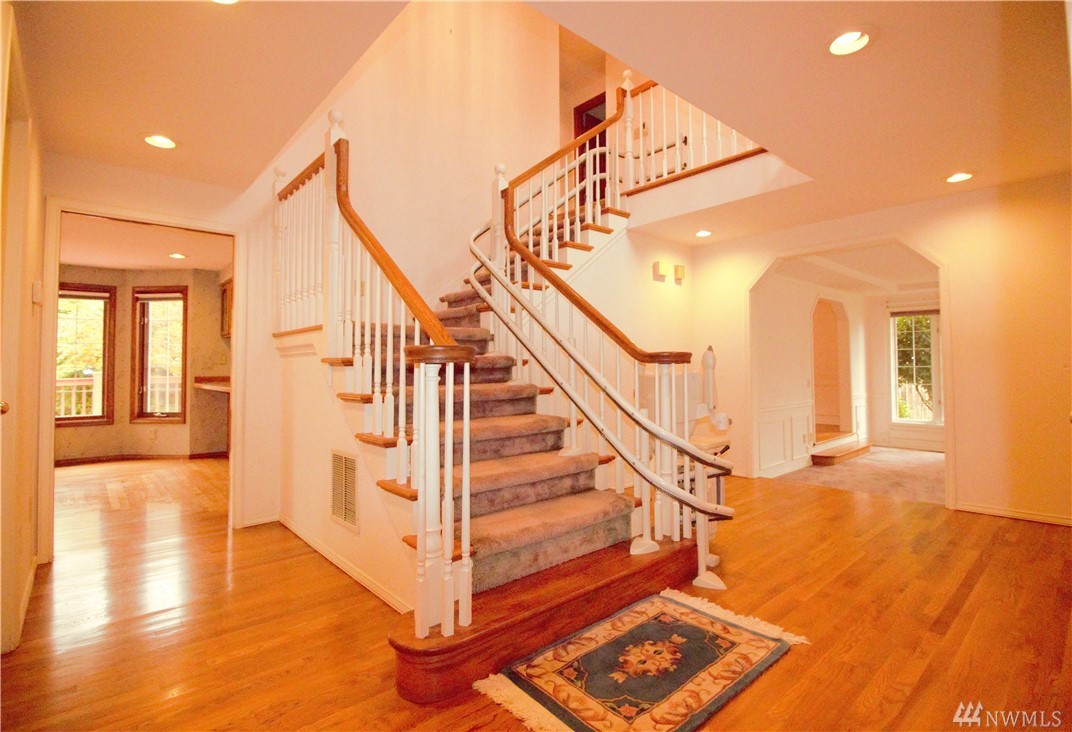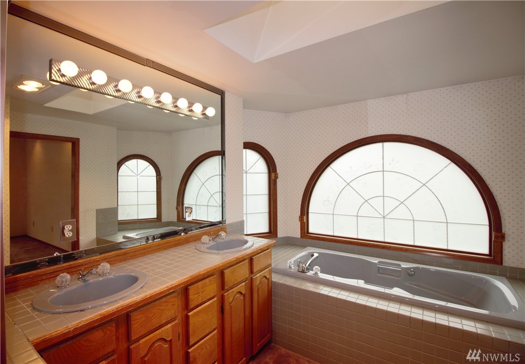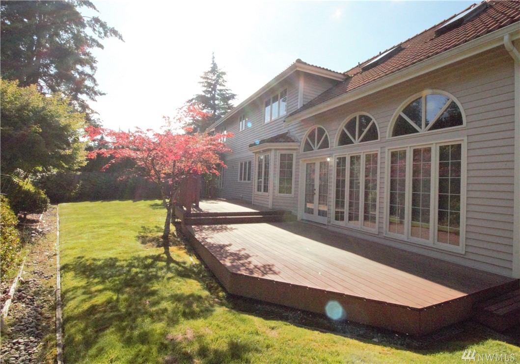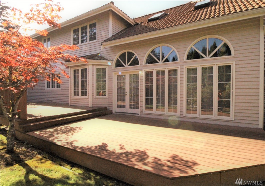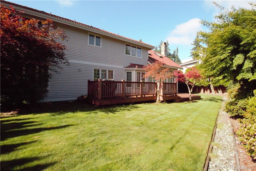 NW Contemporary, 5 bedroom, 3.5 bath home in Douglas Fir Division of Mill Creek Country Club. Double door entrance with spacious foyer. Main floor features step down living room with fireplace, formal dining room, den, step down family room with 2nd fireplace & wet bar, kitchen has center island,eating bar & nook area. the upper floor features large loft bonus room overlooking the family room, 4 bedrooms, plus Master with jetted soaking tub and walk in shower. Fenced backyard with large deck.