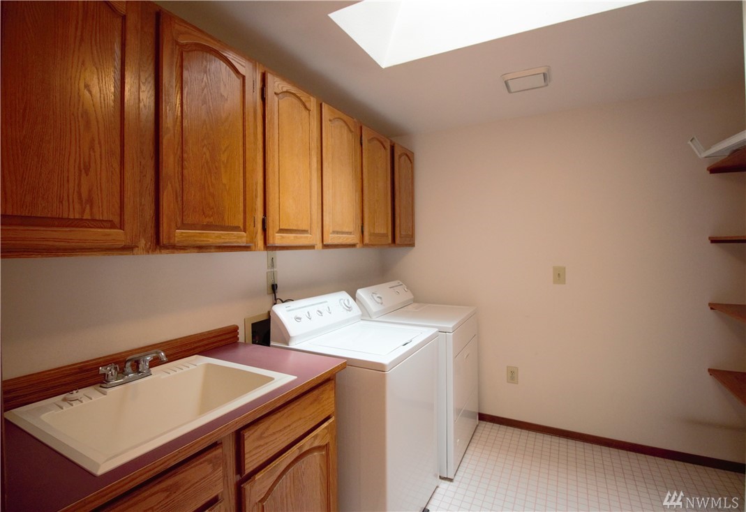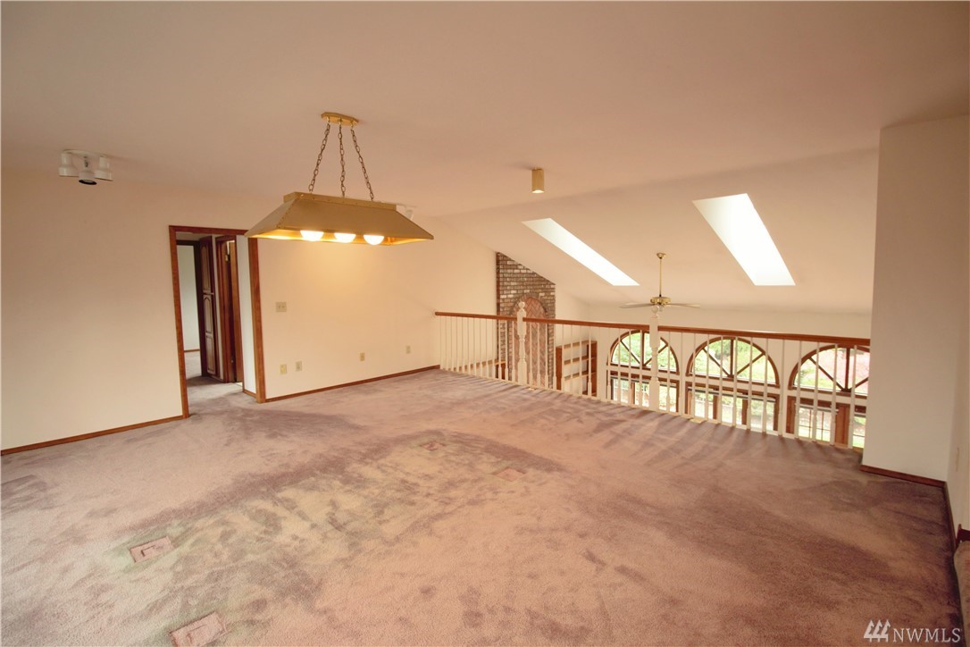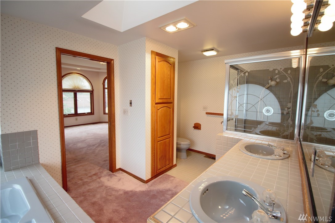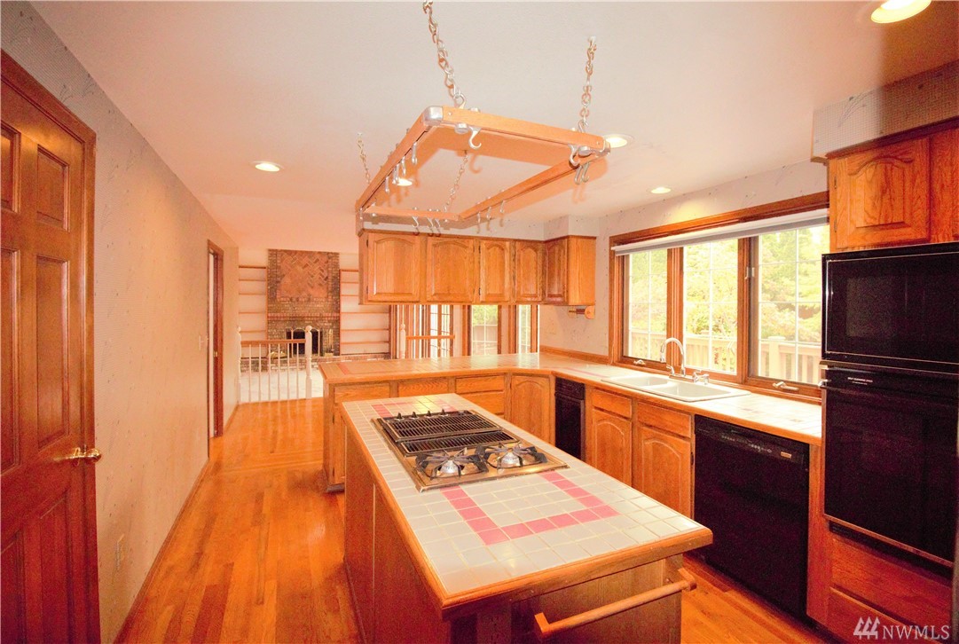 NW Contemporary, 5 bedroom, 3.5 bath home in Douglas Fir Division of Mill Creek Country Club. Double door entrance with spacious foyer. Main floor features step down living room with fireplace, formal dining room, den, step down family room with 2nd fireplace & wet bar, kitchen has center island,eating bar & nook area. the upper floor features large loft bonus room overlooking the family room, 4 bedrooms, plus Master with jetted soaking tub and walk in shower. Fenced backyard with large deck.