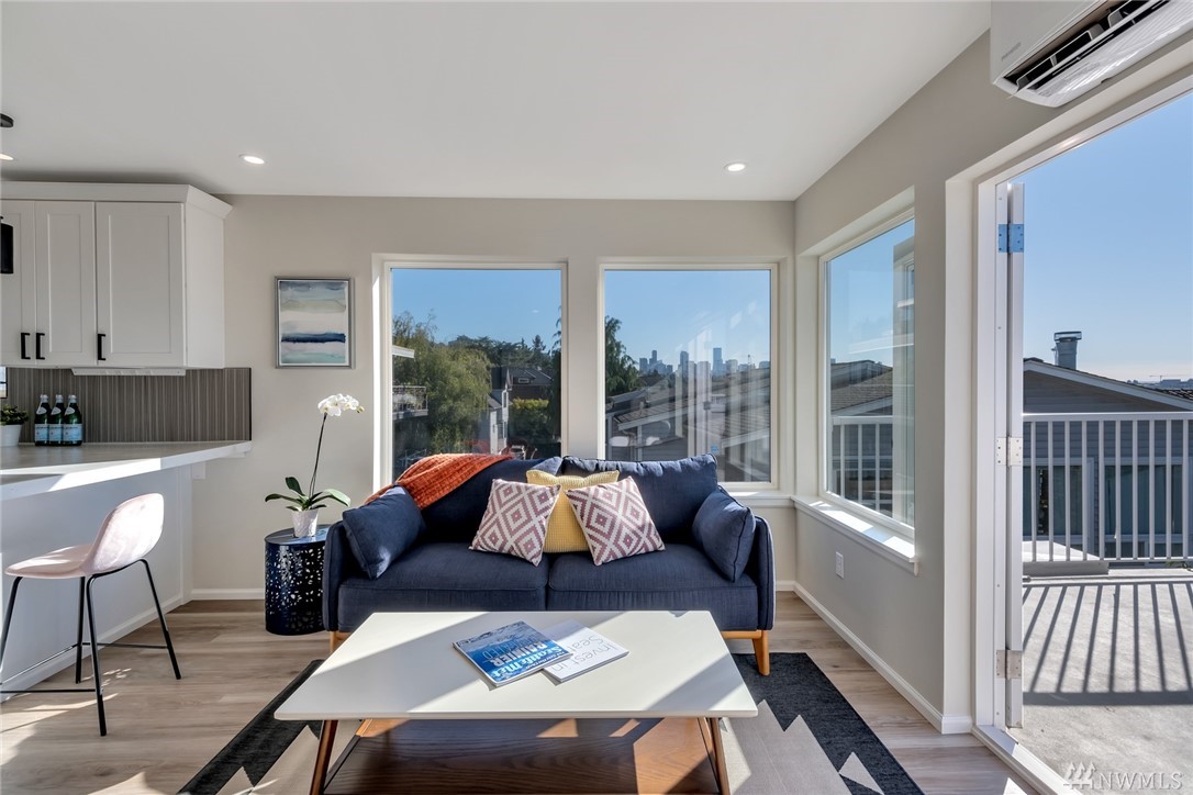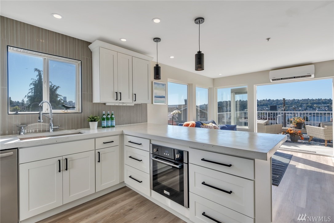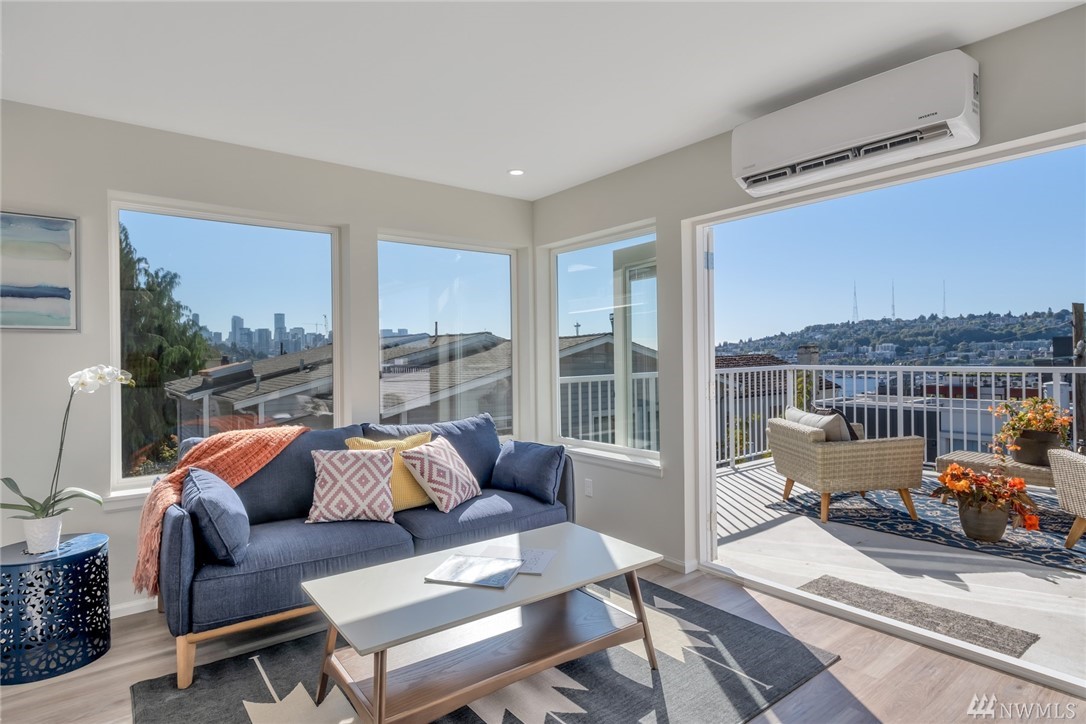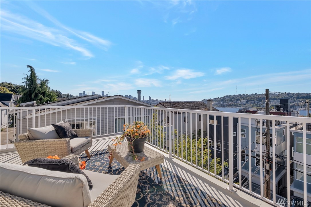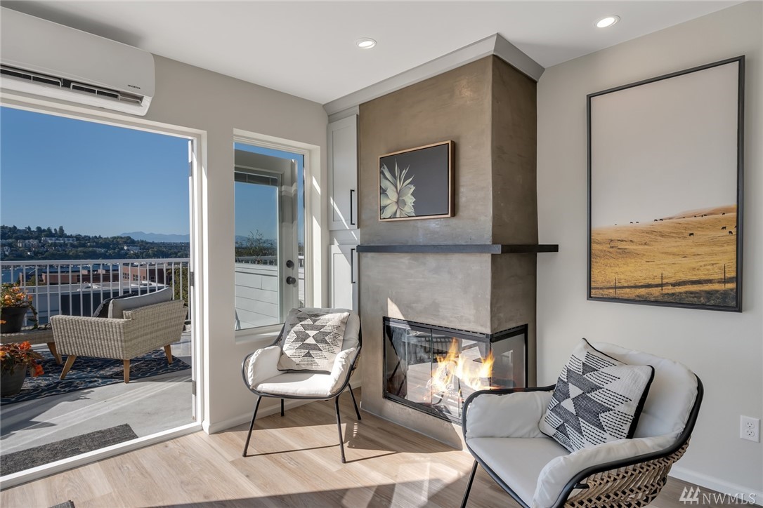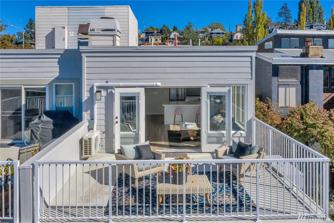 Extraordinary opportunity for Eastlake condo with zero HOA dues. Top floor unit with large private deck & unobstructed views of the city skyline, Lake Union, & Gasworks Park. This 2 bed / 2 bath home has been remodeled from top to bottom. Featuring new floors, dual AC mini split, french doors, all new kitchen and appliances, high end bath room finishes with heated floors & extensive tile work. You will love the open floor plan, indoor-out-door living, expansive views, and 2 parking spot.