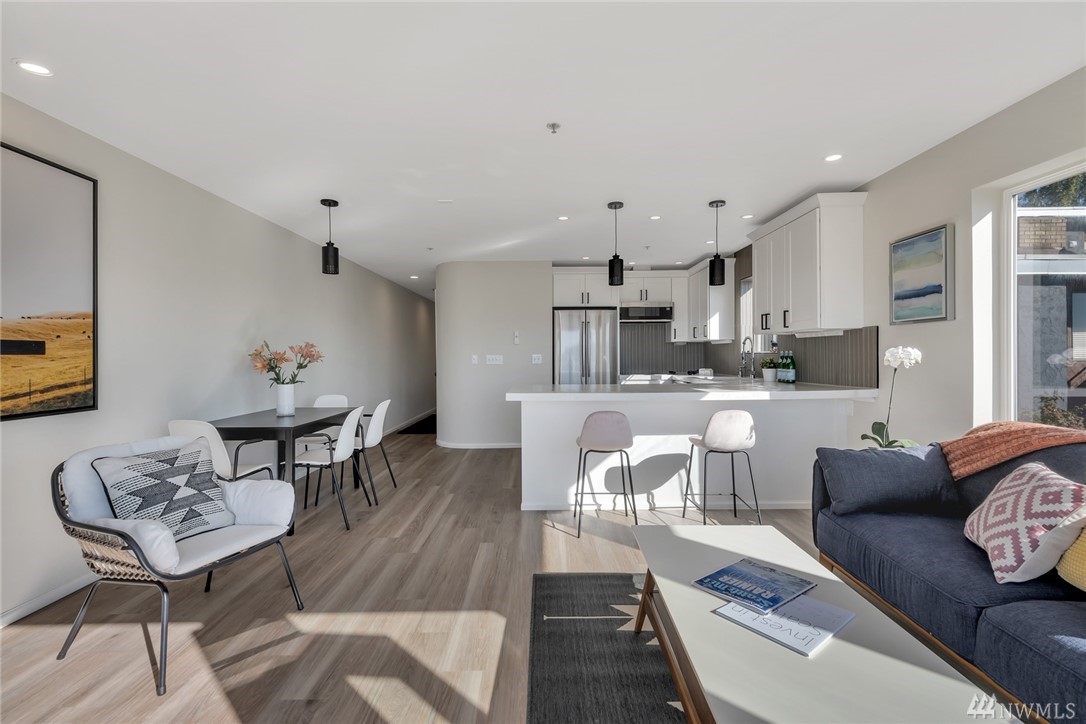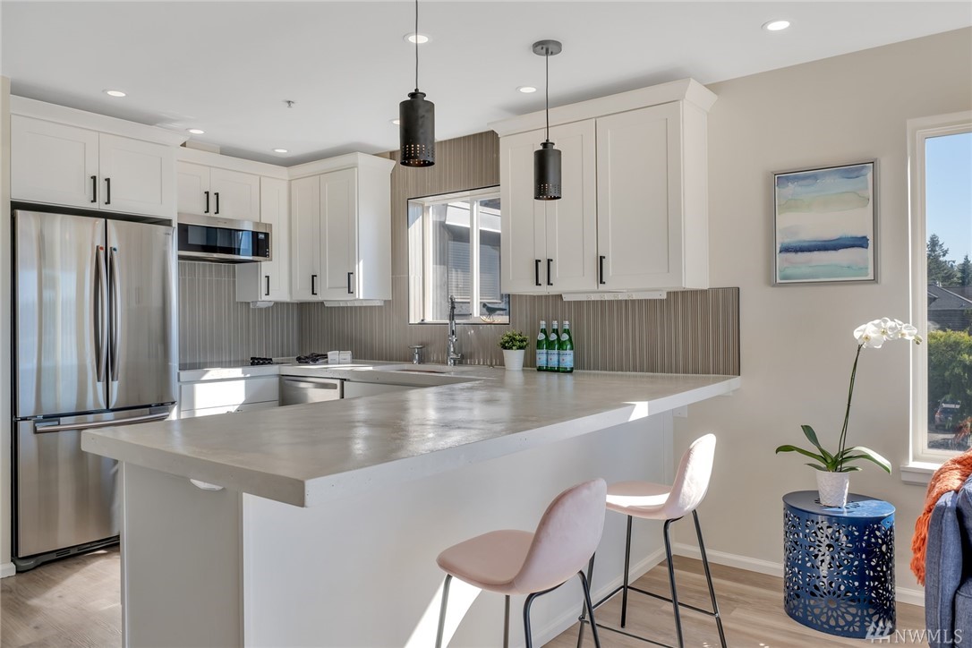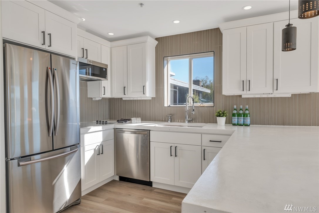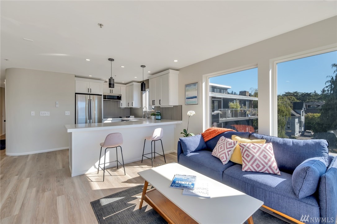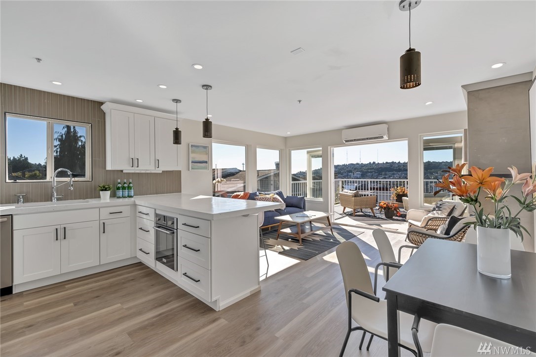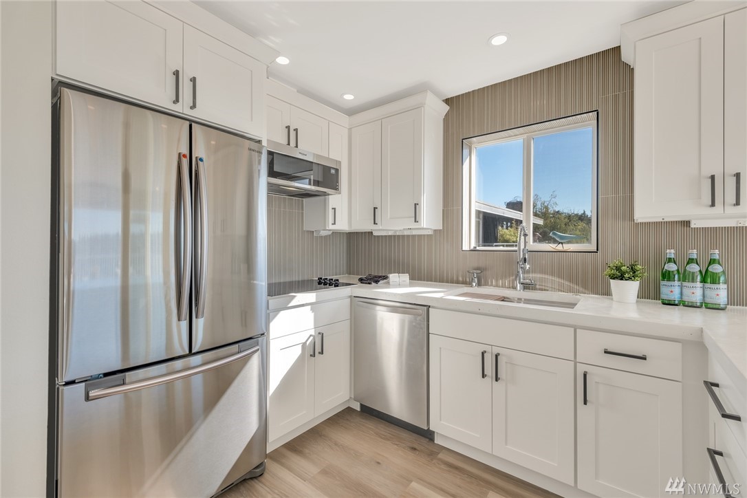 Extraordinary opportunity for Eastlake condo with zero HOA dues. Top floor unit with large private deck & unobstructed views of the city skyline, Lake Union, & Gasworks Park. This 2 bed / 2 bath home has been remodeled from top to bottom. Featuring new floors, dual AC mini split, french doors, all new kitchen and appliances, high end bath room finishes with heated floors & extensive tile work. You will love the open floor plan, indoor-out-door living, expansive views, and 2 parking spot.