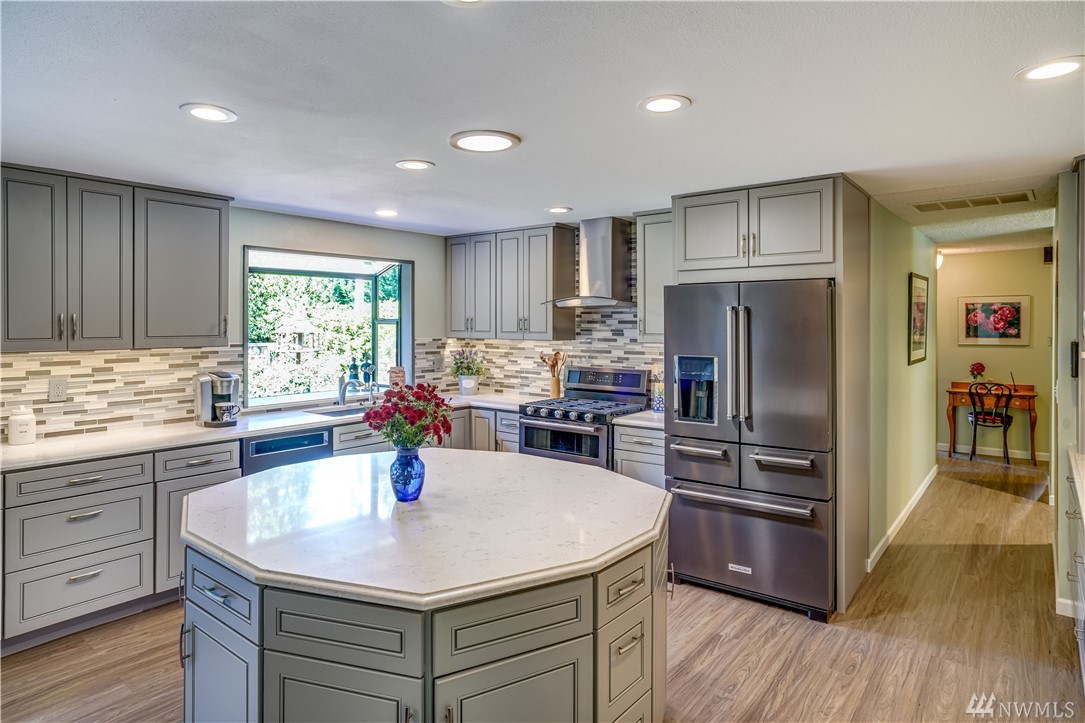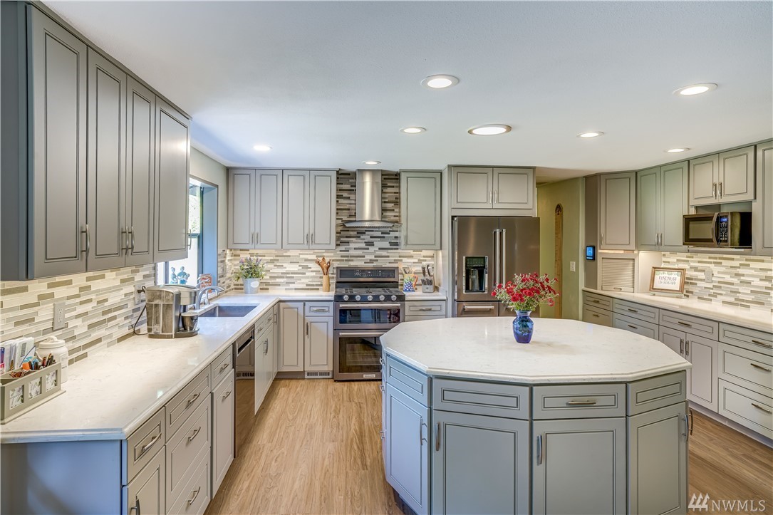 Everything you wanted! This beautifully designed home offers meticulous, mature landscaping. A perfect place to relax & watch flowers bloom & birds coming and going from your private deck. Extra spaces for everyone. Updated kitchen boasting ample storage & counter space, stainless steel appliances, granite counters, tile backsplash. Perfect for large gatherings. 2 gas fireplaces. Huge shop with office. Don't miss the tree house! Super conveniently located just minutes from Hwy 167, 18 & I 5.