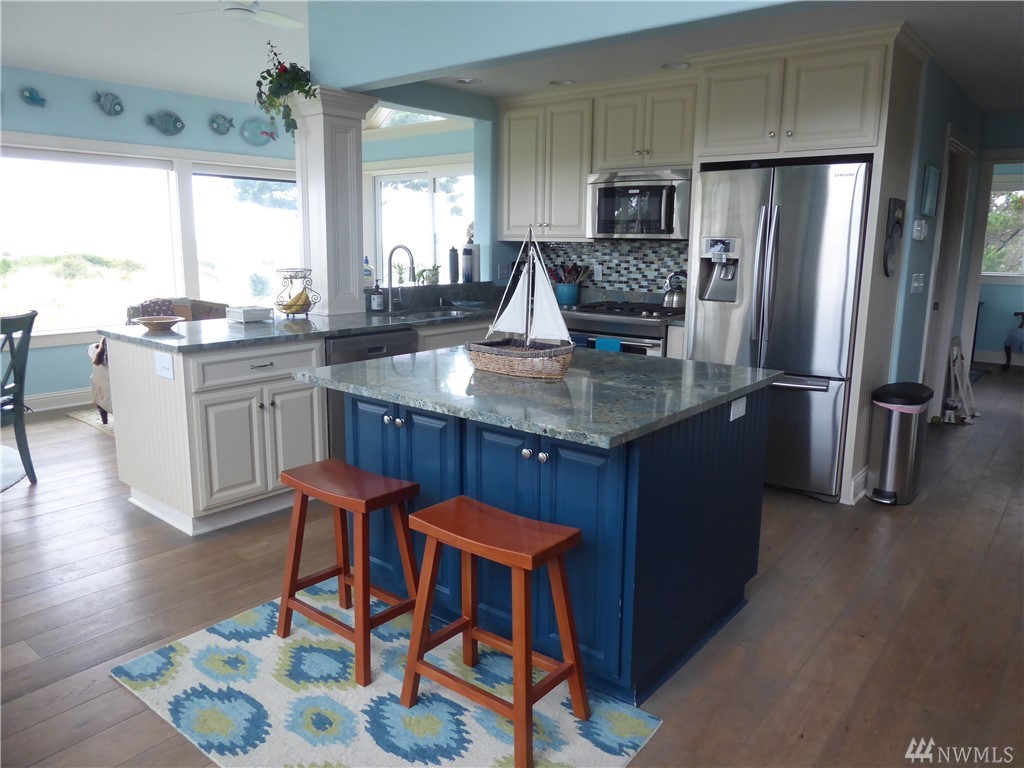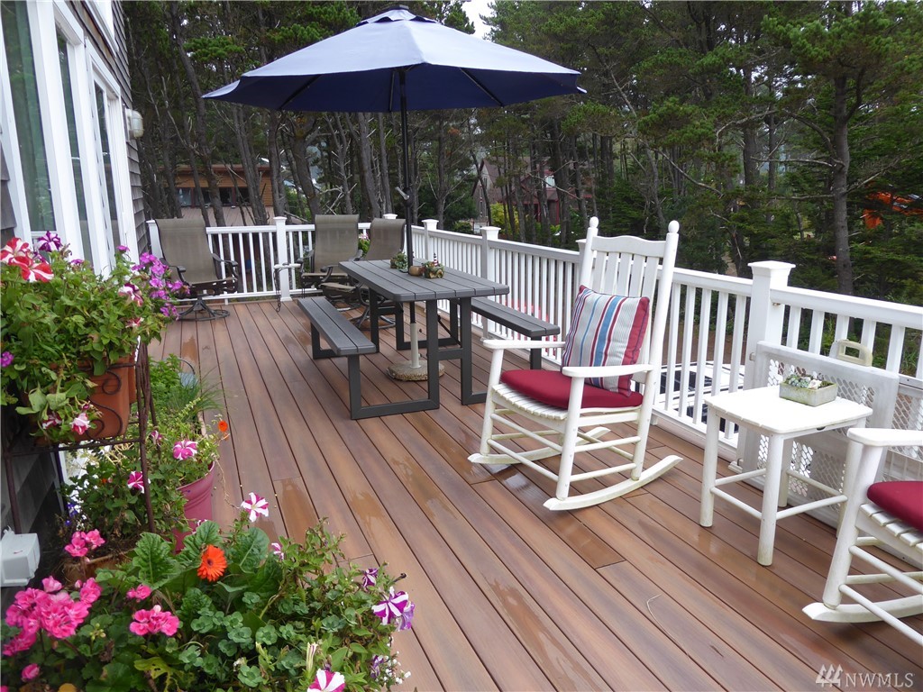 Nothing but quality in this Buell Construction remodeled home. Greatroom living w/ hardwood oil finish floors, built-in entertainment system, see thru blinds. Kitchen has amazing granite counters & pull-out cabinets. Stainless appliances, propane cookstove. Master w/lg shower, dbl sinks, ocean view! Lower level has lg rec room, 1/2 bath. 3 decks, all with 25 yr Fiberon. Outdoor speakers, hot tub, RV parking w/power & water. Low maint yard, shed. Secluded setting, WUB. Some furniture negotiable.
