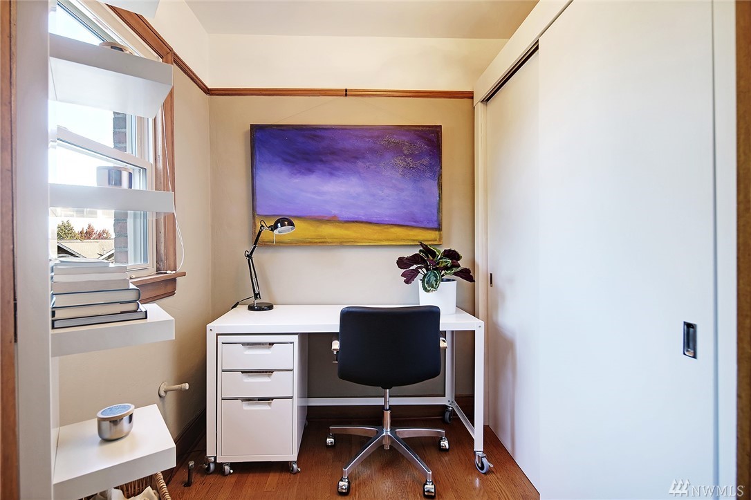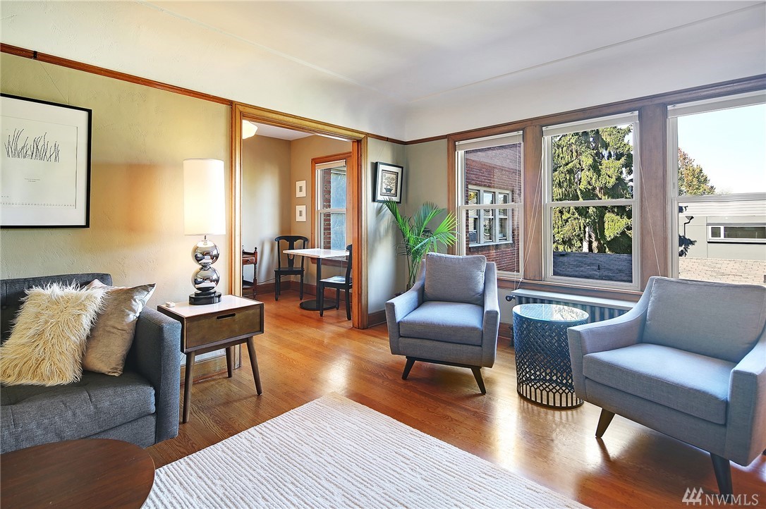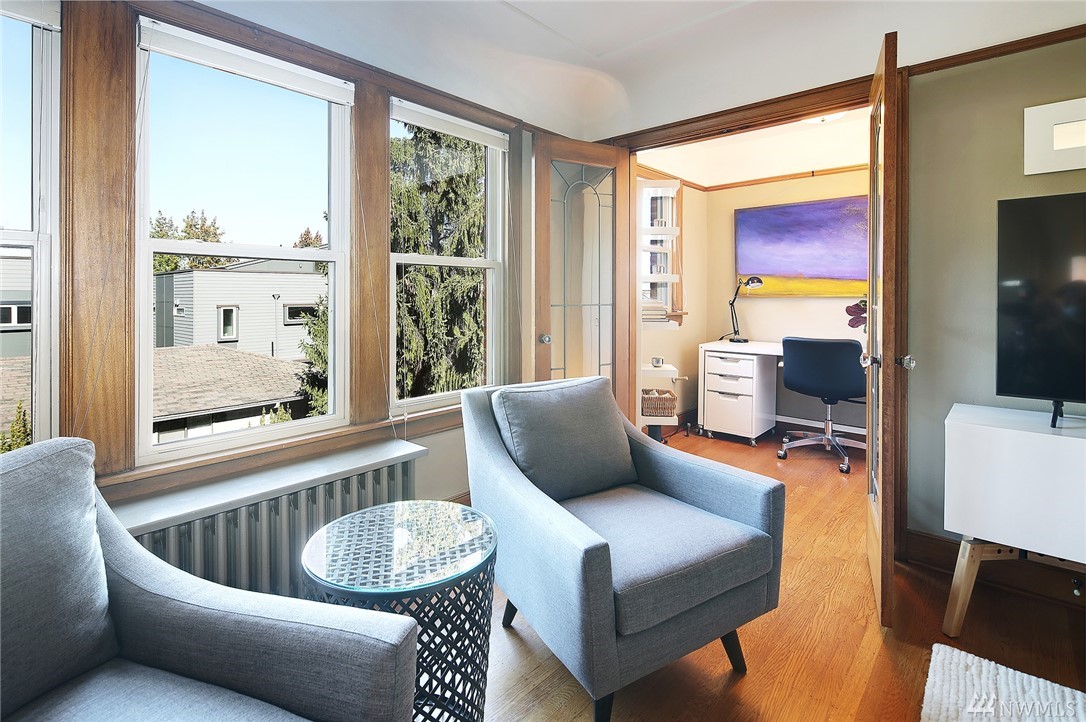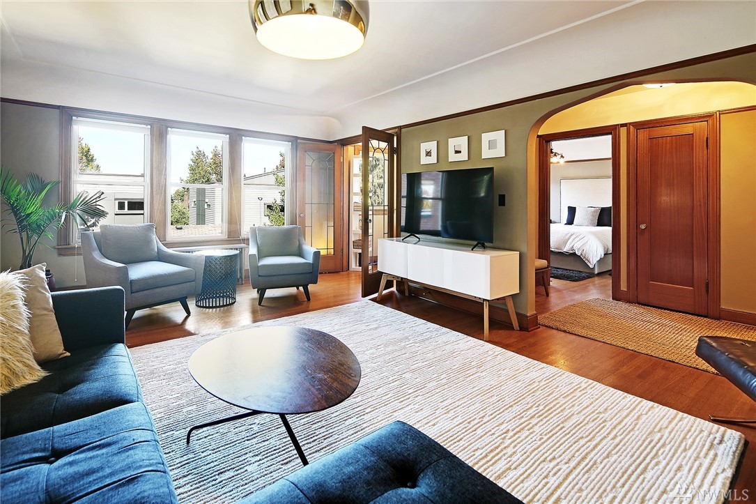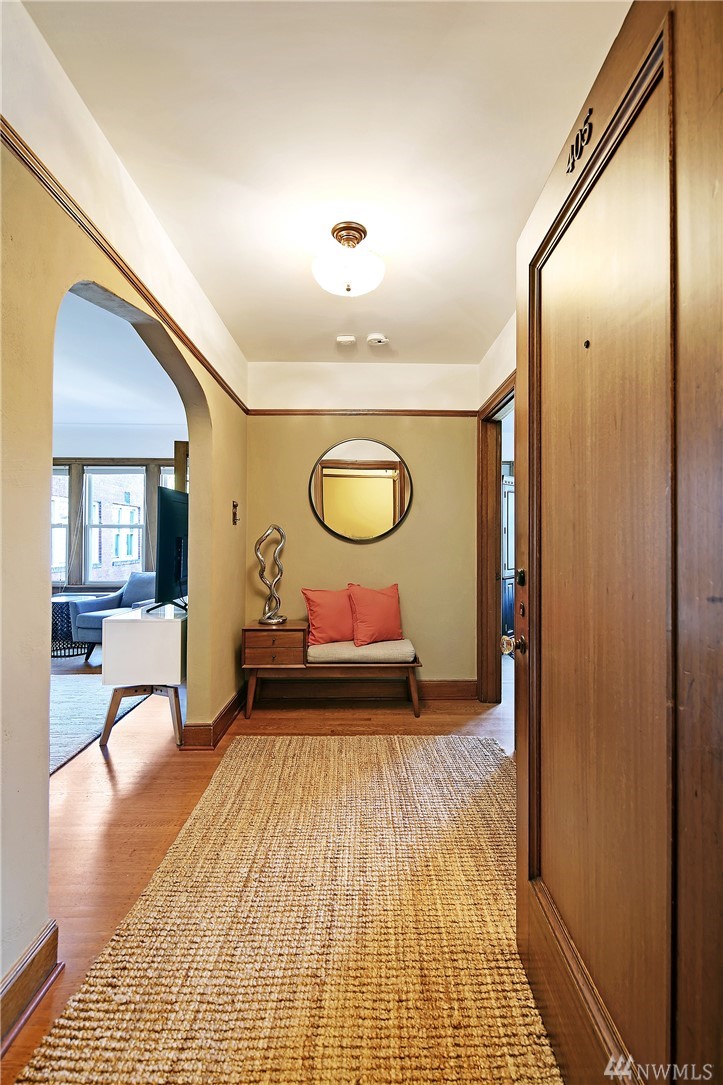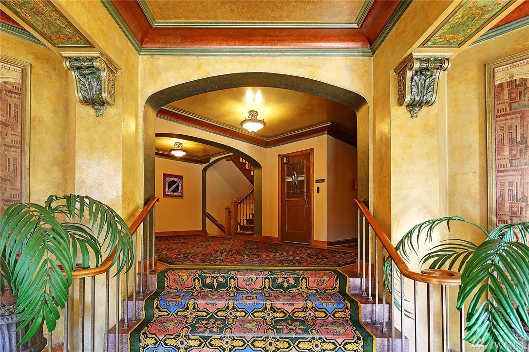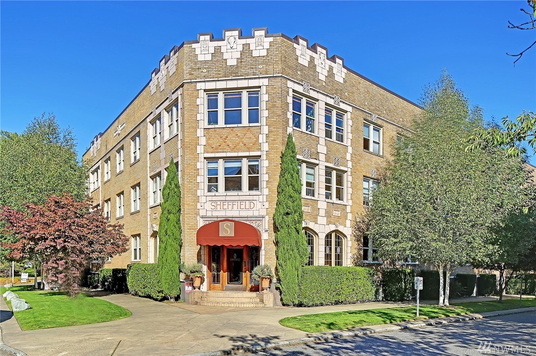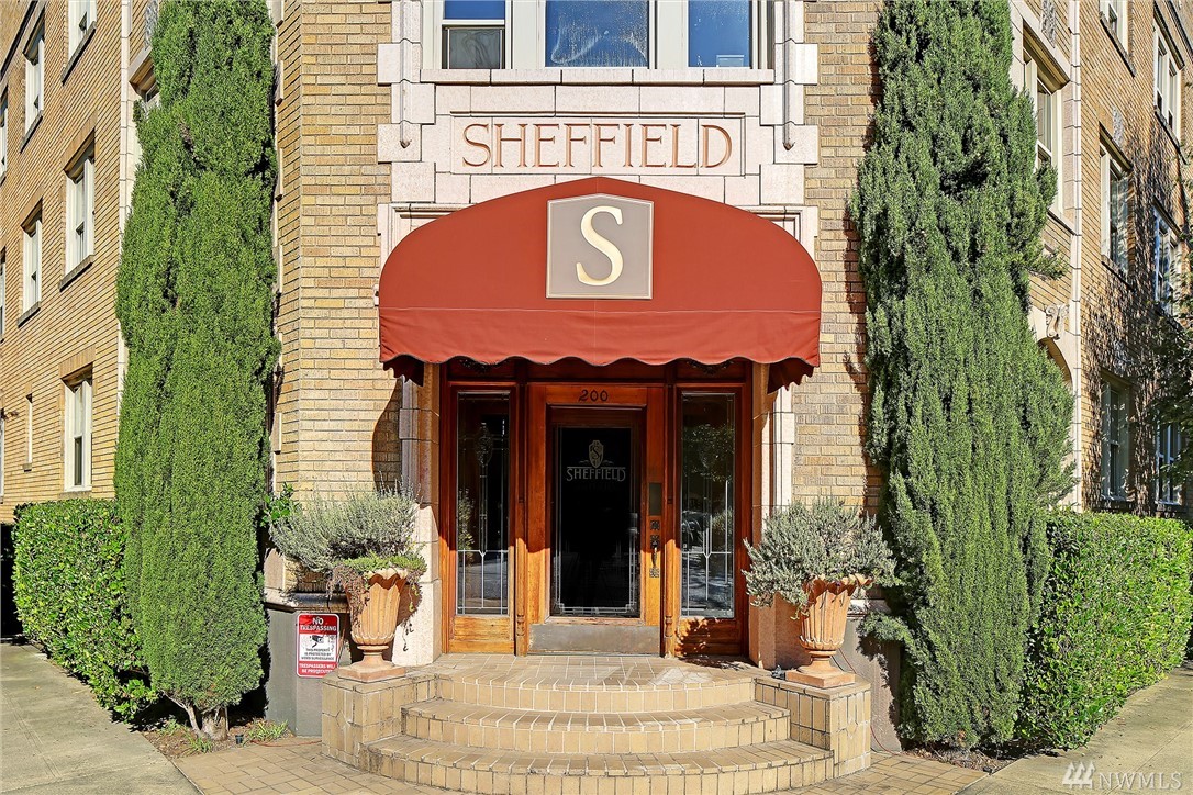 Warm & sophisticated top-floor unit at The Sheffield fuses period charm with modern convenience. Hardwood floors, coved ceilings & leaded glass French doors make the perfect backdrop for modern furniture & artwork, creating the ultimate urban aesthetic. Spacious layout offers formal entry, grand living room, updated kitchen & dining nook, separate den (w/bonus closet), generous bedroom, and classic black-&-white bath. Secure parking, storage & in-unit W/D included. Pet friendly, no rental cap.