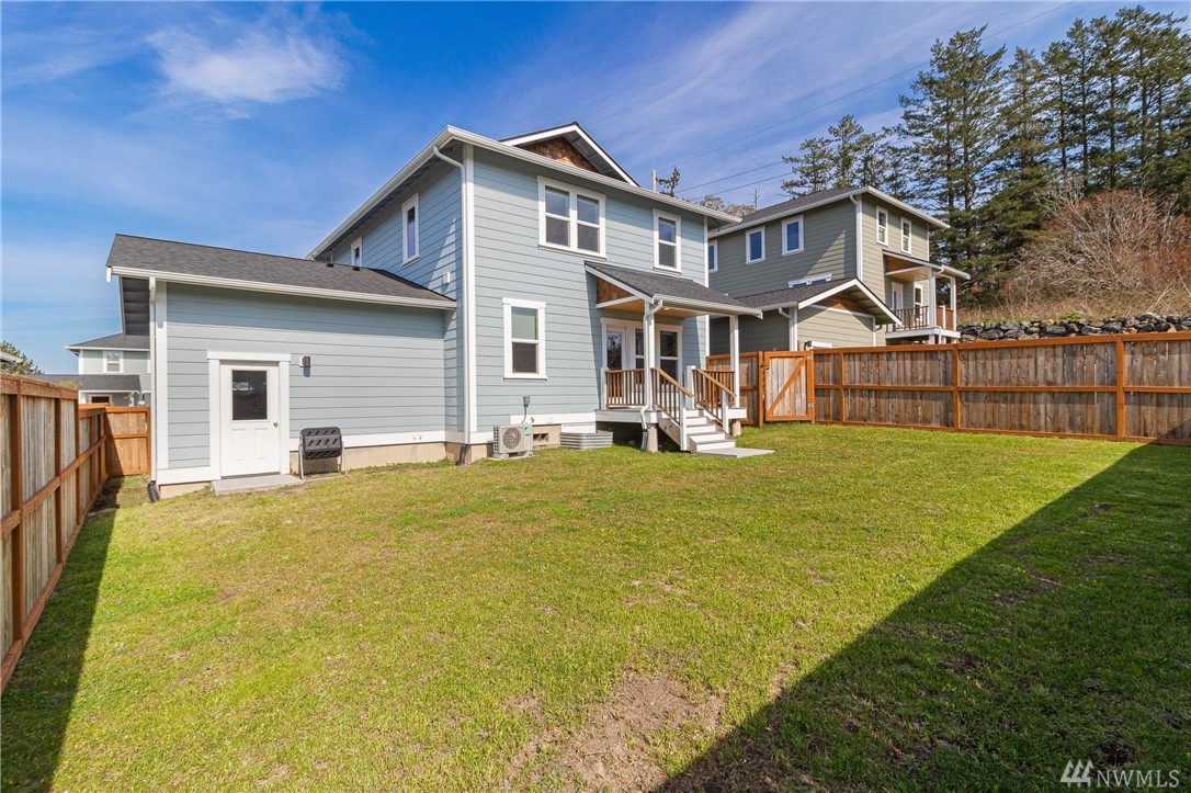 New neighborhood! Four bedroom home built in 2018. Bedrooms on upper level. 2.5 bathrooms, kitchen with eating bar, dining area walk in pantry and laundry room. Upstairs views of the town, Olympic Mountain views from the master bedroom. Attached single car garage,covered front and back porches. Fully fenced back yard. Located at the end of the street. High speed internet. Convenient to schools and town amenities.