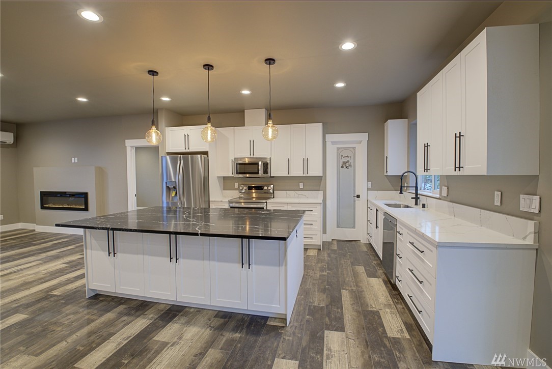 Move-in ready - this brand new single-level home is full of upgrades. Located in a quiet residential neighborhood across the street from Duck Lake & close to the public boat launch at Chinook Park. Home features: 1,450 SF of open concept living space w/ laminate plank flooring, electric fireplace, modern chef's kitchen w/ SS appliances, high-end cabinetry, slap countertops, oversized island & pantry, mini split HP in the master suite w/ full bath & walk-in closet, designated laundry space, covered front porch & oversized back patio for entertaining. Attached garage & shed for extra storage plus full RV hookups!