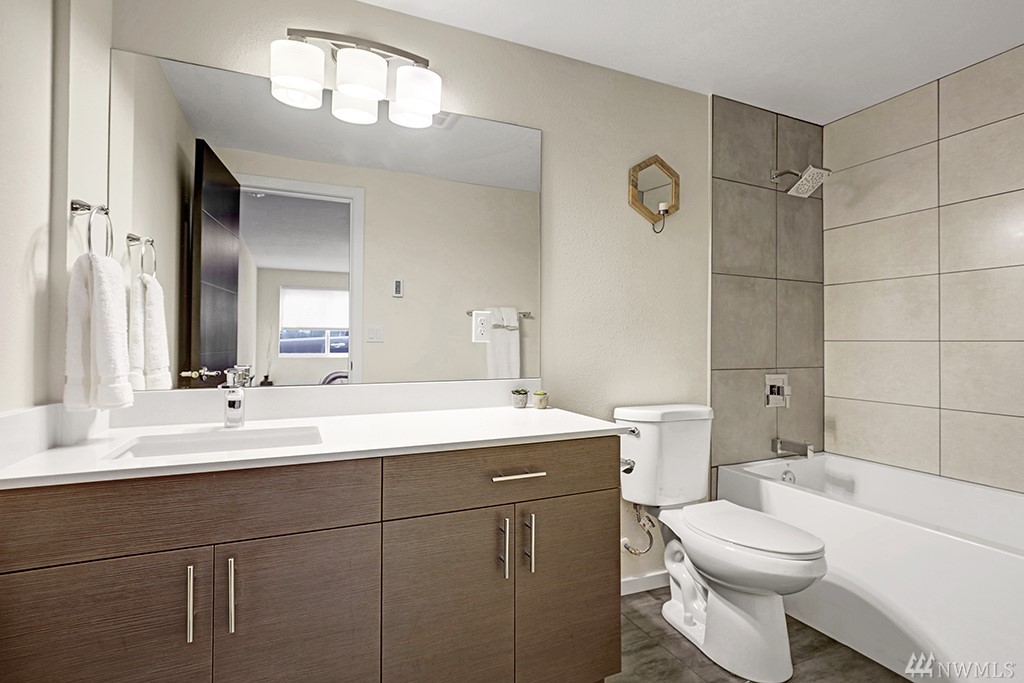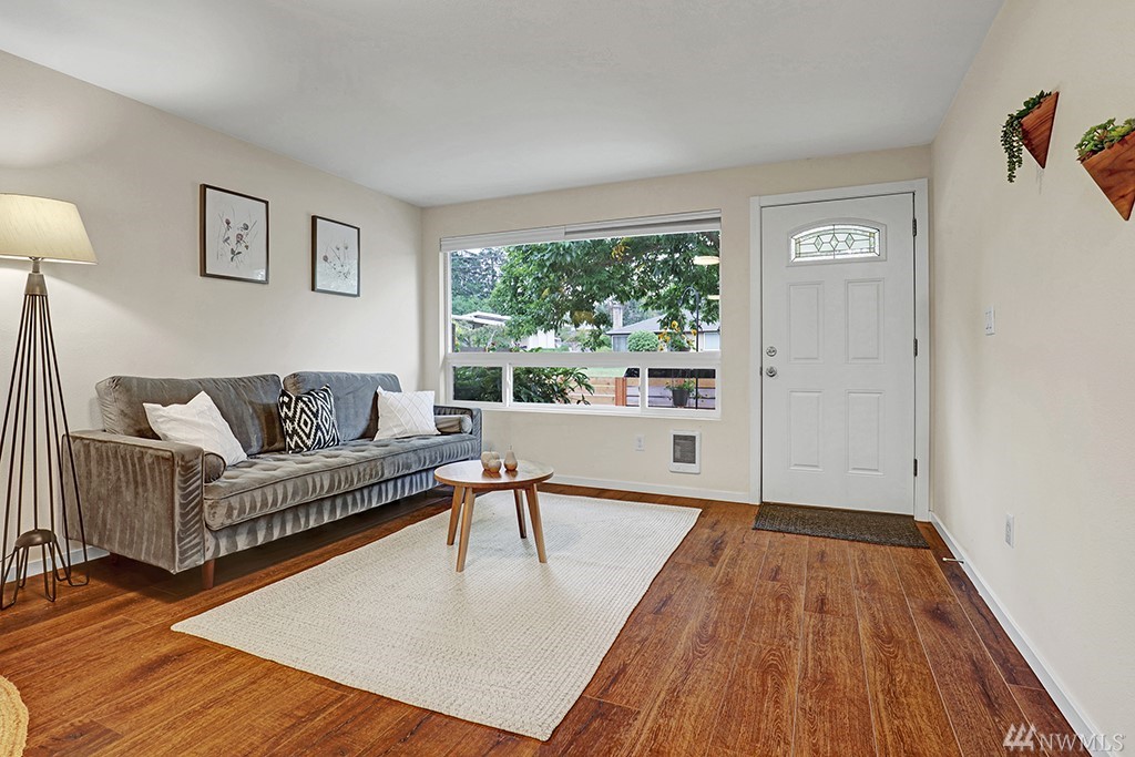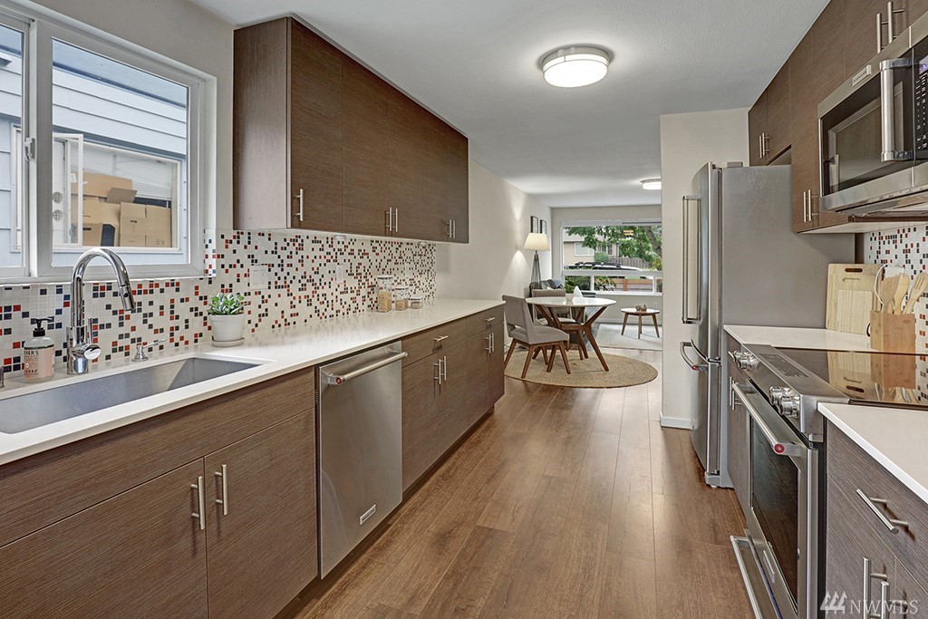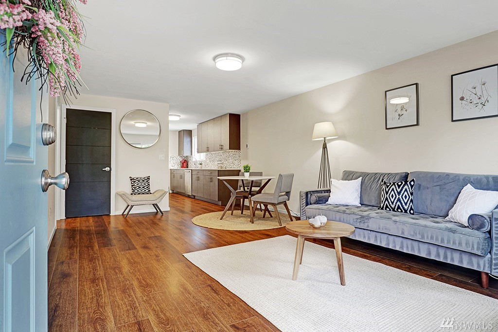 Mid-Century Townhome completely remodeled in 2018! NO DUES. Open concept floor plan- ideal for live/work space. Sunny living room, dining room & kitchen with engineered hardwoods. Lower level with Owner’s suite & spacious media room- perfect for entertaining. Newer windows, roof & siding, plus off-street parking. Lovely fenced front yard! Dog & city parks a 10 min walk; breweries, bars & restaurants a 5 min drive. Located in convenient Highland Park- just steps to transit & easy access to I-5!