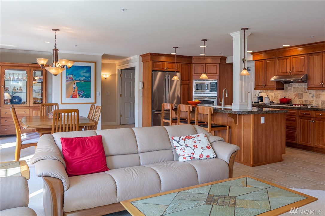Elegant, accessible 2-bedroom condo in the heart of downtown. Private elevator entry leads to an expansive open floor plan with radiant heat and private den/media room rich w/ built-in cabinetry. Gourmet kitchen has cherry cabinets, gas range, SS appliances, and granite. Main suite with 5-piece bath, walk-in closet, and French doors that open to an east and south-facing deck. Two parking stalls and two storerooms. Quiet location away from the street, yet restaurants and shops are moments away!