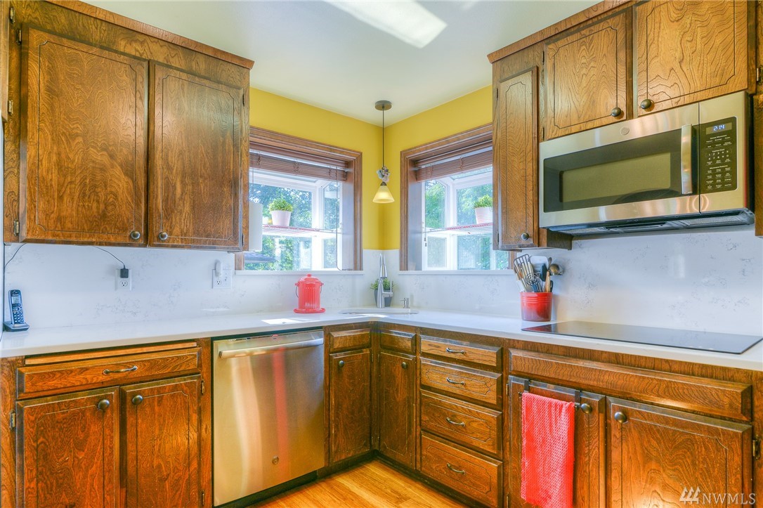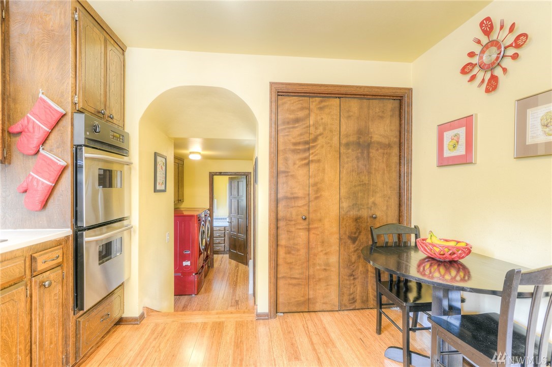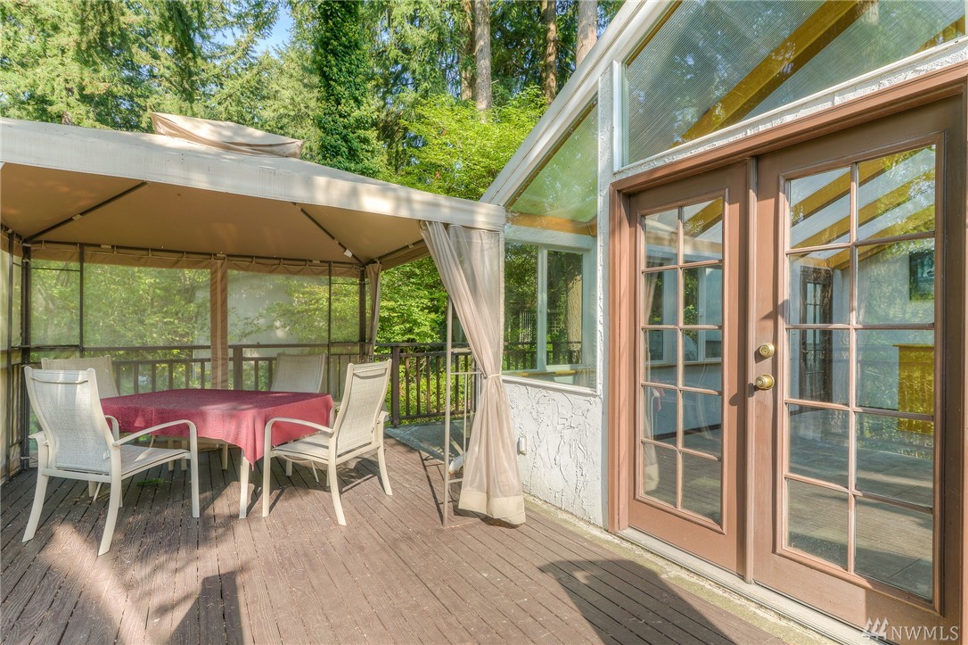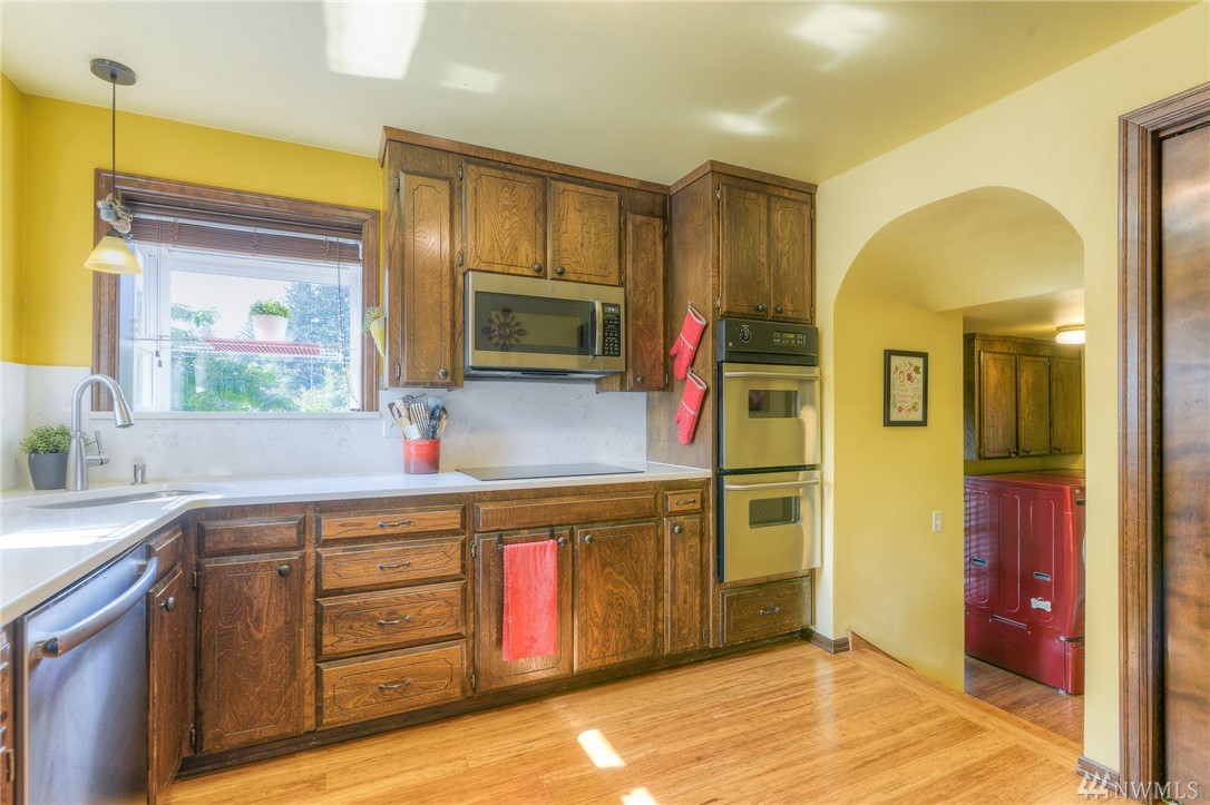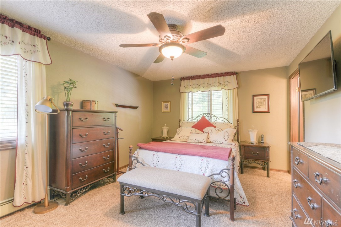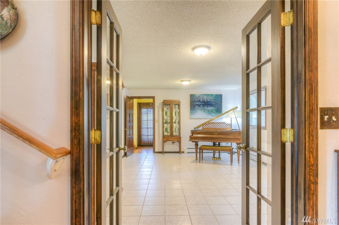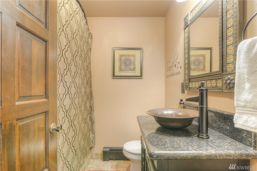 Tons of character in this Spanish Contemporary home. Wood accents include exposed beams & ceiling, wrapped windows, flooring, panel doors & an elegant staircase w/wrought iron. Interior features: solarium (+335 heated sq feet), double oven, stone gas fireplace, pendant lighting, french doors, laundry chute, ceiling fans, wet bar in daylight basement. Private lot w/back deck, sprinkler system, RV parking, 2 tiered backyard w/greenspace behind & access to the Chehalis Western Trail.