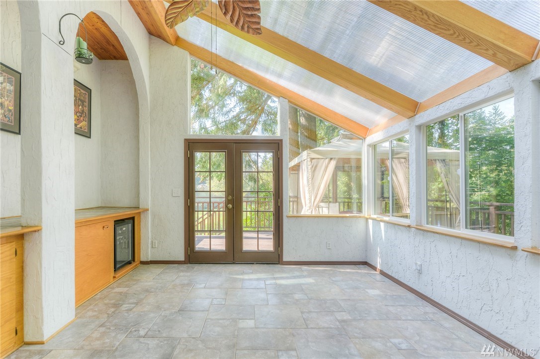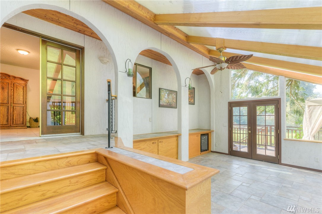 Ceramic Tile Hardwood Wall to Wall Carpet Bath Off Primary Ceiling Fan(s) Double Pane/Storm Window Dining Room French Doors Security System Solarium/Atrium Vaulted Ceiling(s) Wet Bar Water Heater